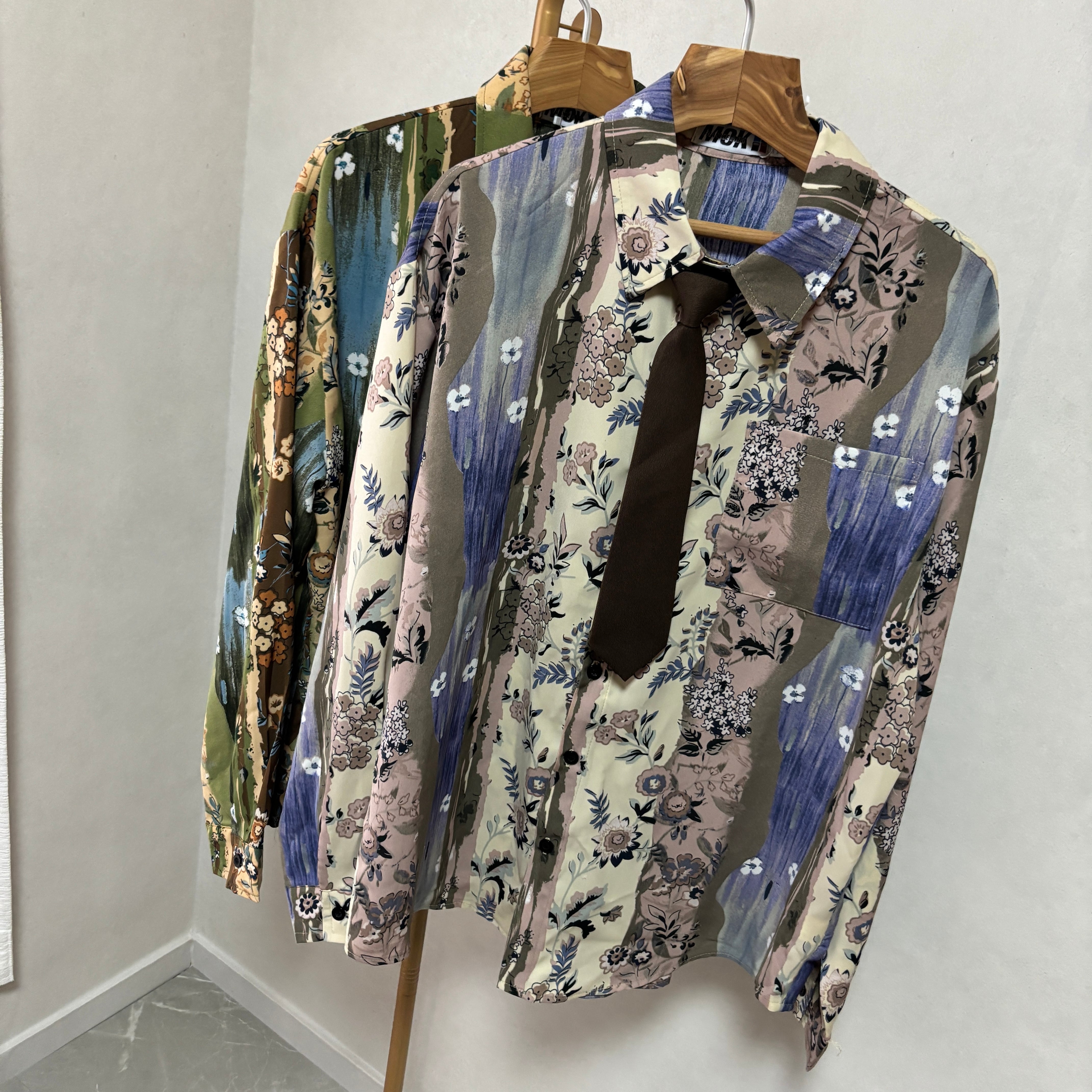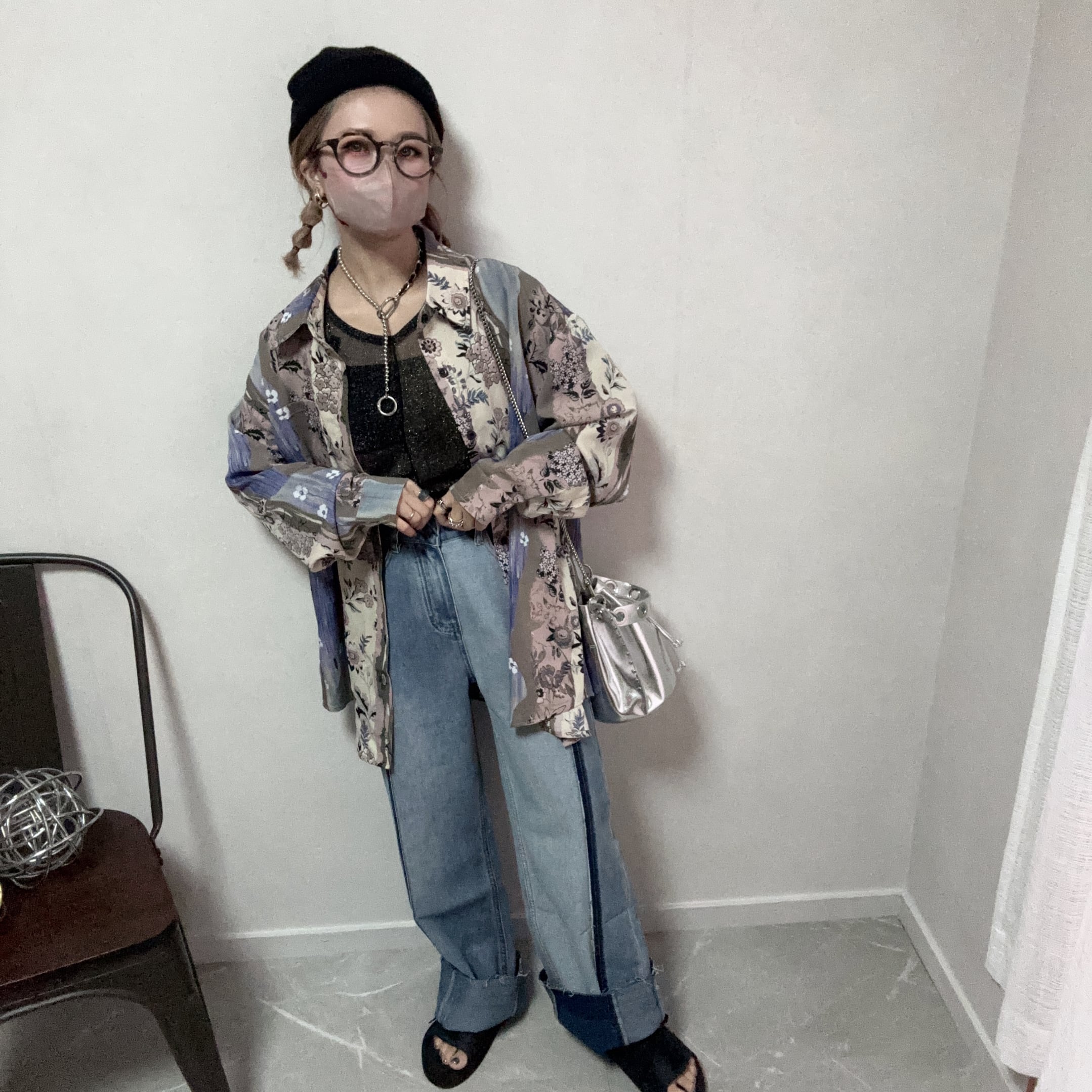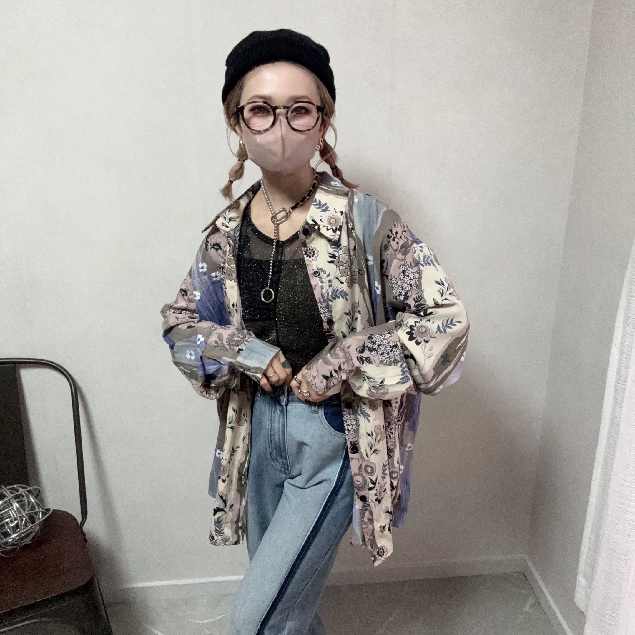 ベースのニュアンス柄に柔らかな花柄を基調としたこのシャツは存在感があり、シンプルなコーディネートに華やかさを添えてくれること間違いなし◎