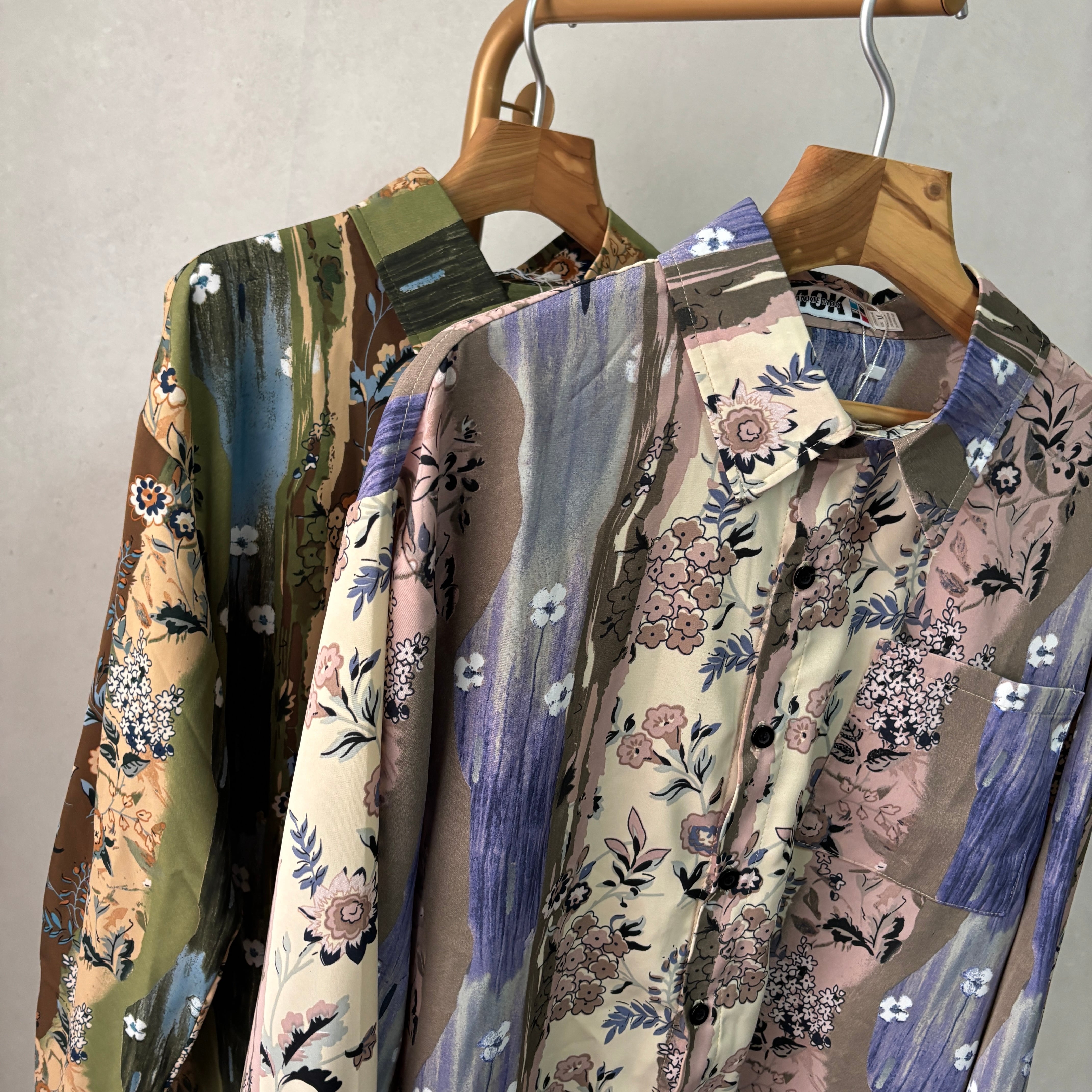 大人の女性にぴったりな、花柄×ニュアンス柄のロングシャツが新登場!