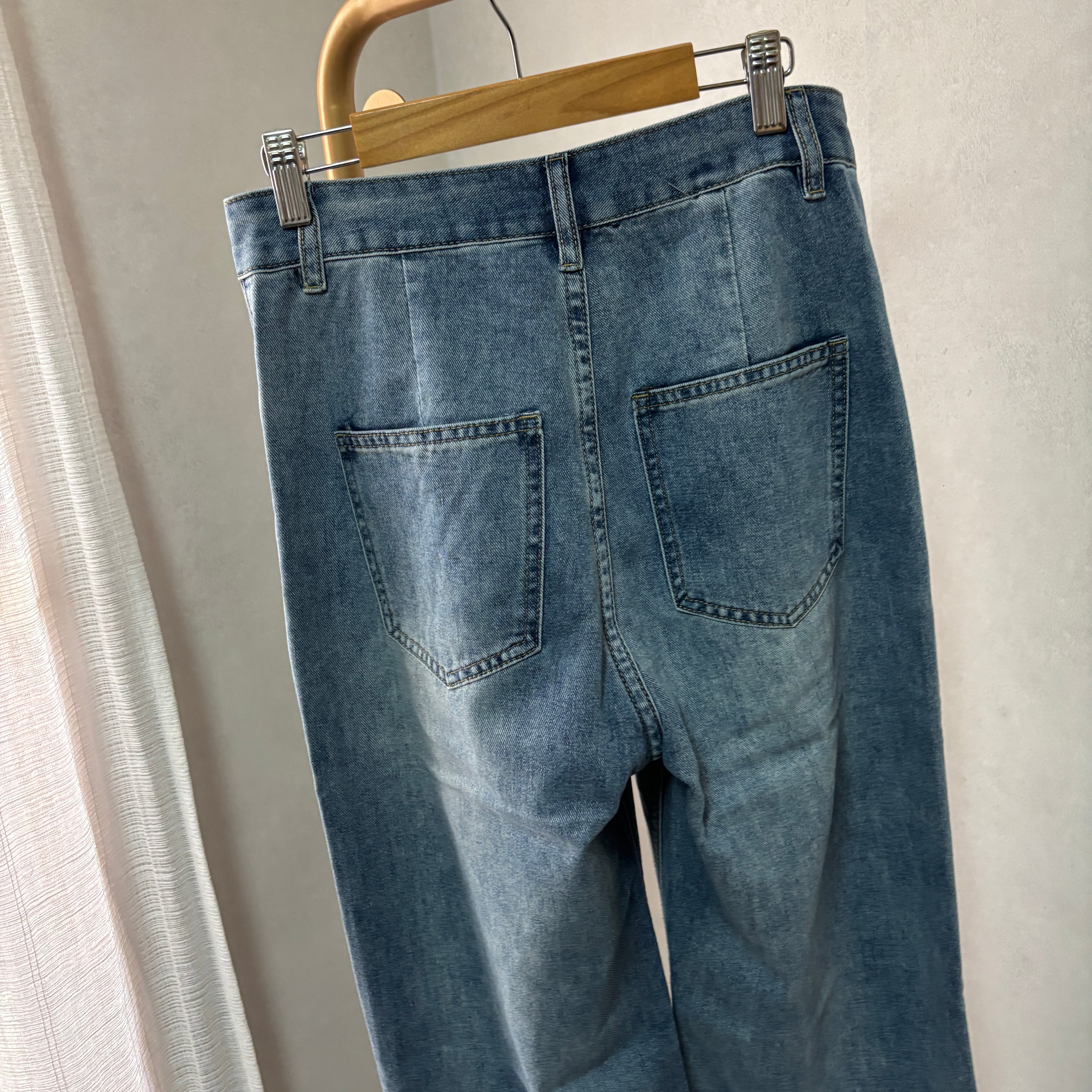 スタイリッシュな縦切り替えデザインが個性的な、ストレートデニムパンツ♡