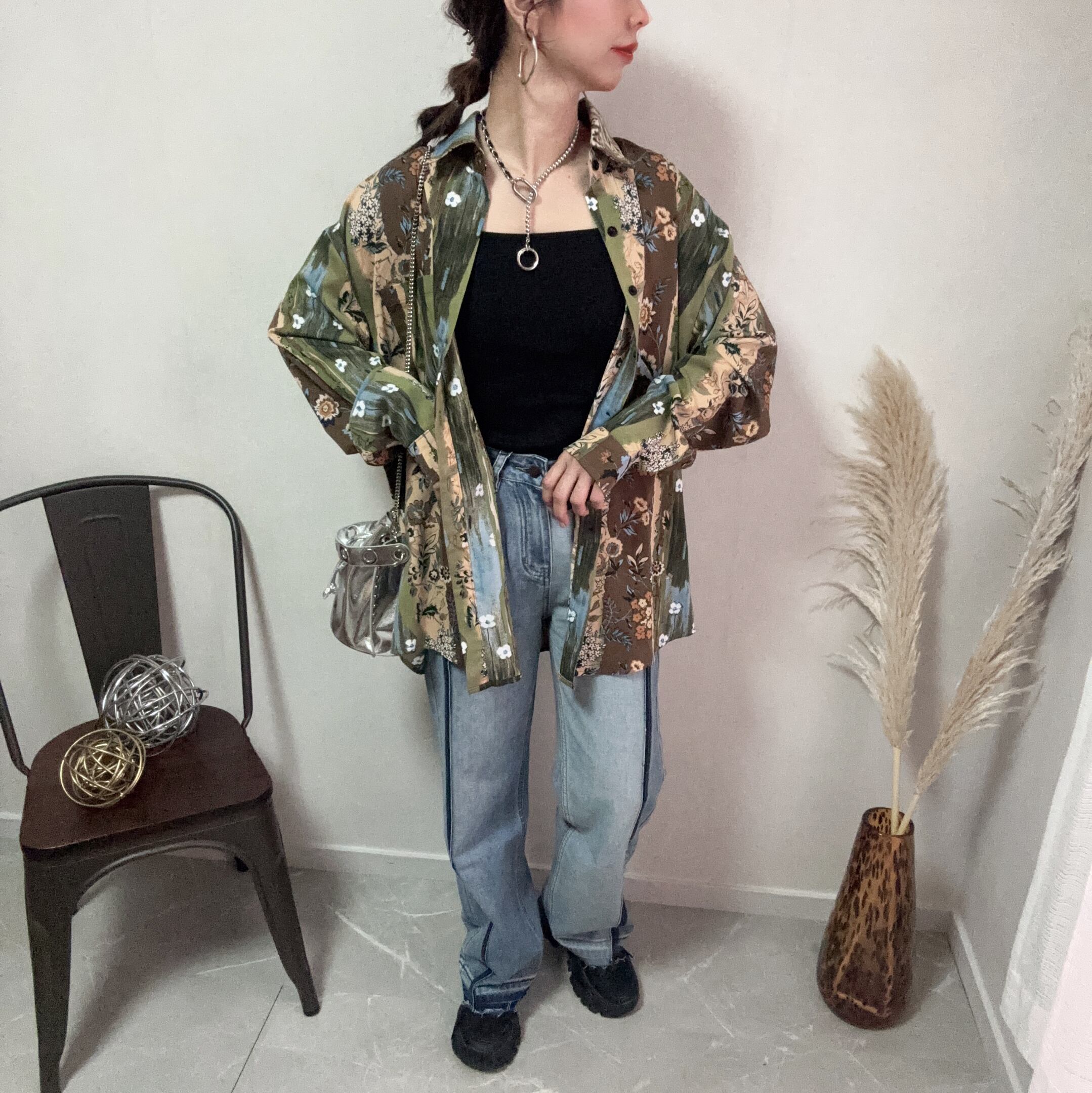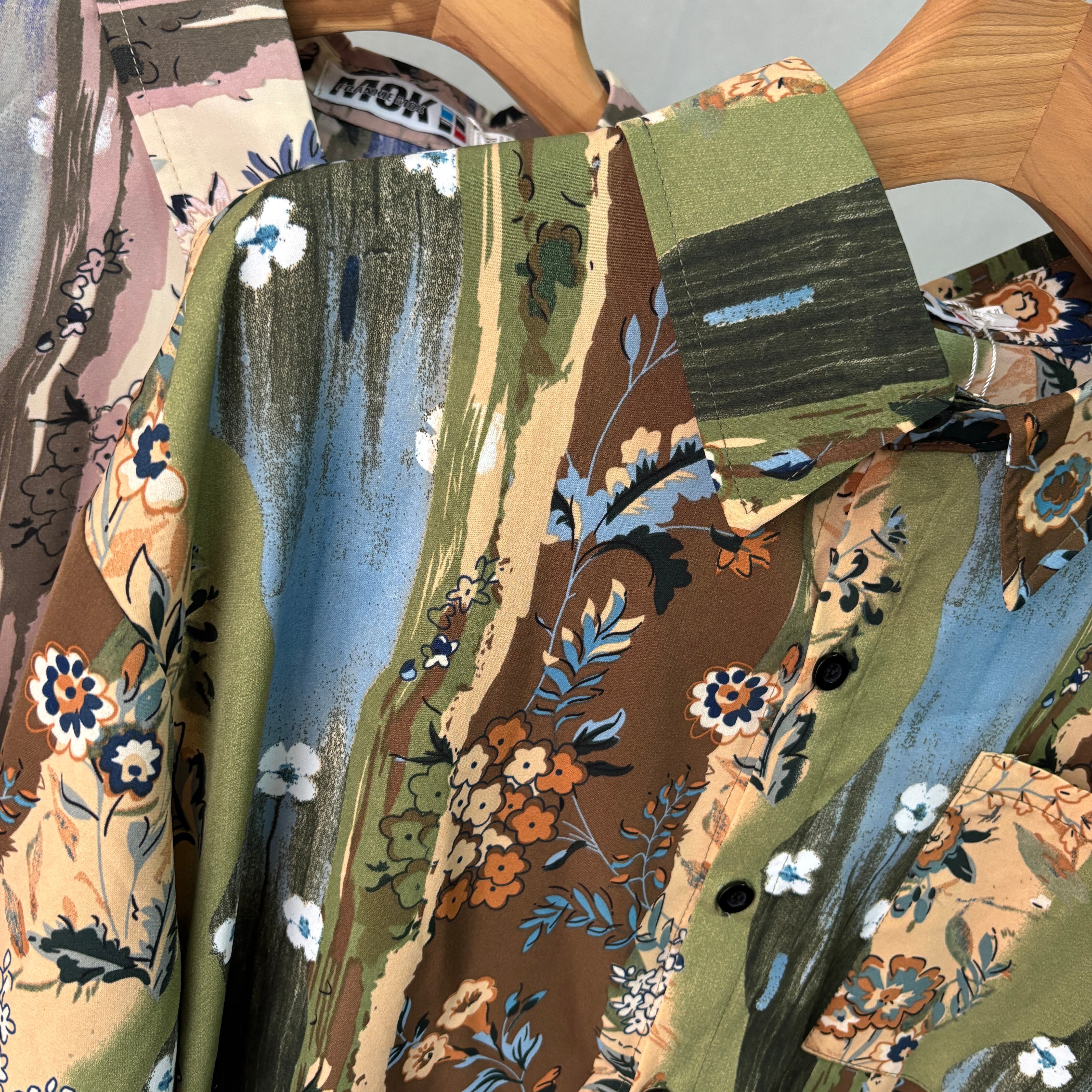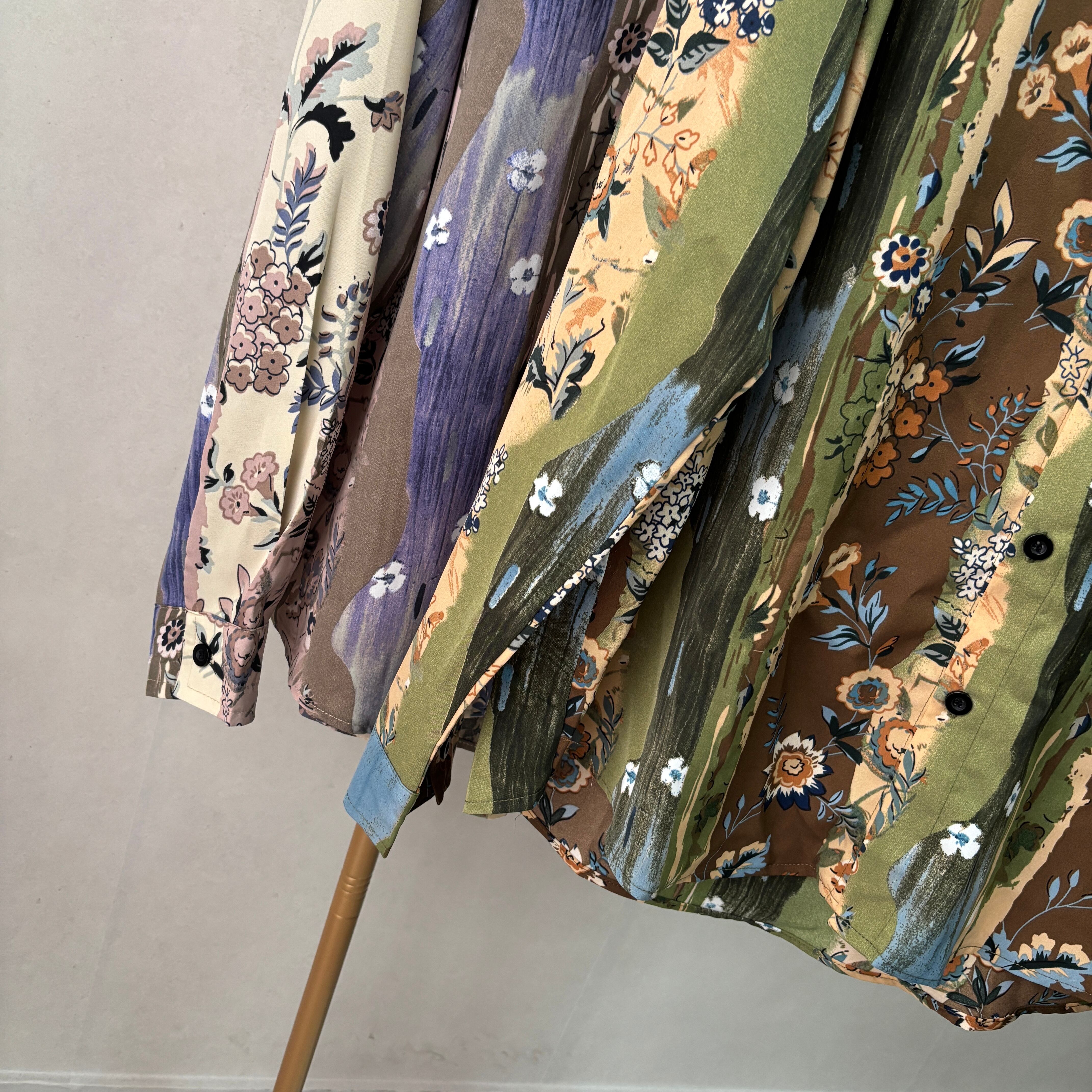 ベースのニュアンス柄に柔らかな花柄を基調としたこのシャツは存在感があり、シンプルなコーディネートに華やかさを添えてくれること間違いなし◎