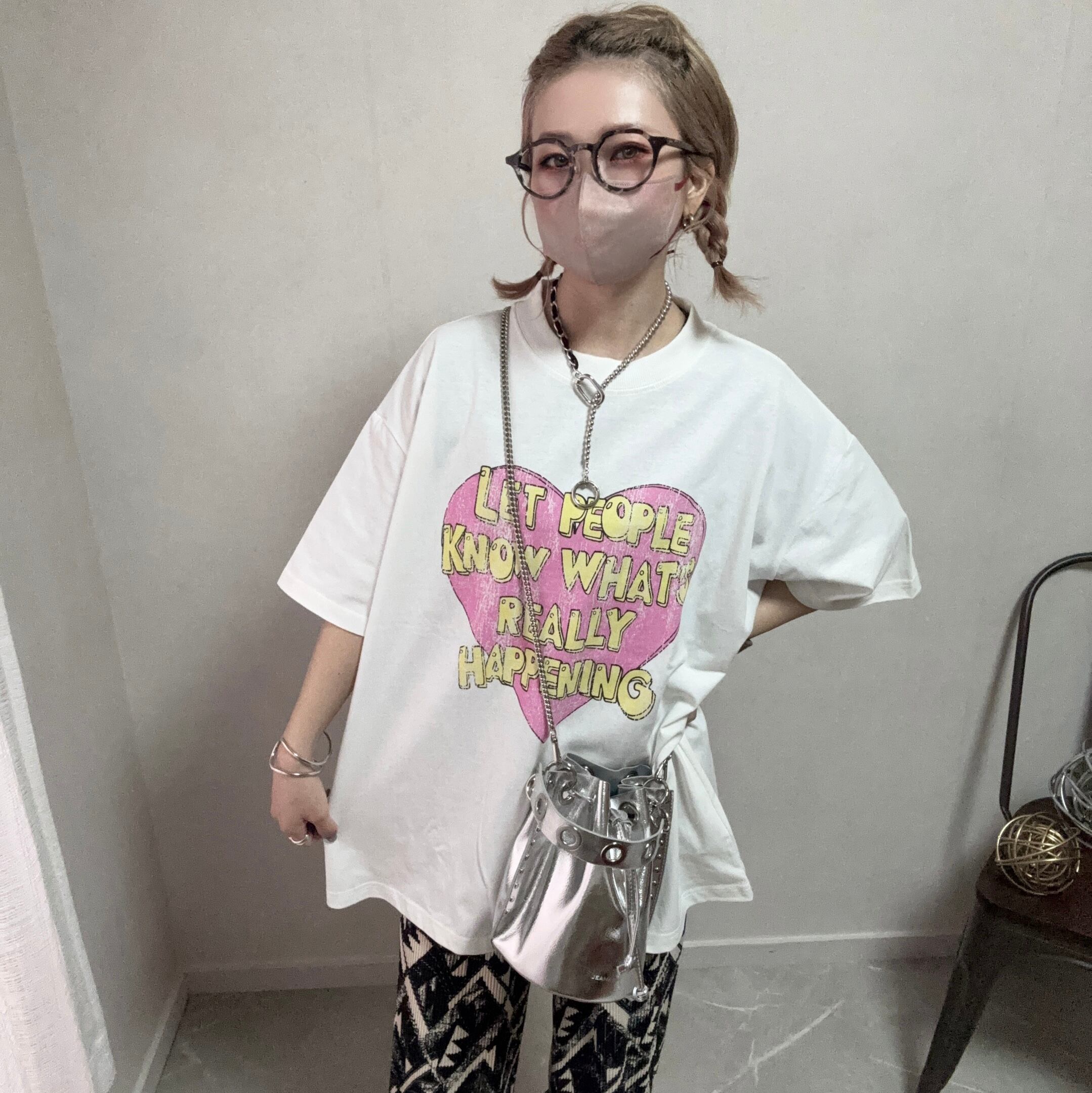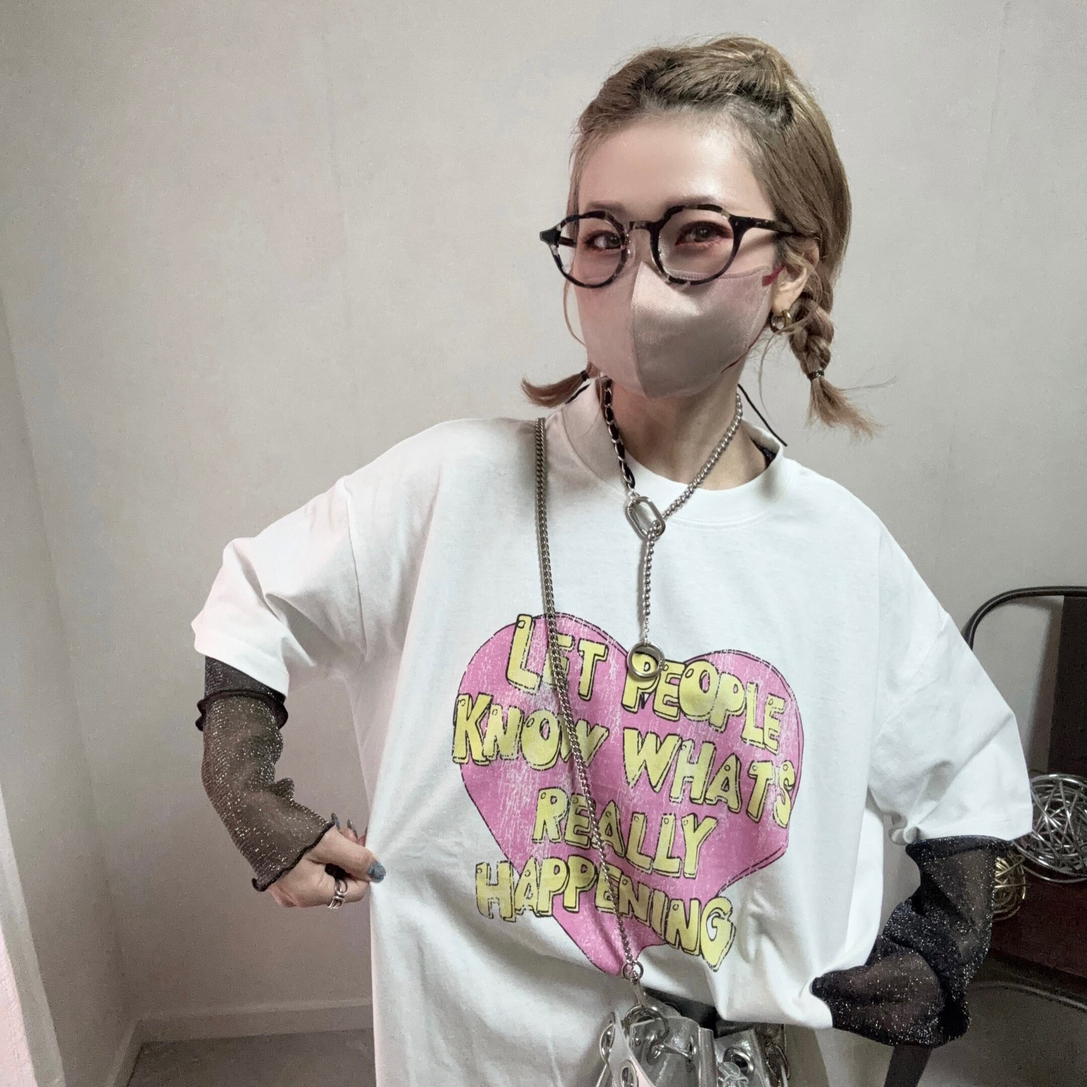 heart lettering print used tee【White】