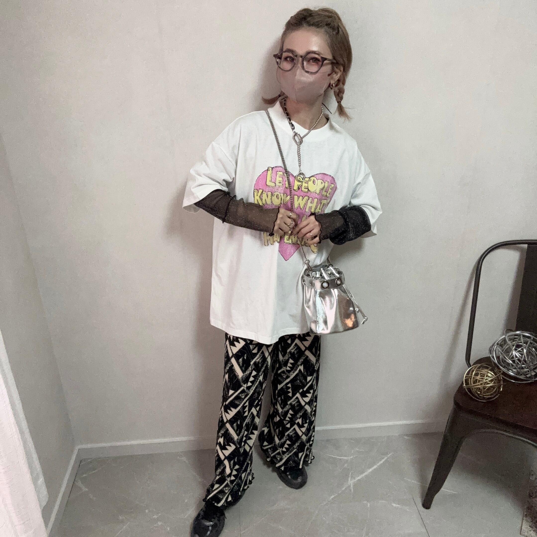 大きな掠れハートプリントとオシャレな配色使いが目を引くTシャツ♡