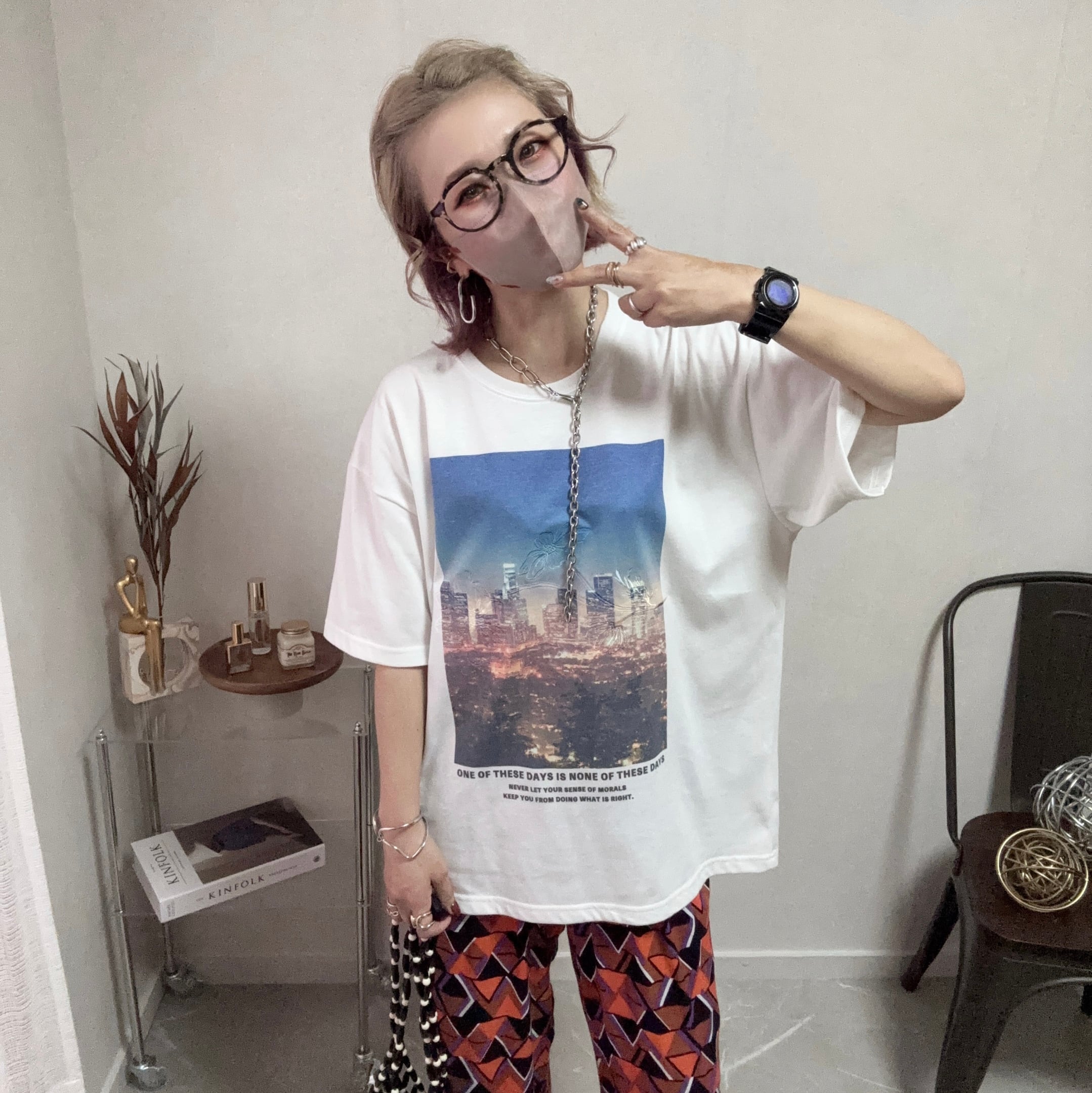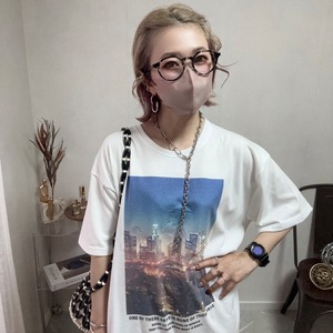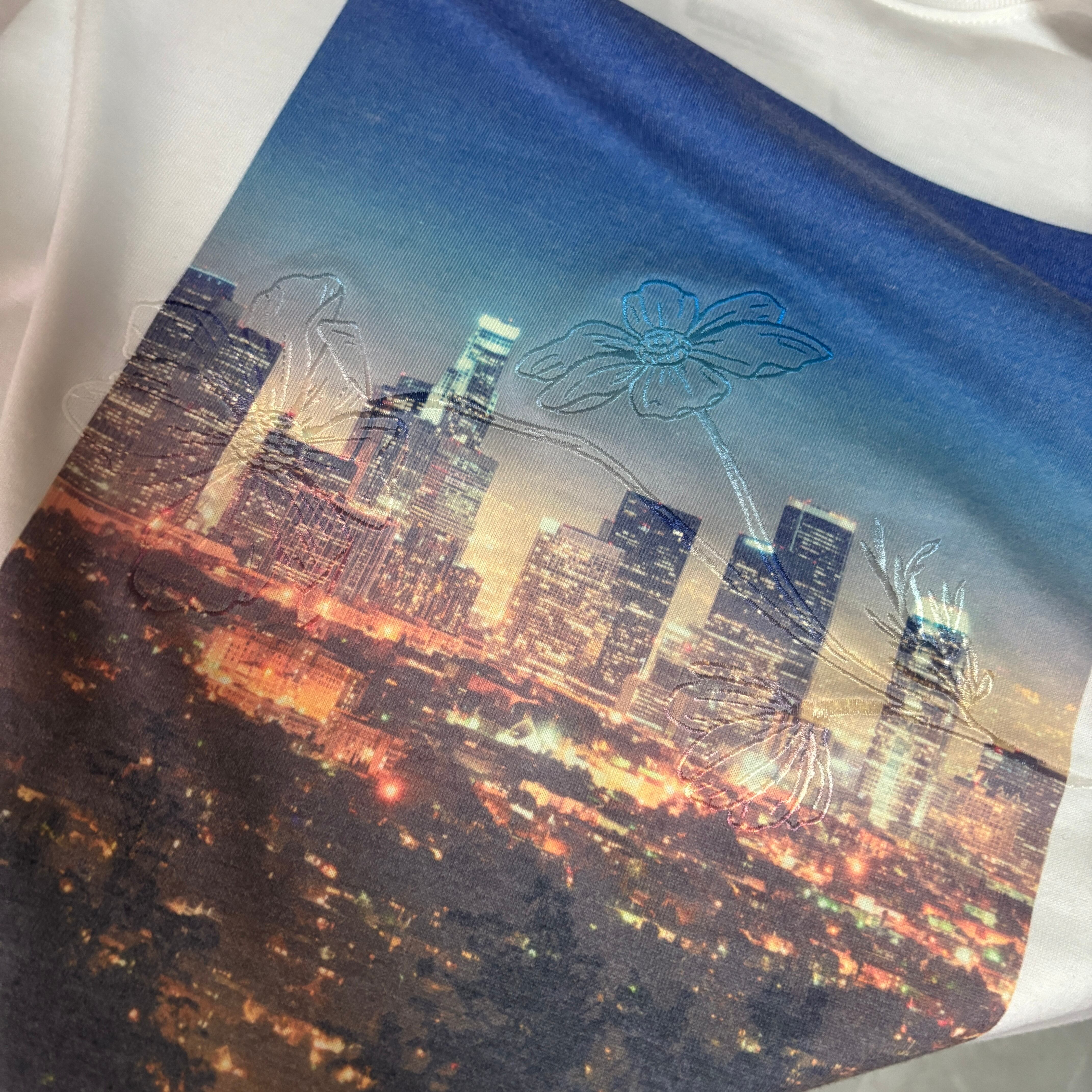 flower embroidery×photo print tee