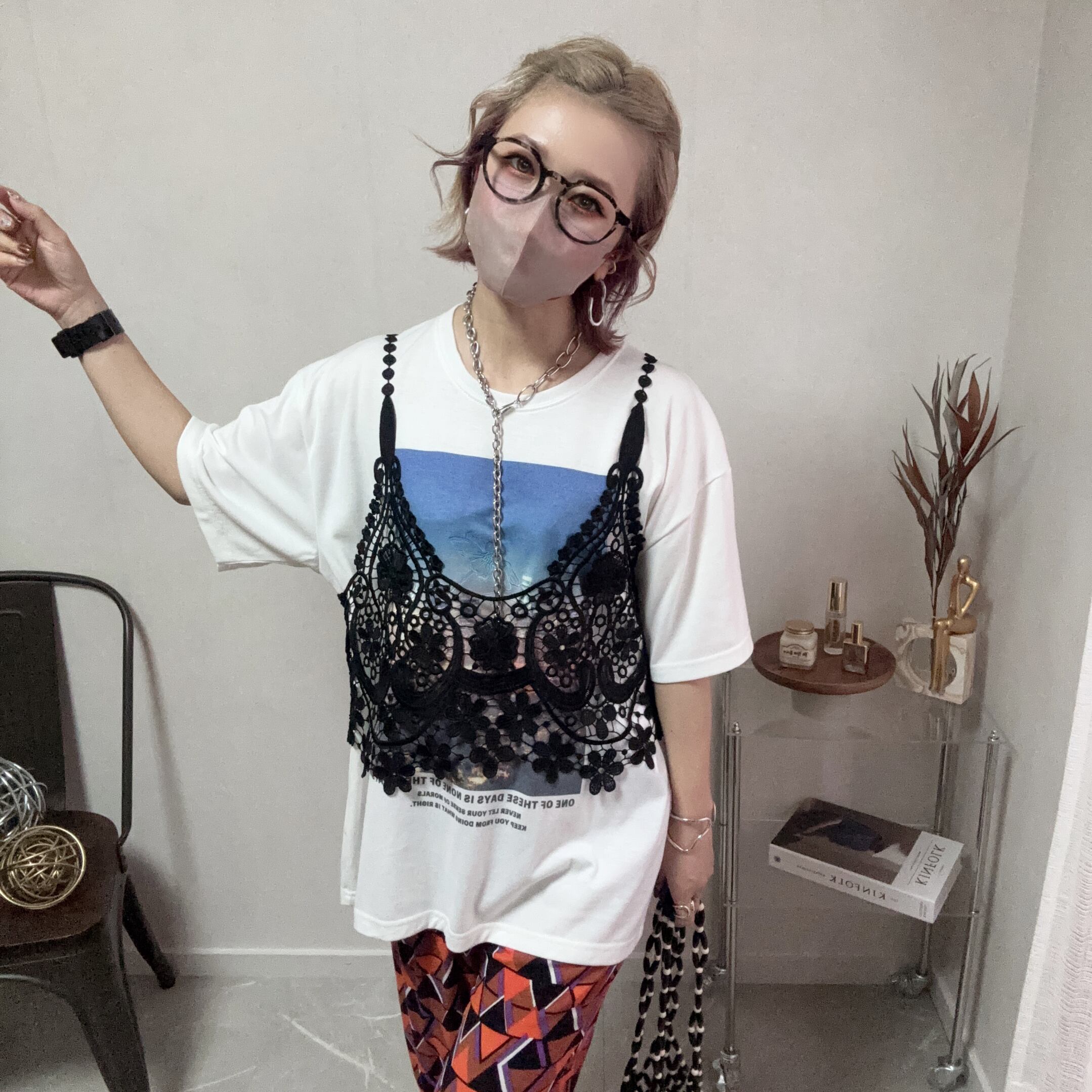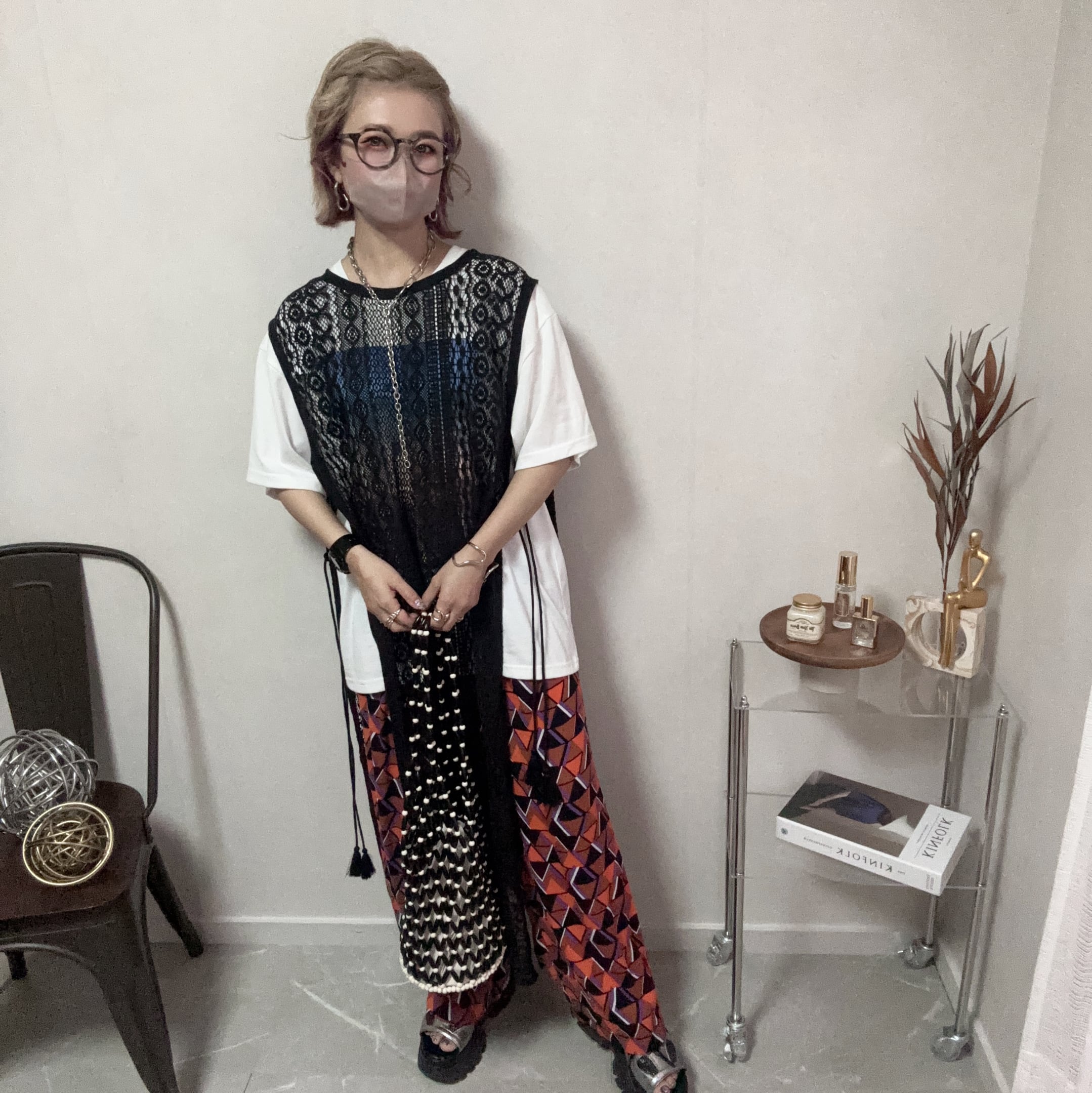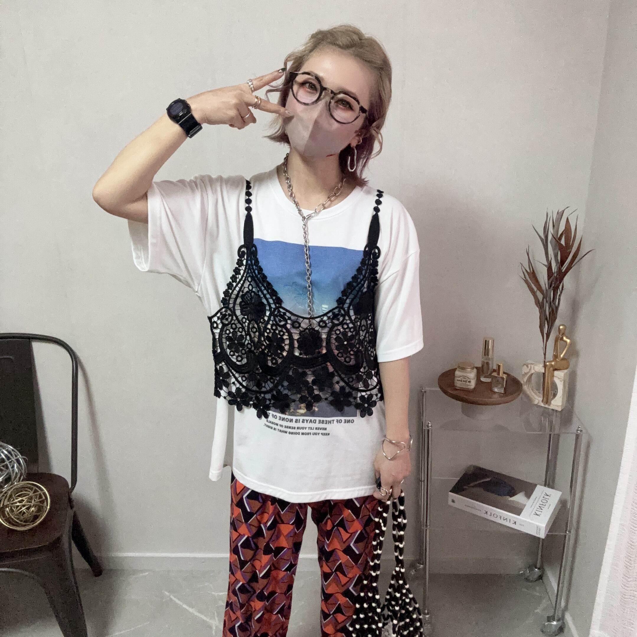プリントは、懐かしさを感じさせるエモい雰囲気と、フラワー刺繍で現代的な感覚との魅力を融合させています♡