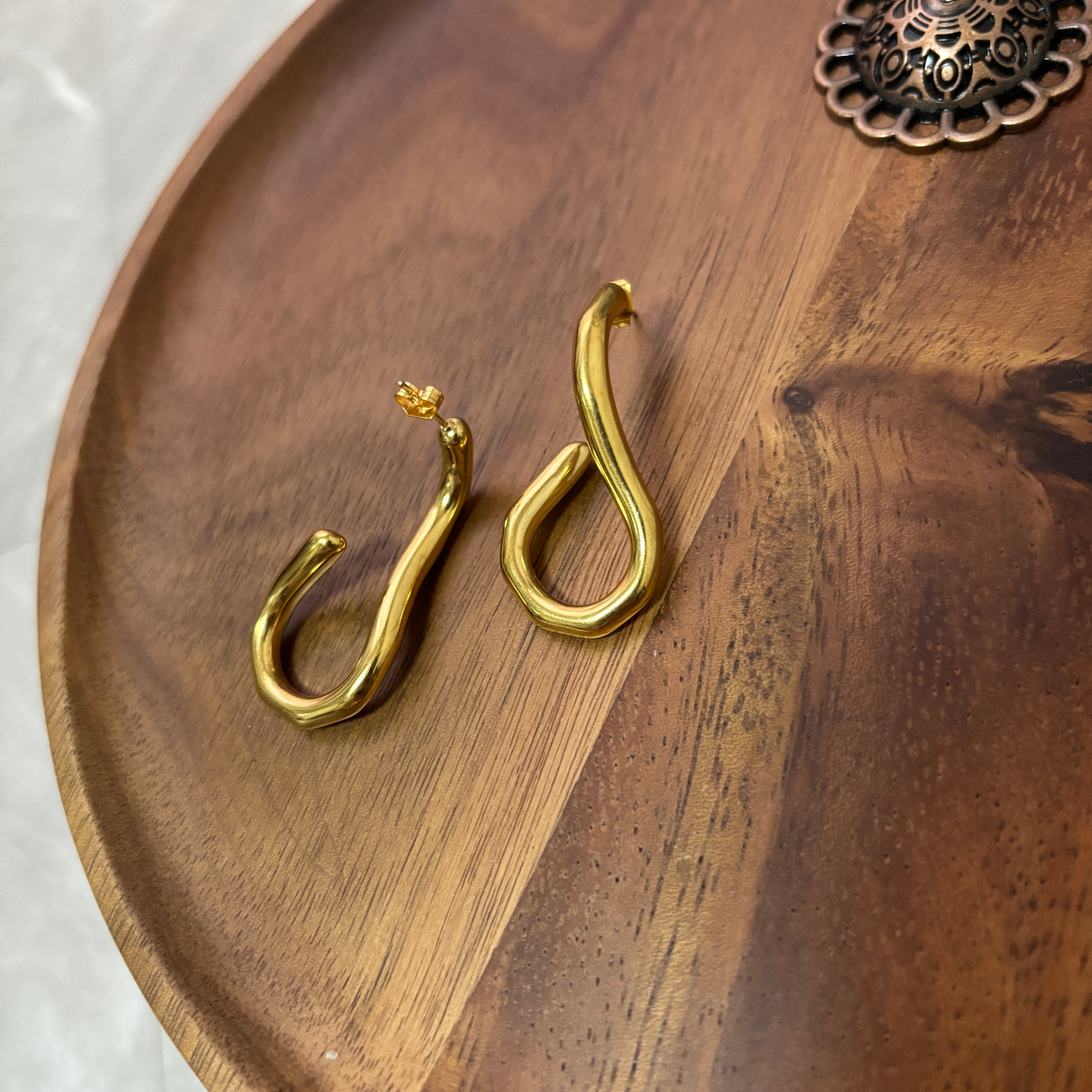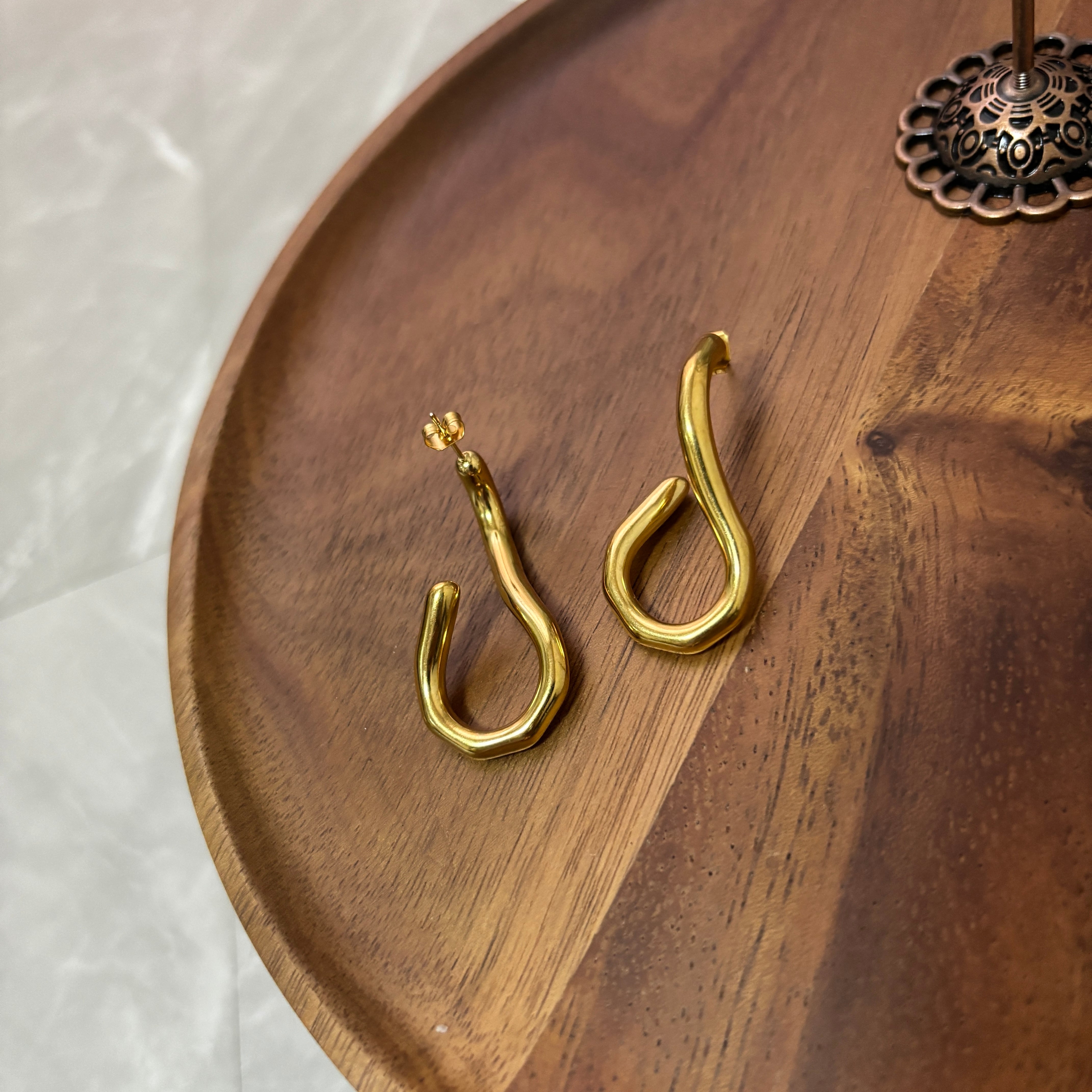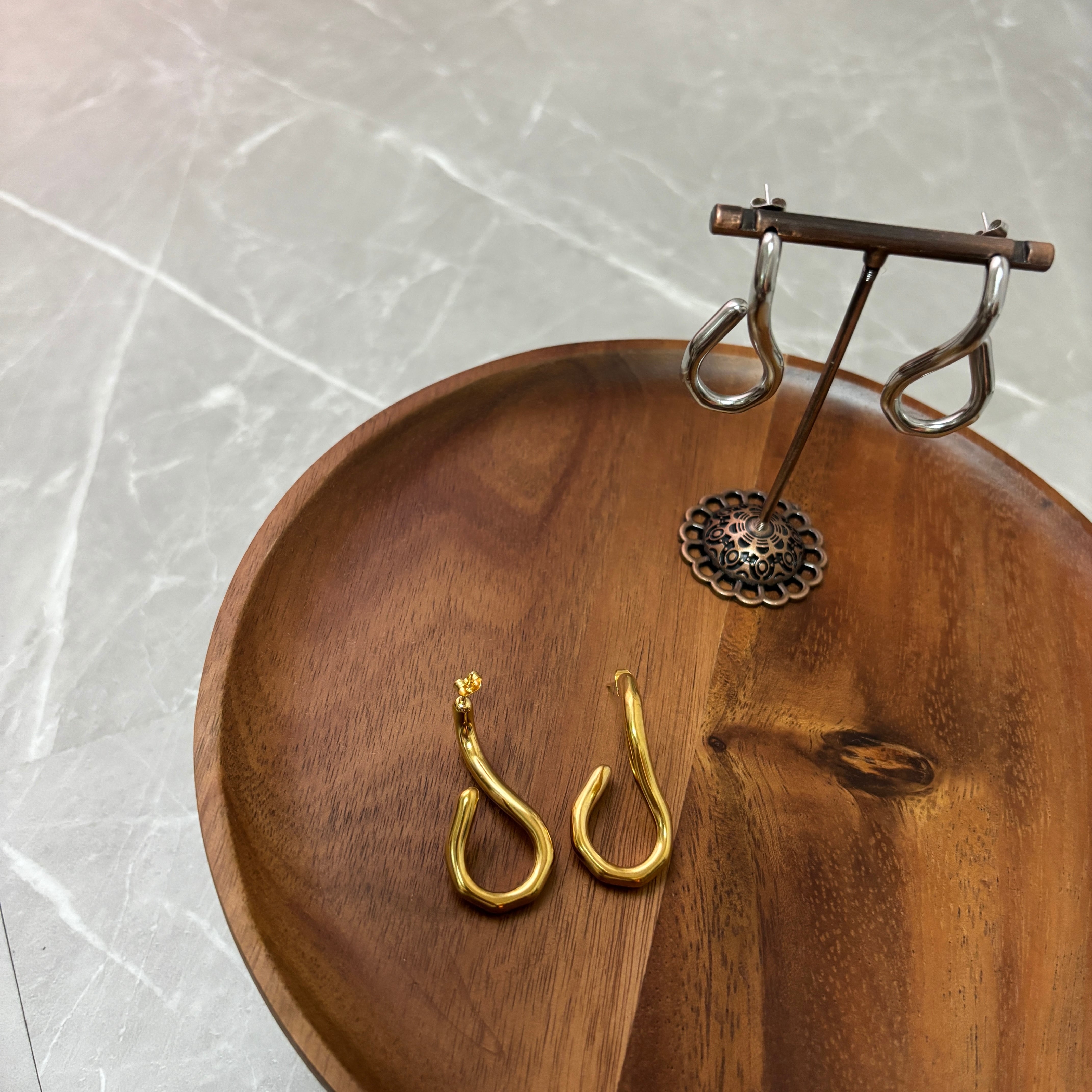 大ぶりのニュアンスカーブが映えるサージカルステンレスピアス。