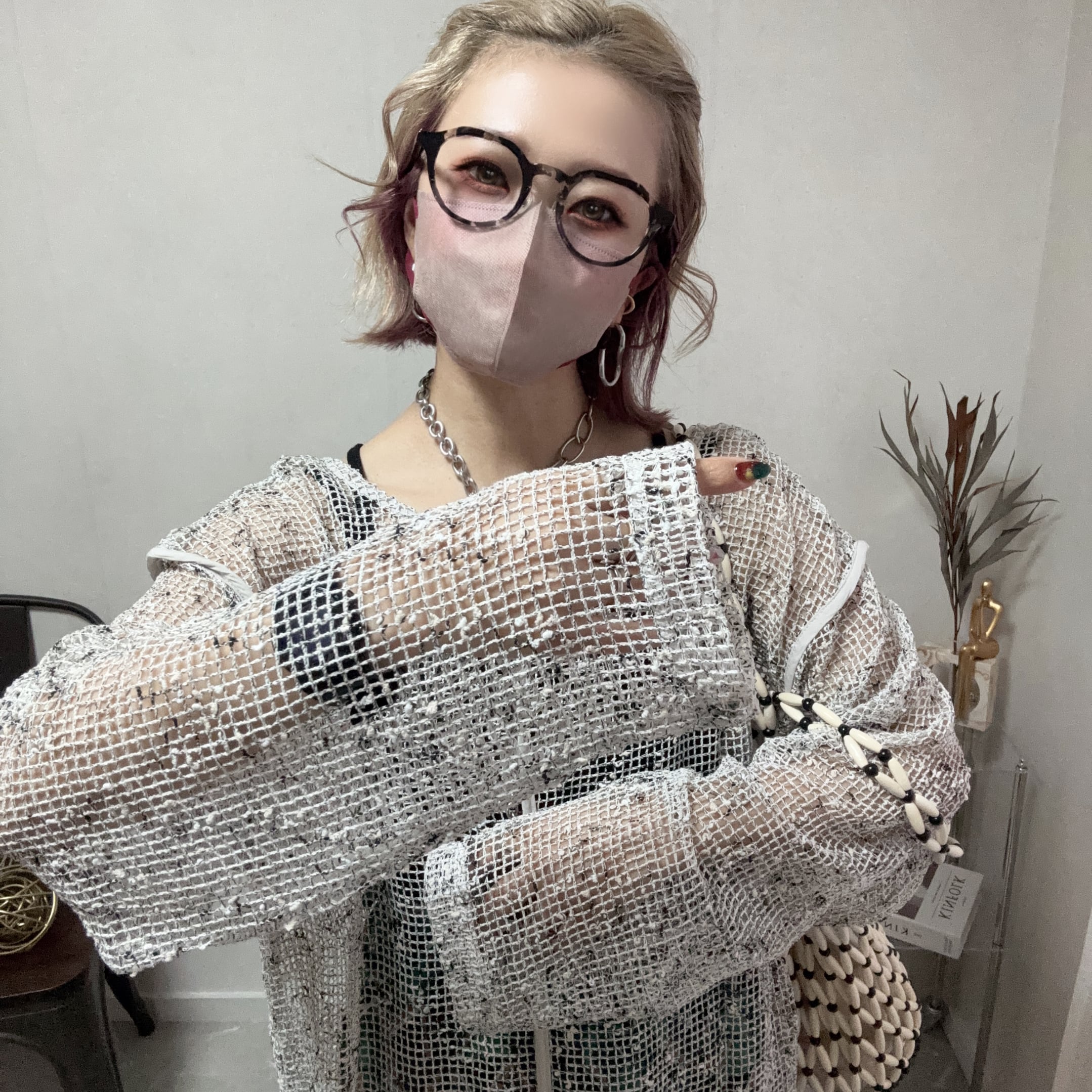 シアー感のある透け編みが軽やかで、春夏らしい抜け感を演出します◎