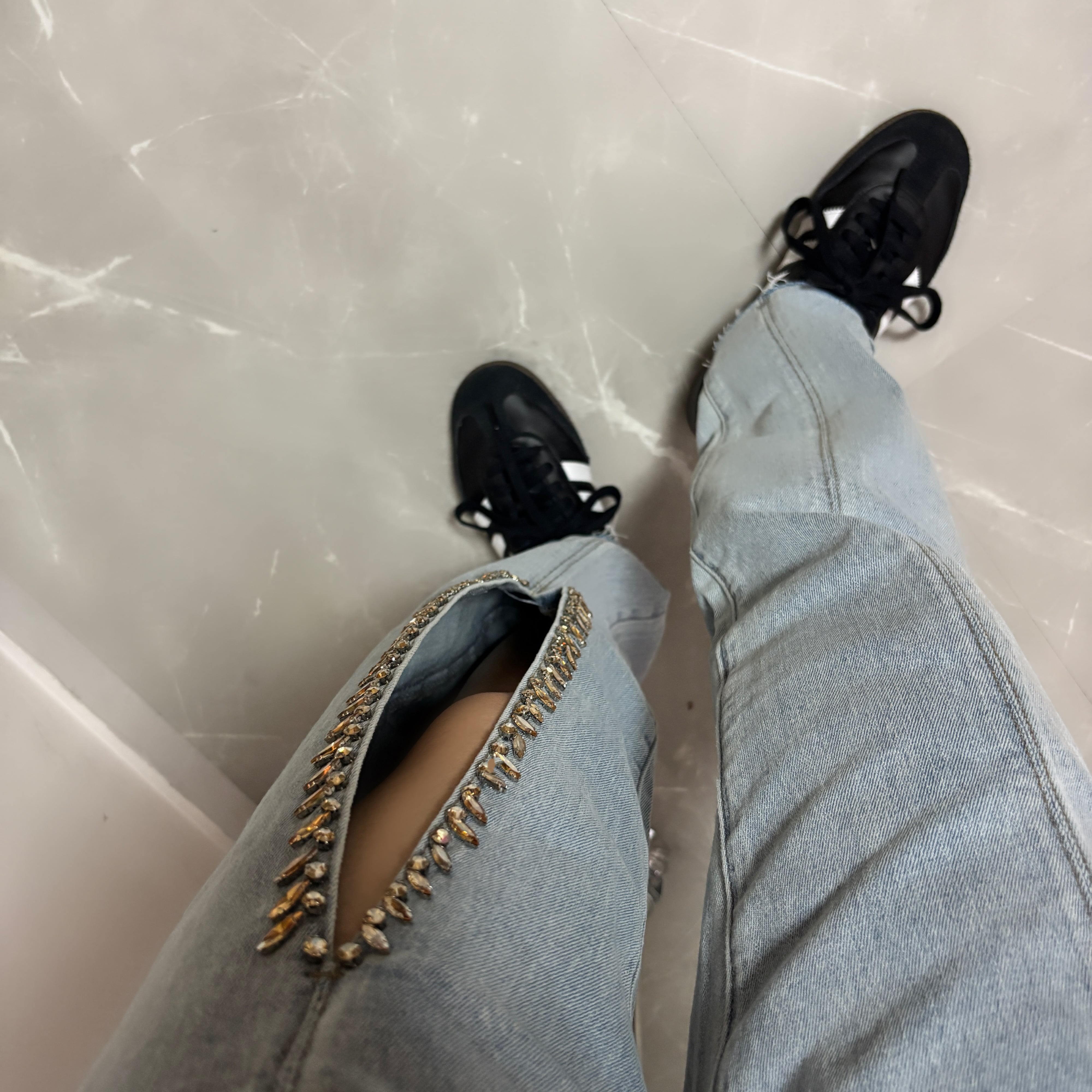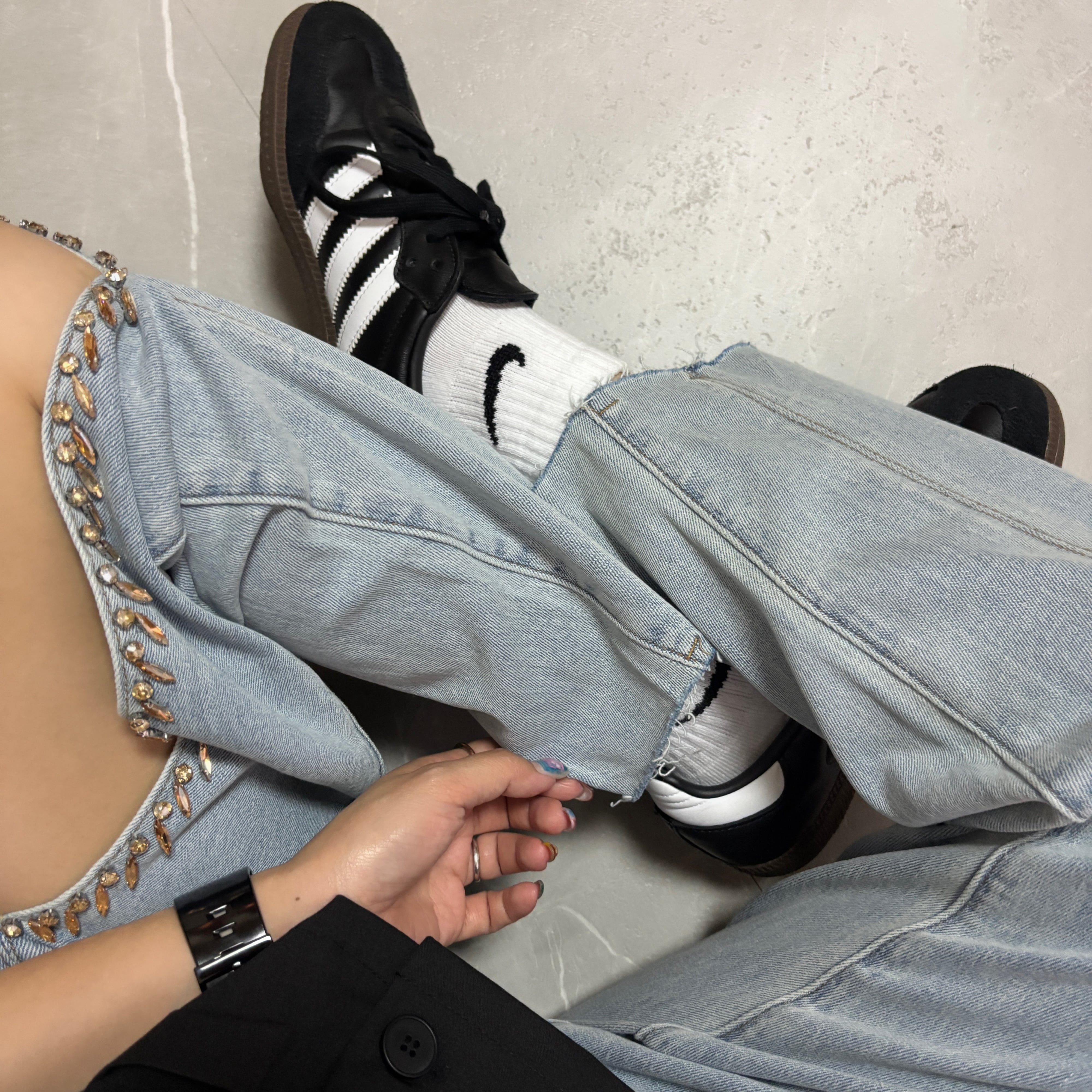 デニムとビジューの絶妙な組み合わせで、さまざまなシーンに合わせて楽しめるオススメアイテムです♡