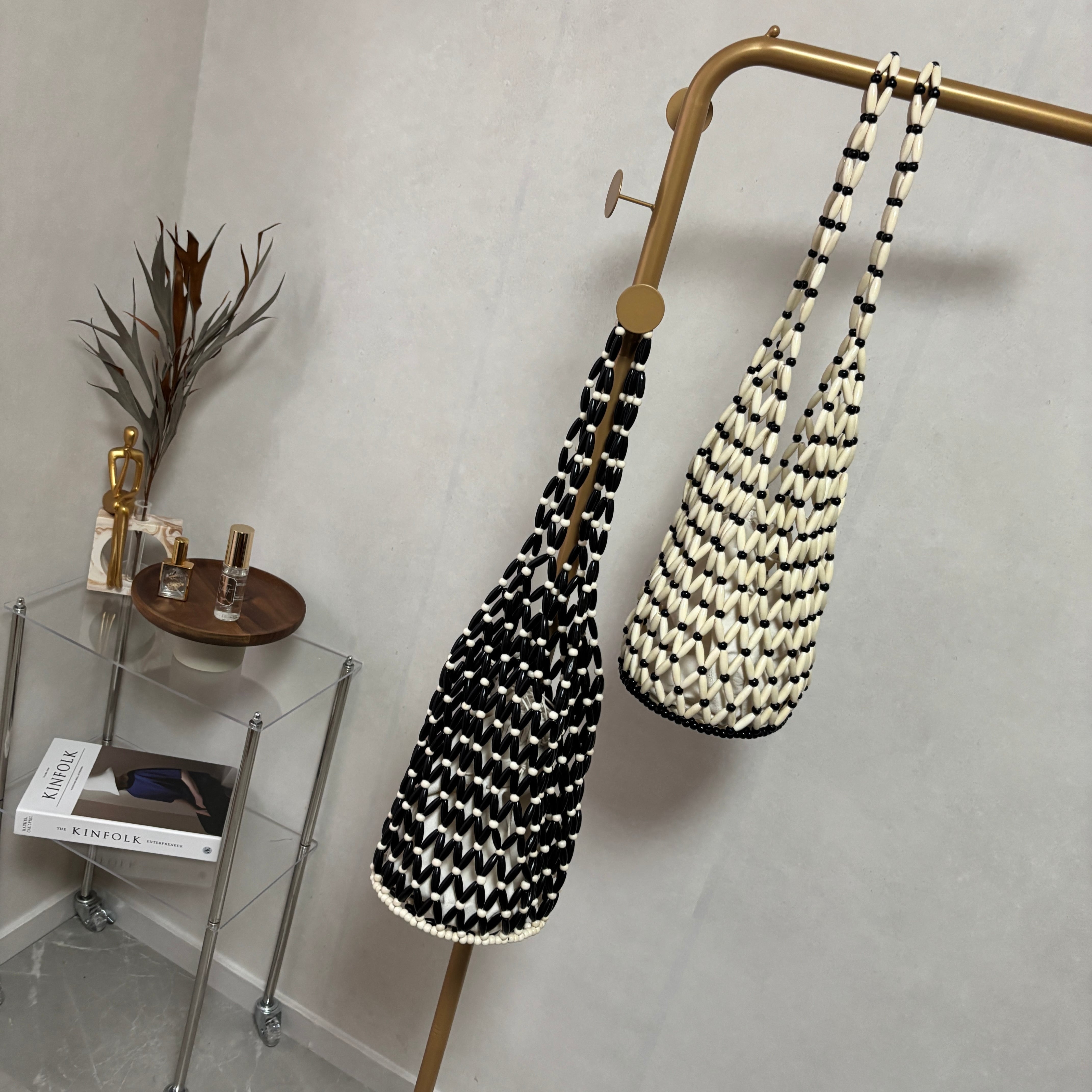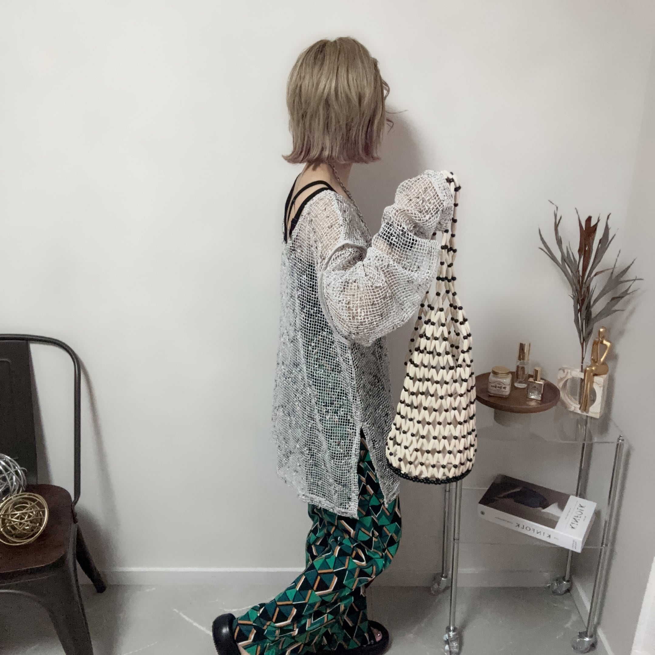 夏の気分を盛り上げてくれる、ウッドビーズをたっぷり使用したオーバルバッグが登場♪