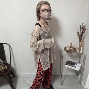 mix mesh 2way summer knit tops【beige】