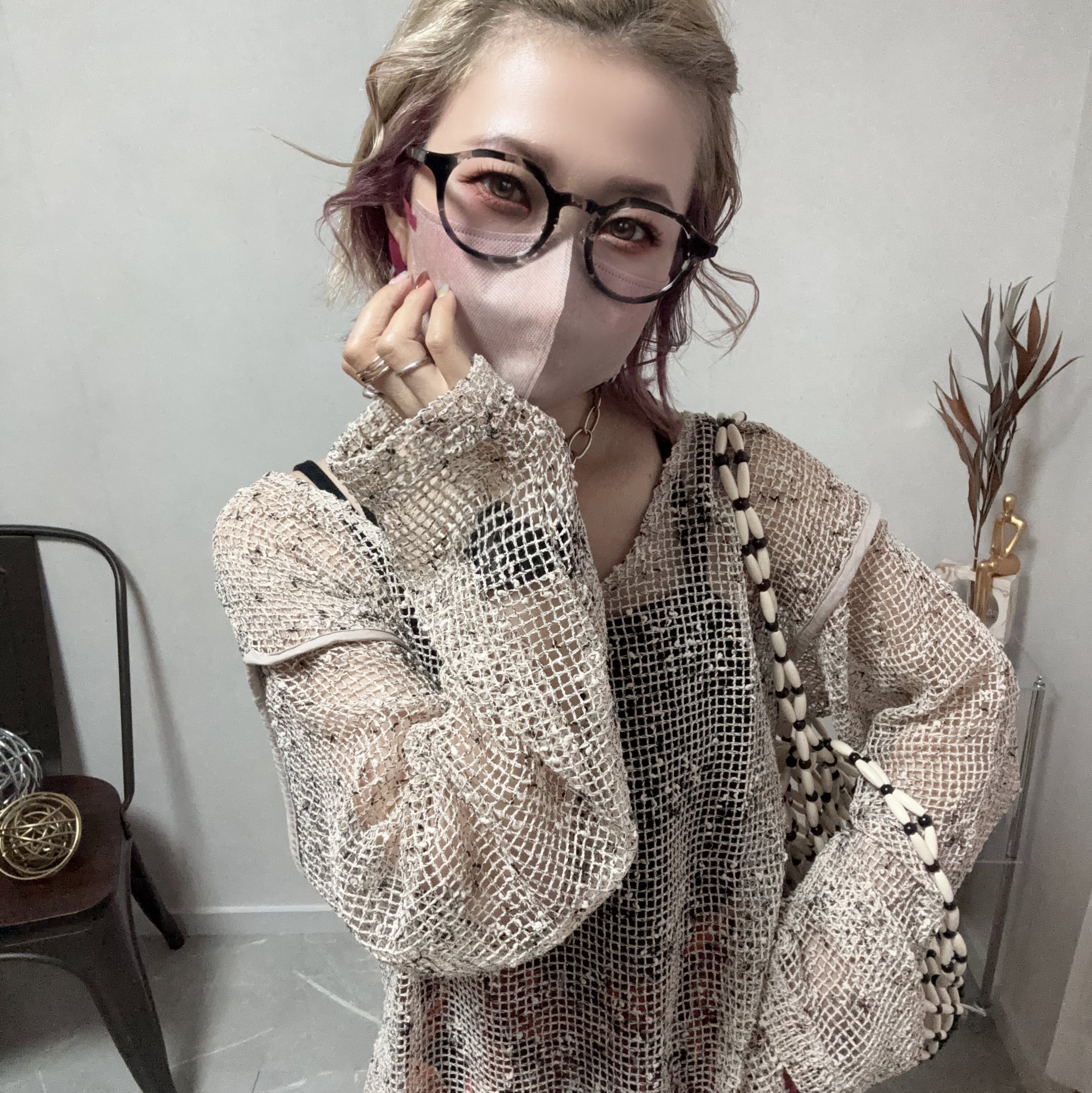 シアー感のある透け編みが軽やかで、春夏らしい抜け感を演出します◎