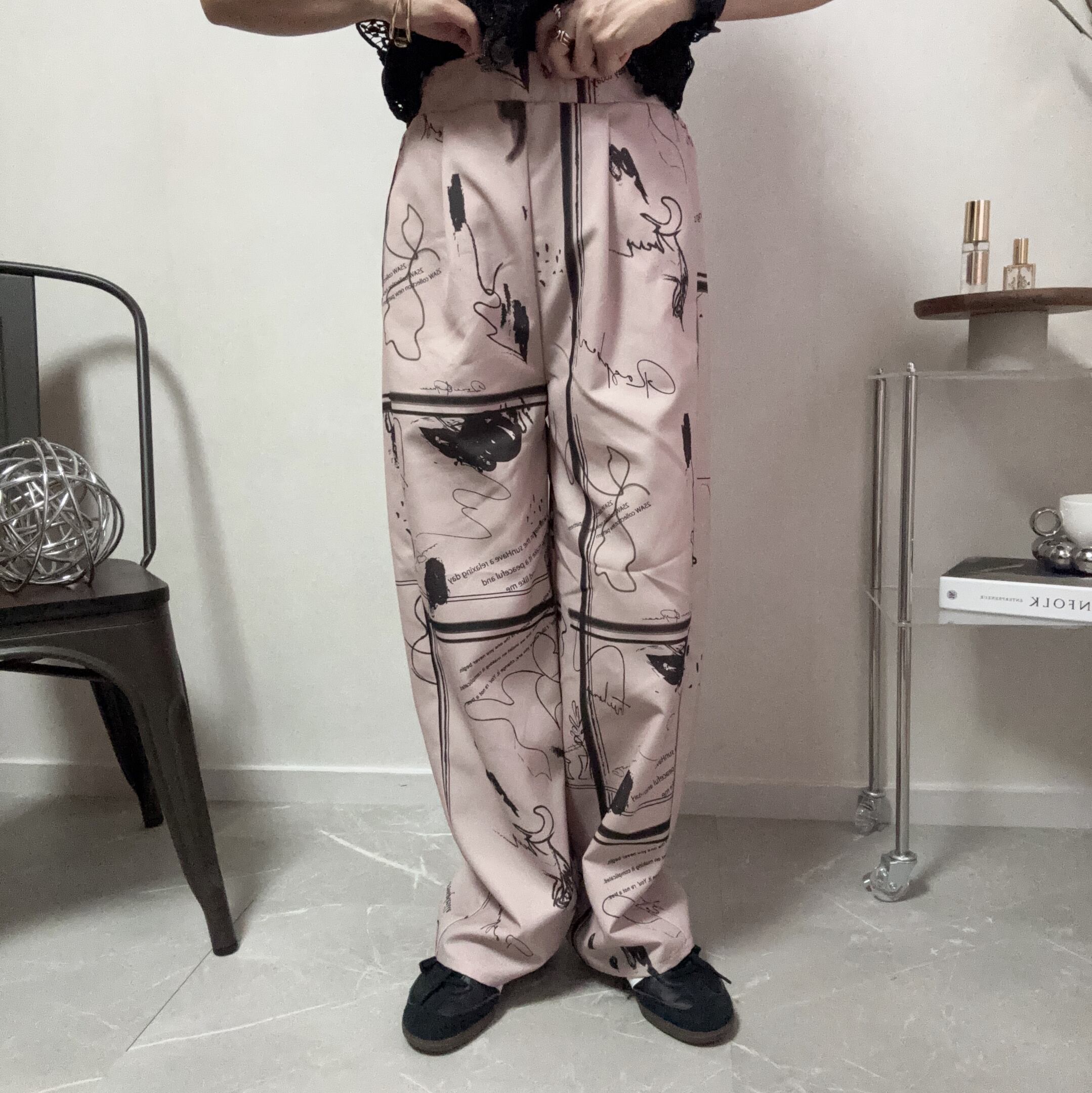 ウエストはゴム仕様ですがフロントにはギャザーがなくすっきりとしたデザインなので、タックインした際にもきれいに見えるがポイント。