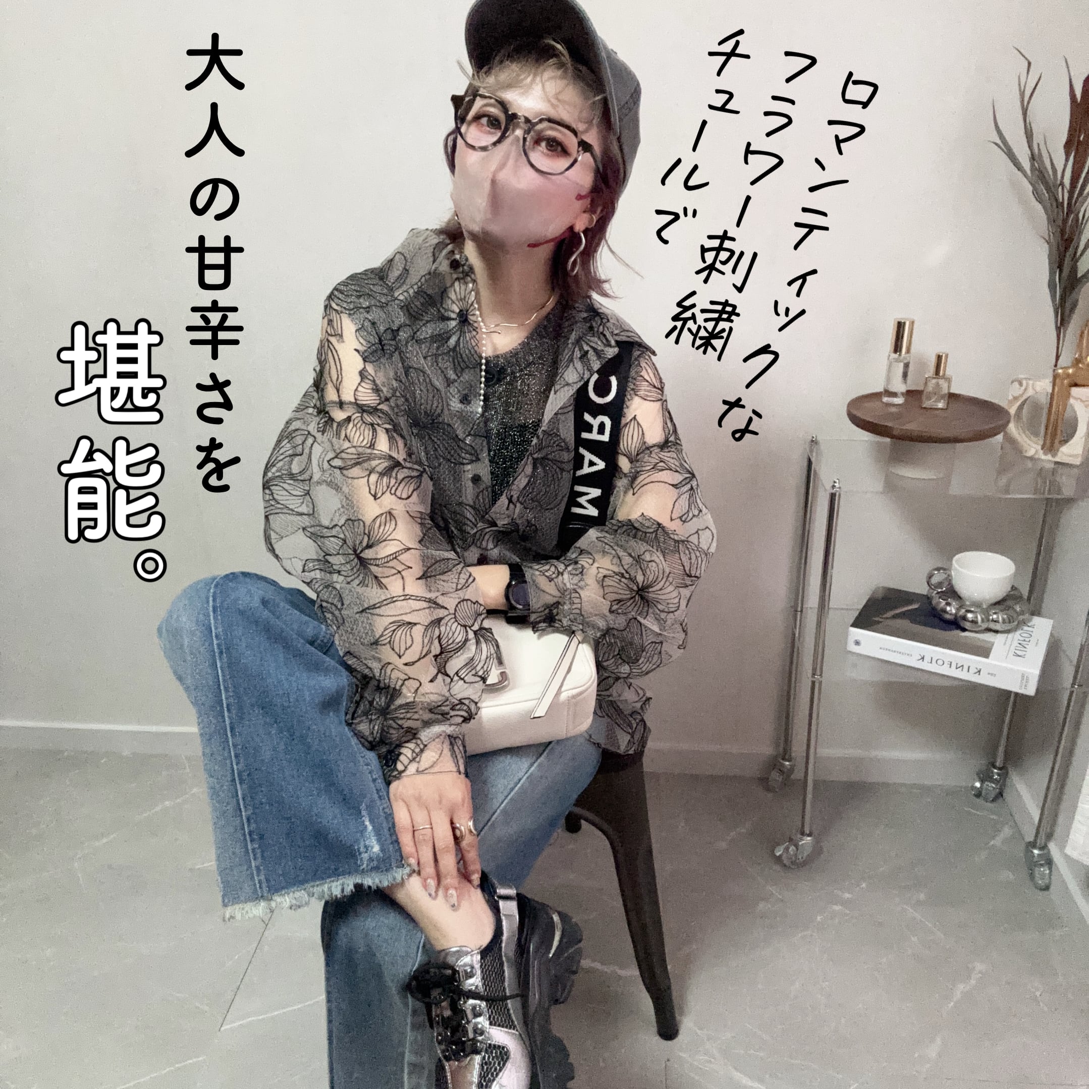 大胆に大きめのフラワー刺繍が施されたチュール素材は、抜け感と存在感たっぷり。