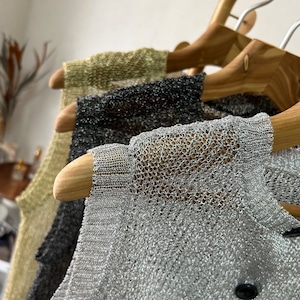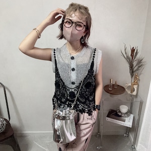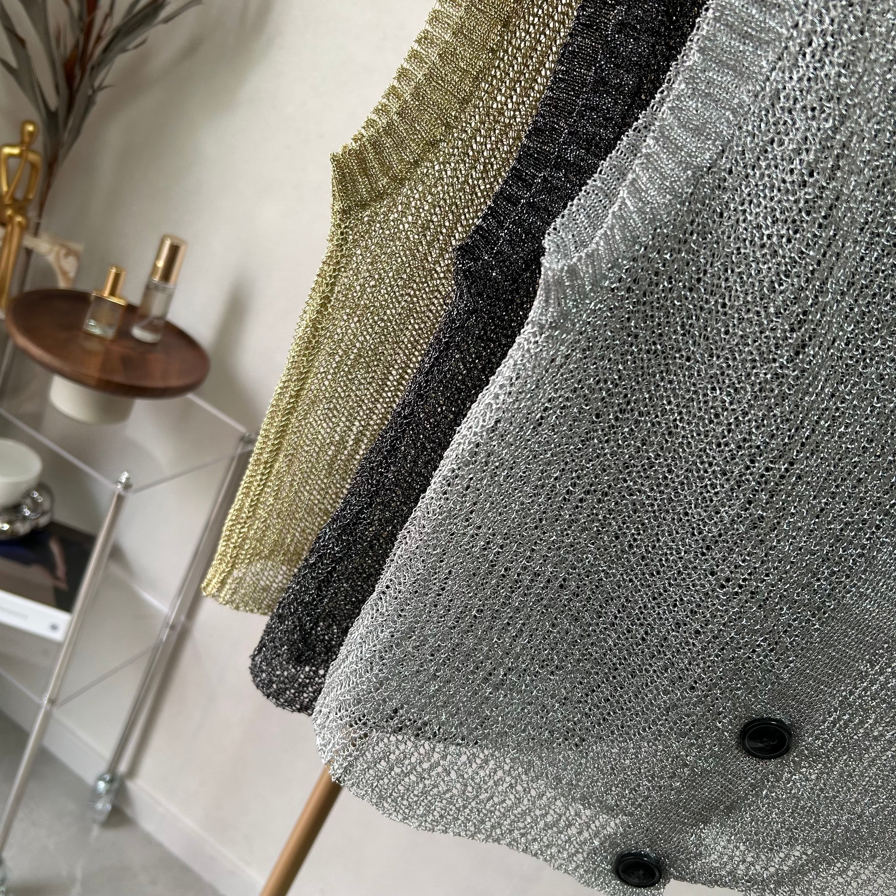 今季のスタイルを引き立てる、スリーブレスラメトップス。