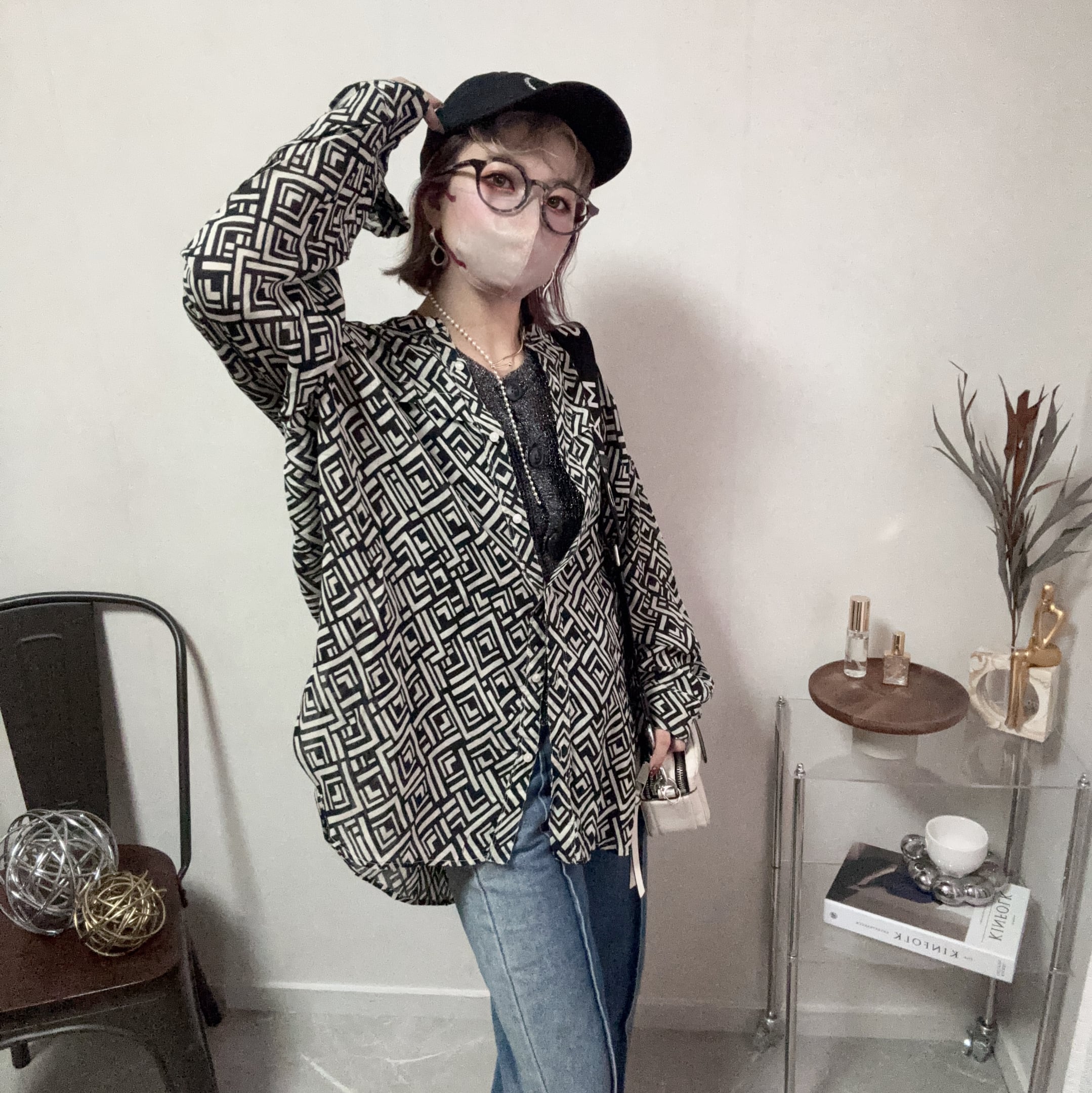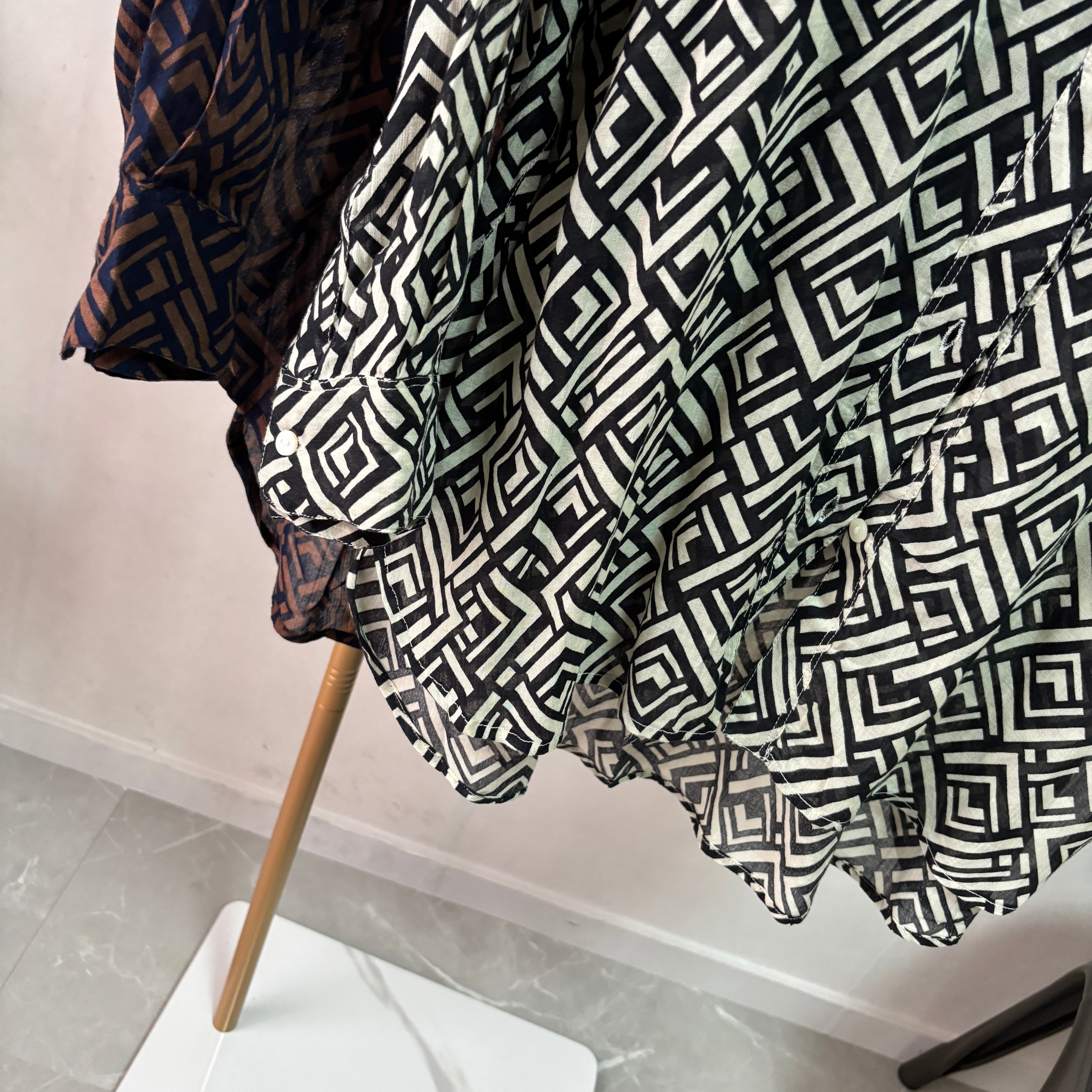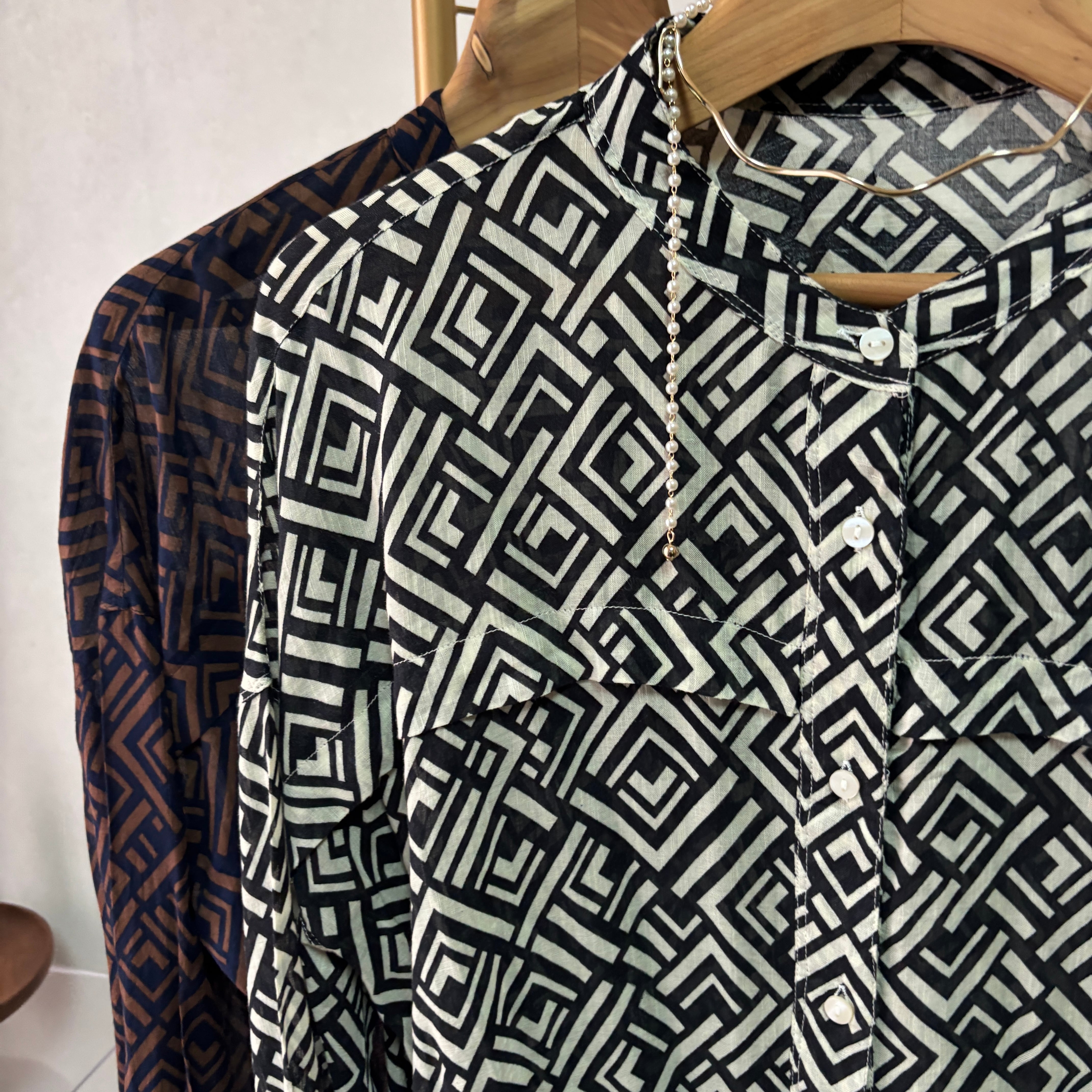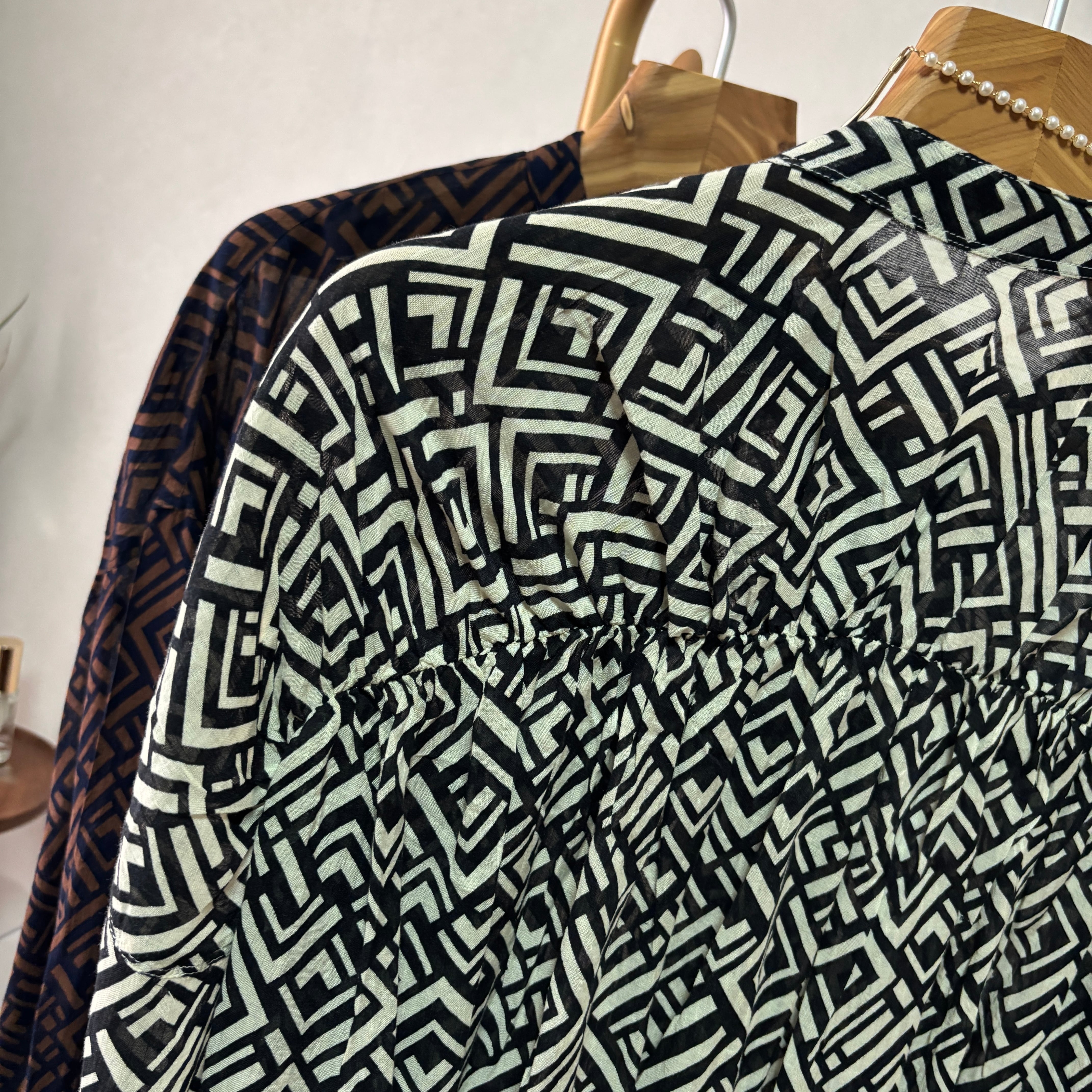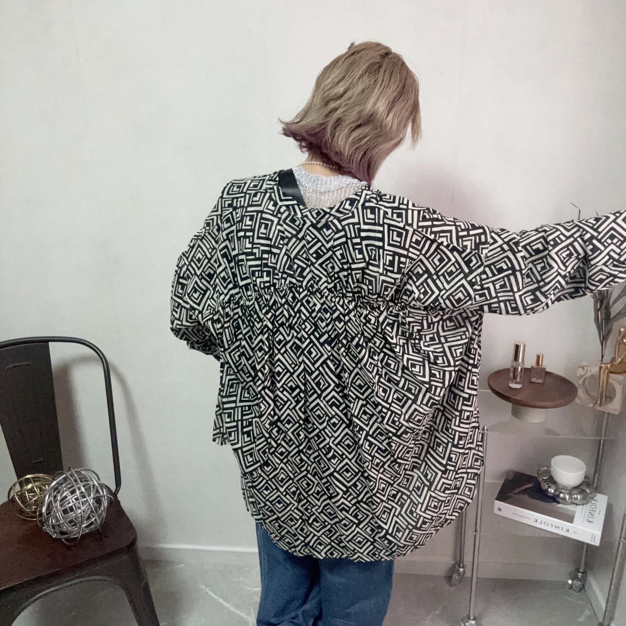 geometric pattern back gather SH【Black】