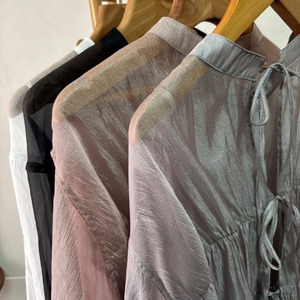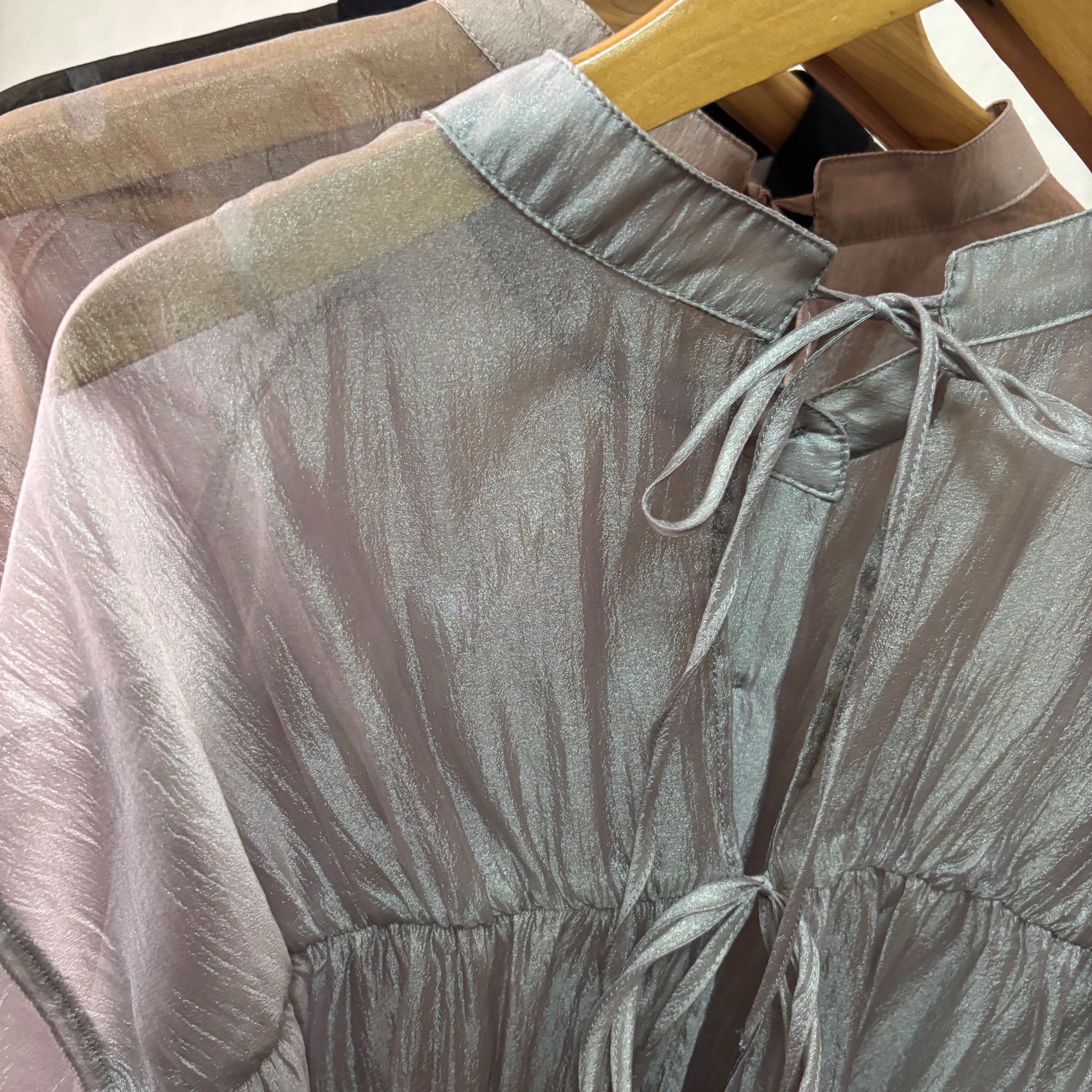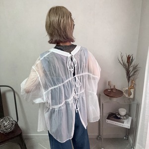 繊細な光沢感が美しいオーガンジー素材を使用したシアーブラウス。