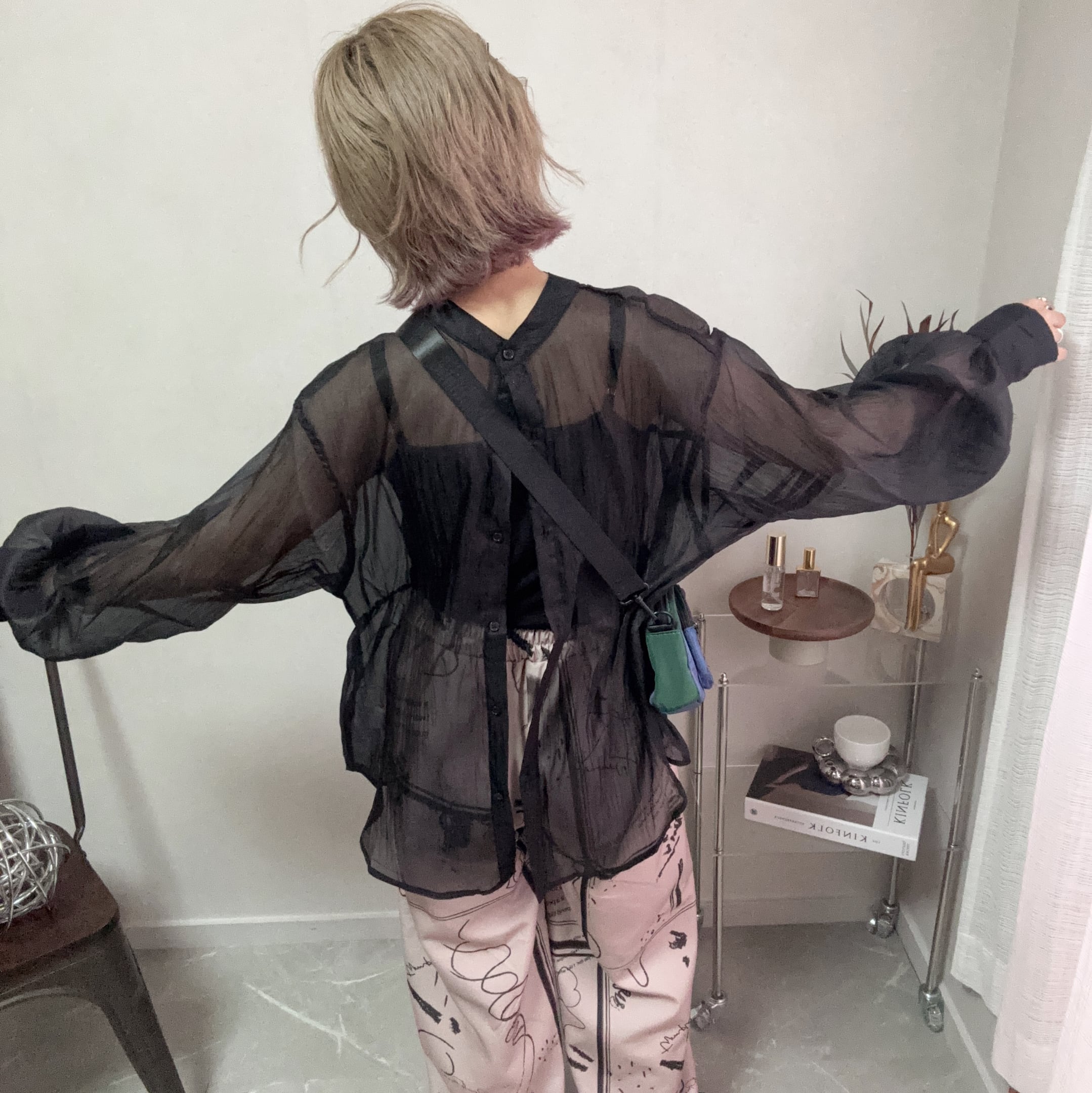 繊細な光沢感が美しいオーガンジー素材を使用したシアーブラウス。
