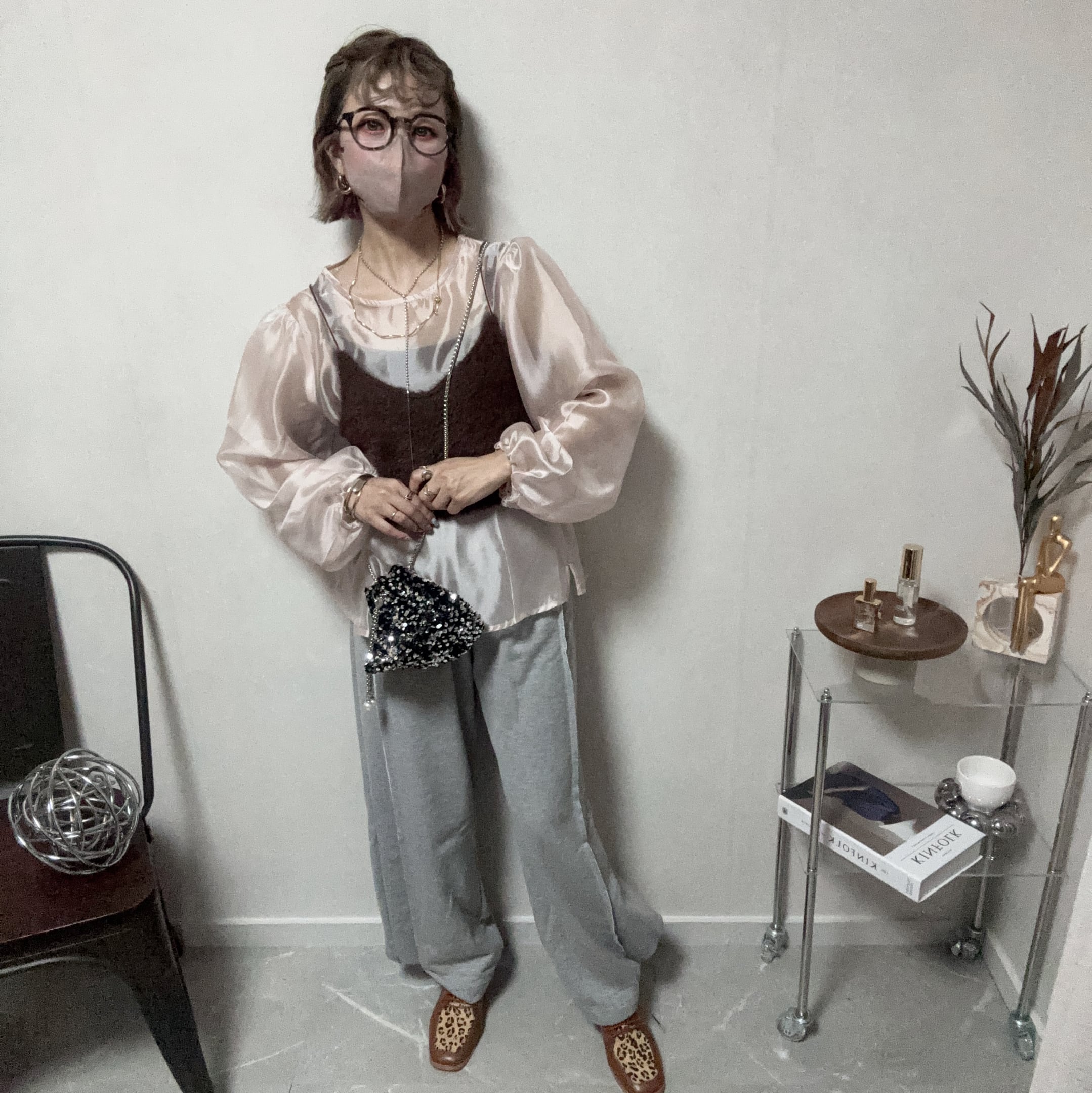 ガーリーアイテムをあえてスウェットパンツにヒールパンプスと合わせる事で、こなれ感が高まるバランス良きなコーデもオススメです♡