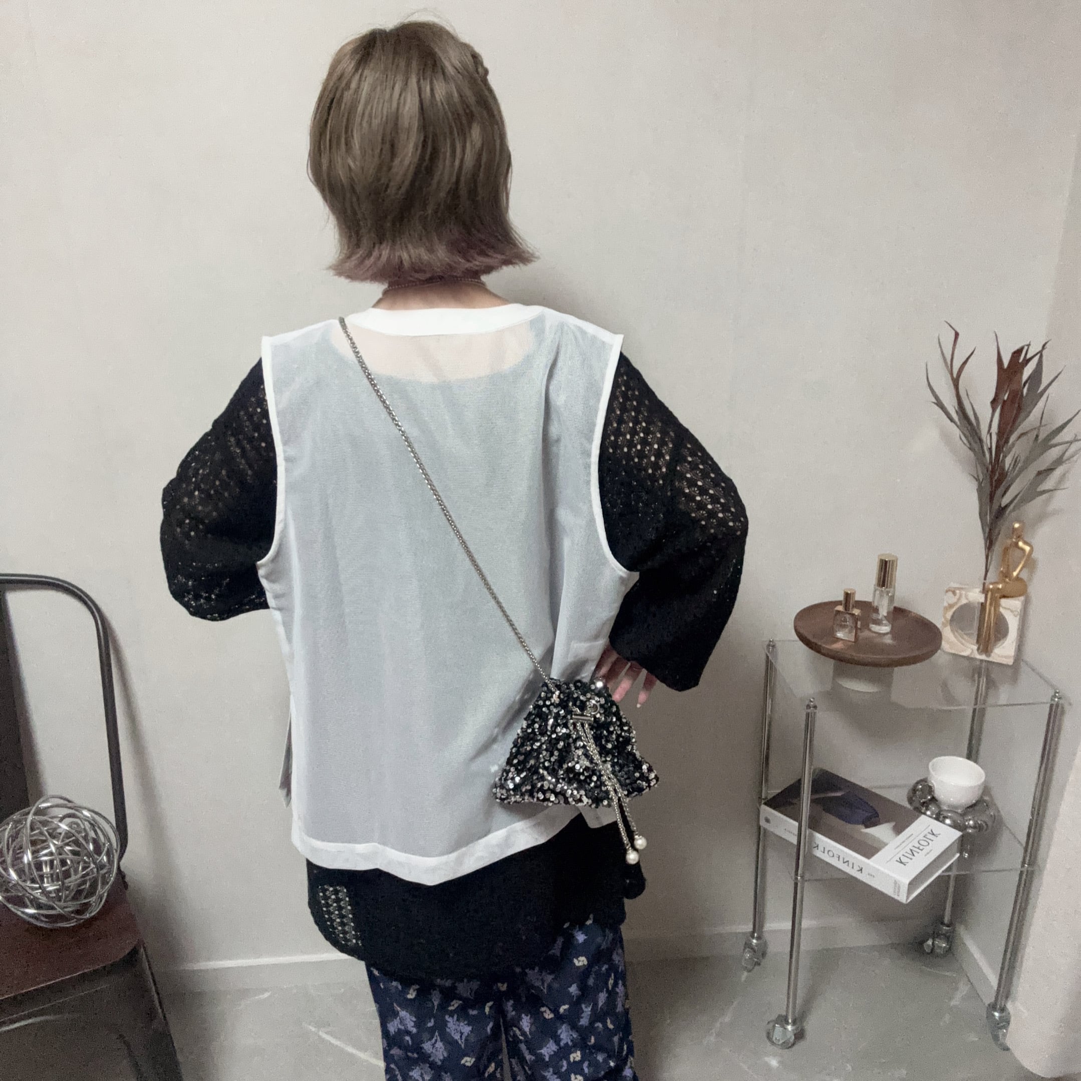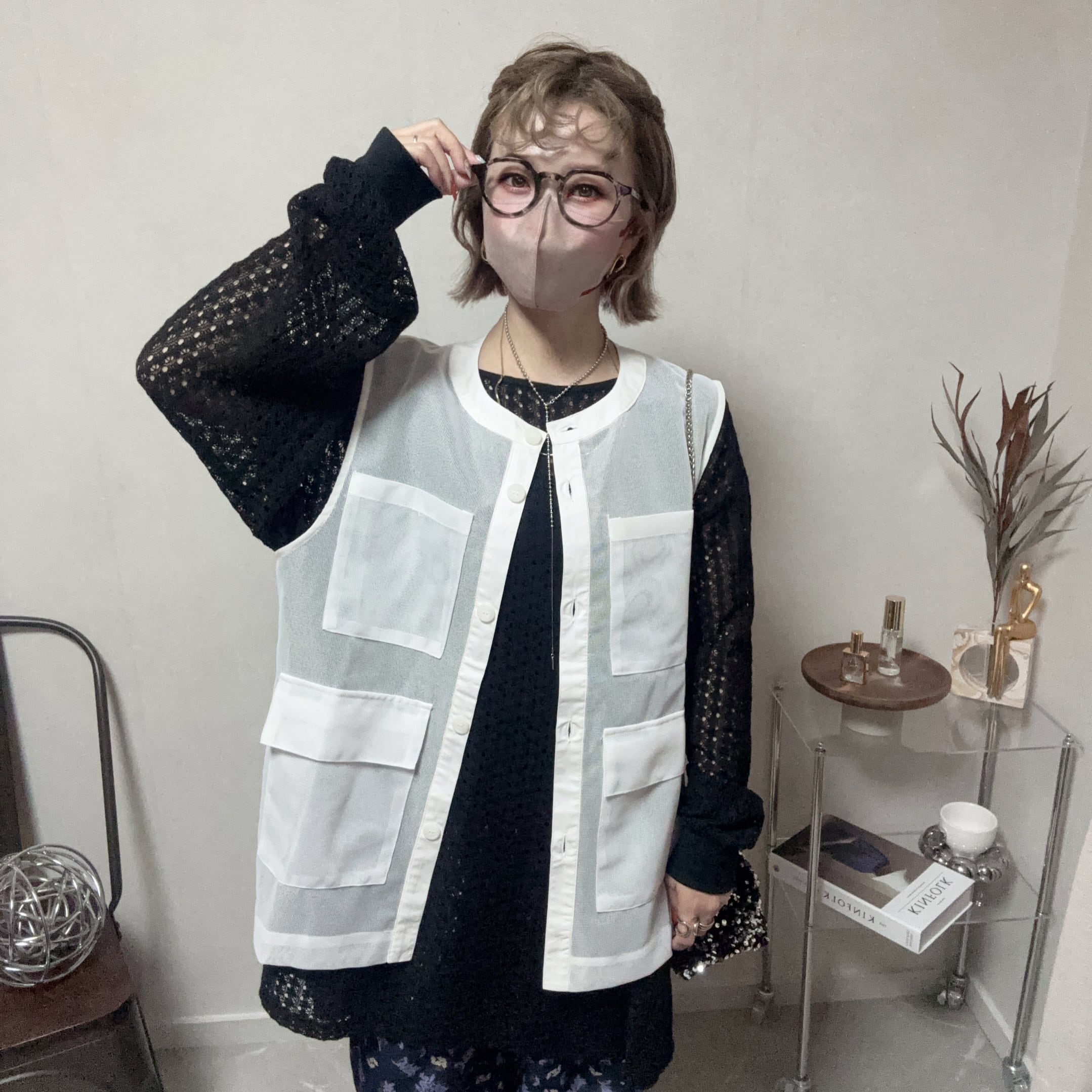 ポケットのたくさんついたフロントデザインが印象的なアイテムで、おしゃれと快適さを兼ね備えたメッシュベスト。