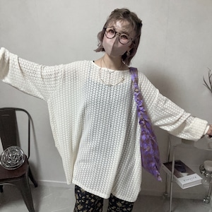 鍵編み風のメッシュが特徴的なメッシュニットトップスが登場♪