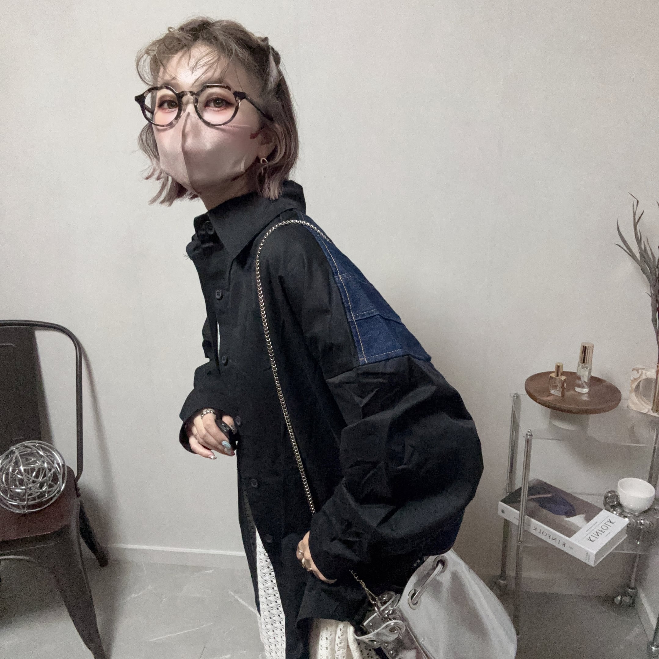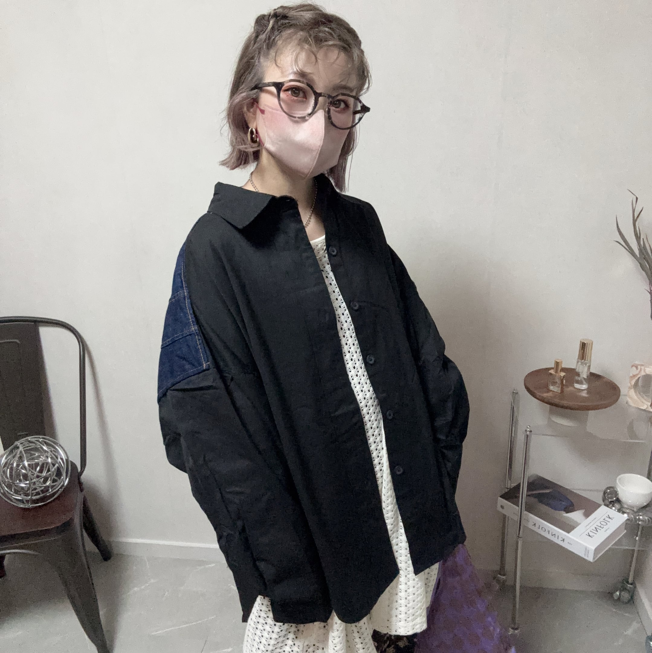 デニムの異素材を組み合わせたおしゃれなドッキングシャツ。