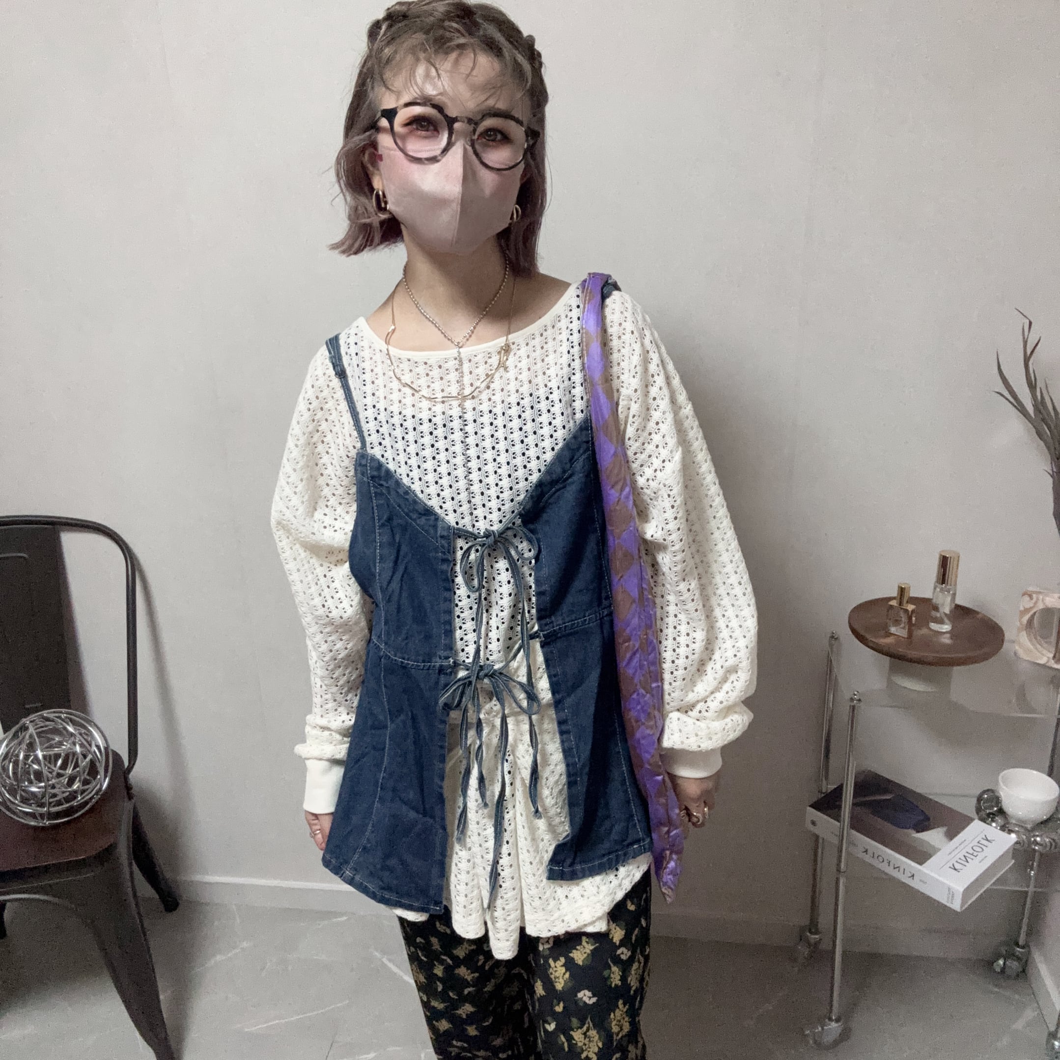 デニム素材を使用したフロントリボンビスチェが登場です◎