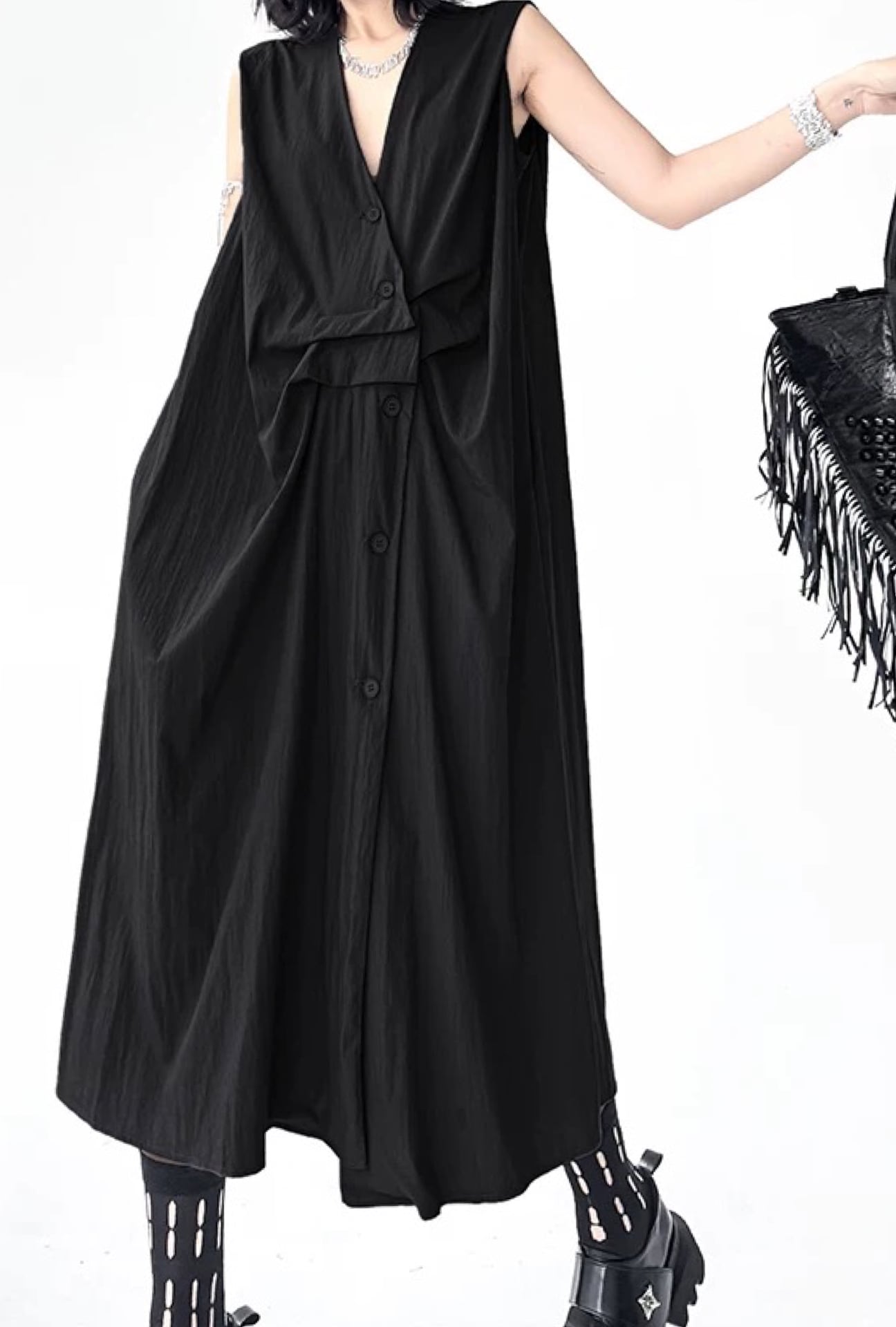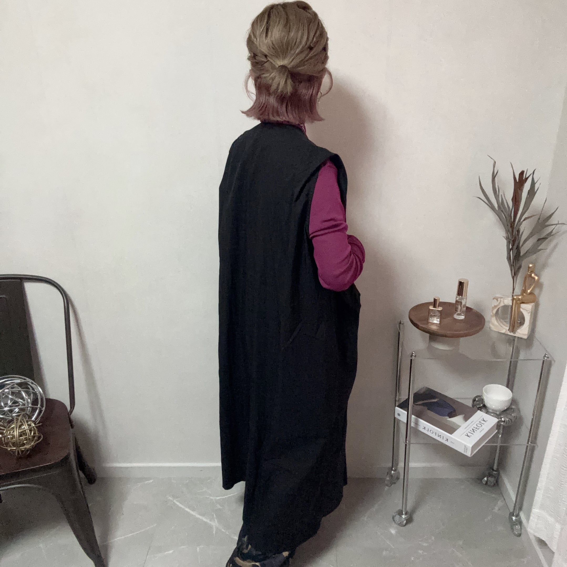 tiered west long gilet OP【Black】