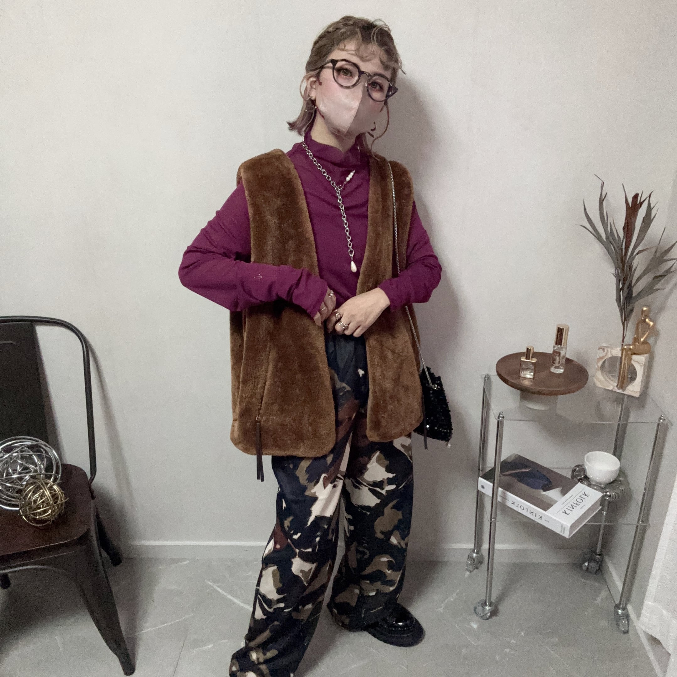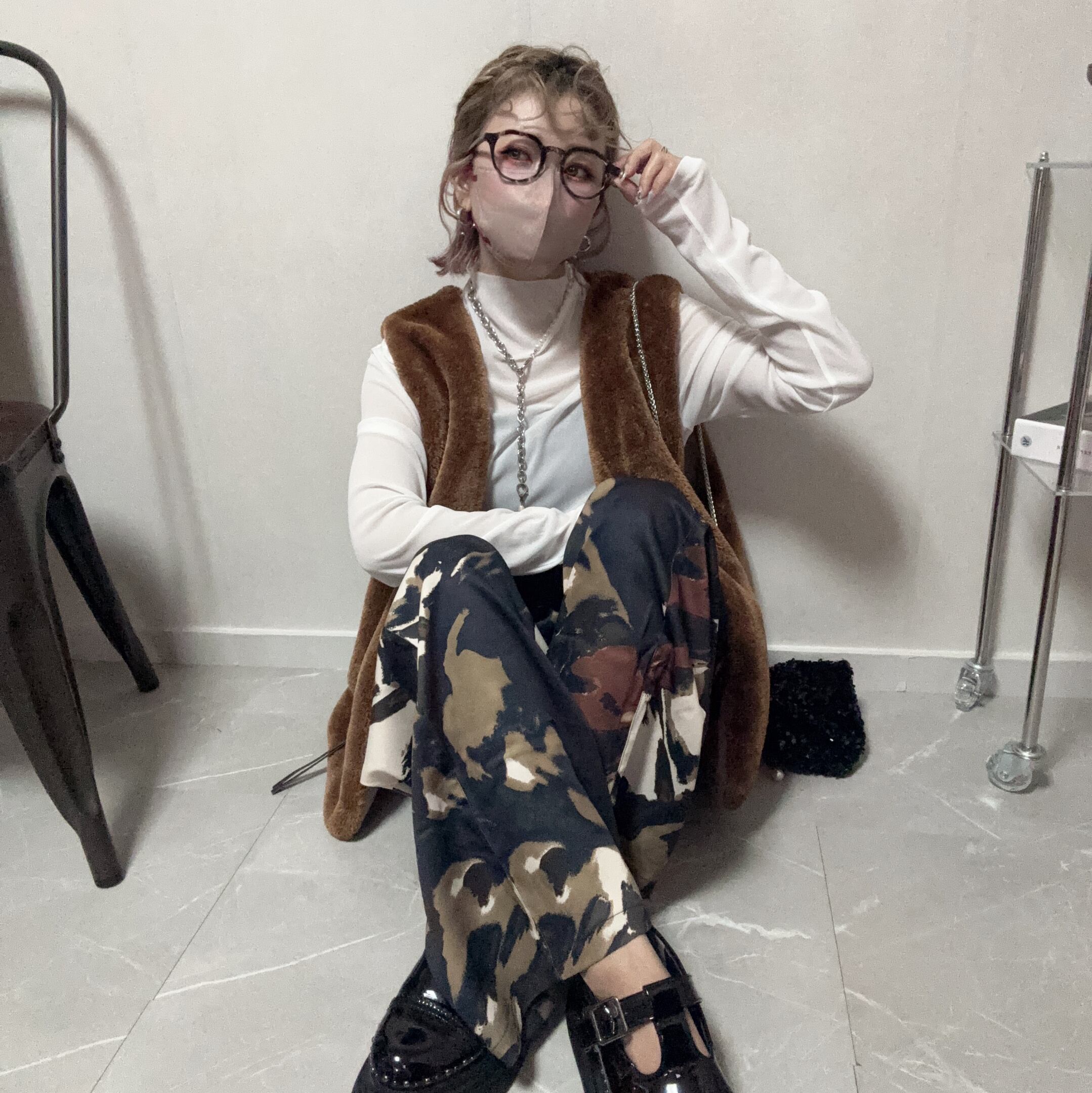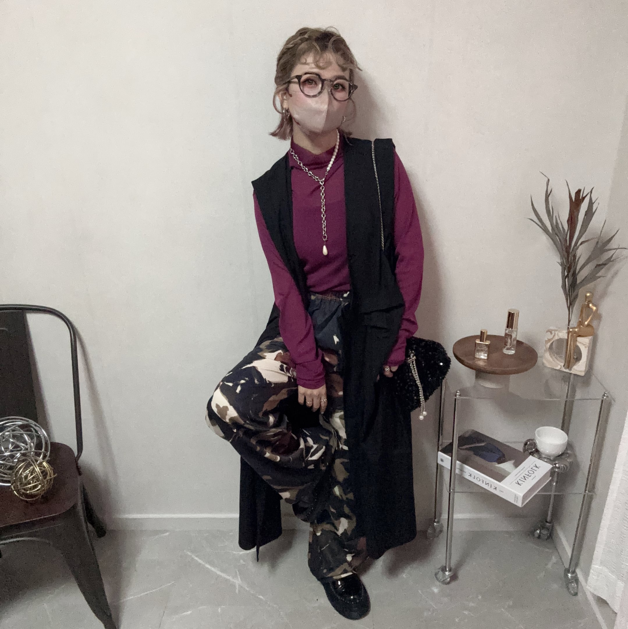 色数豊富なプリントなので、単色トップスと合わせるとコーデが決まります◎