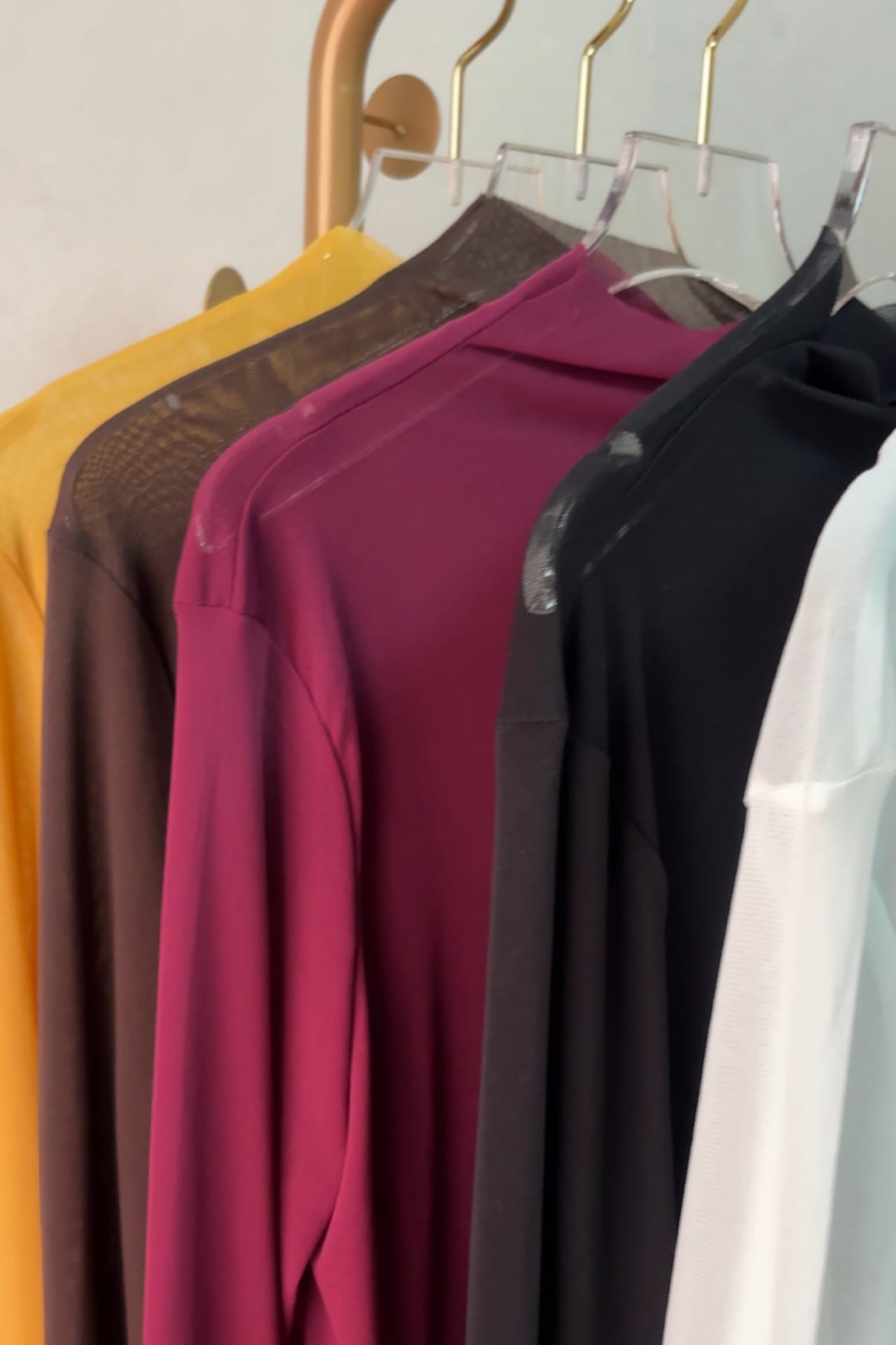 パワーメッシュの素材感が魅力のボトルネックシアーロンT!