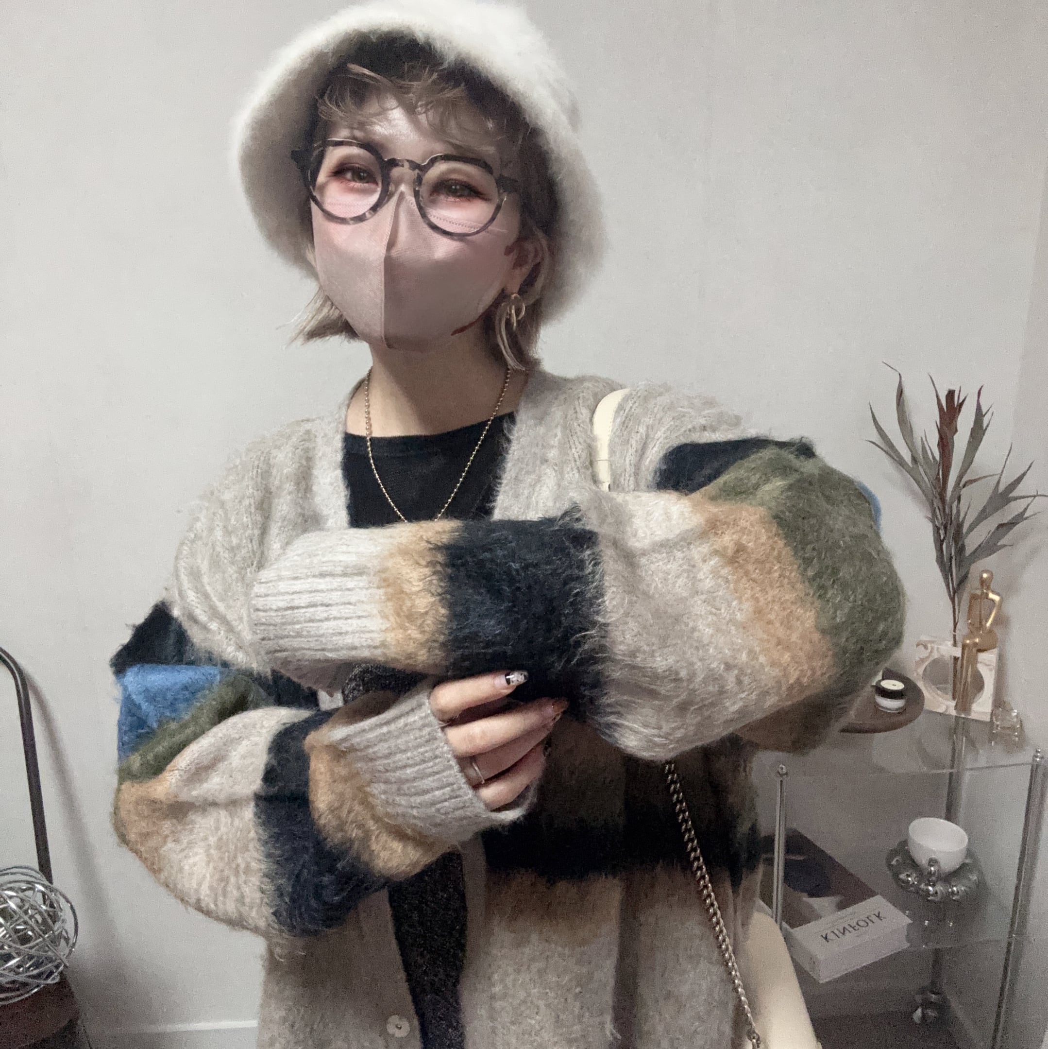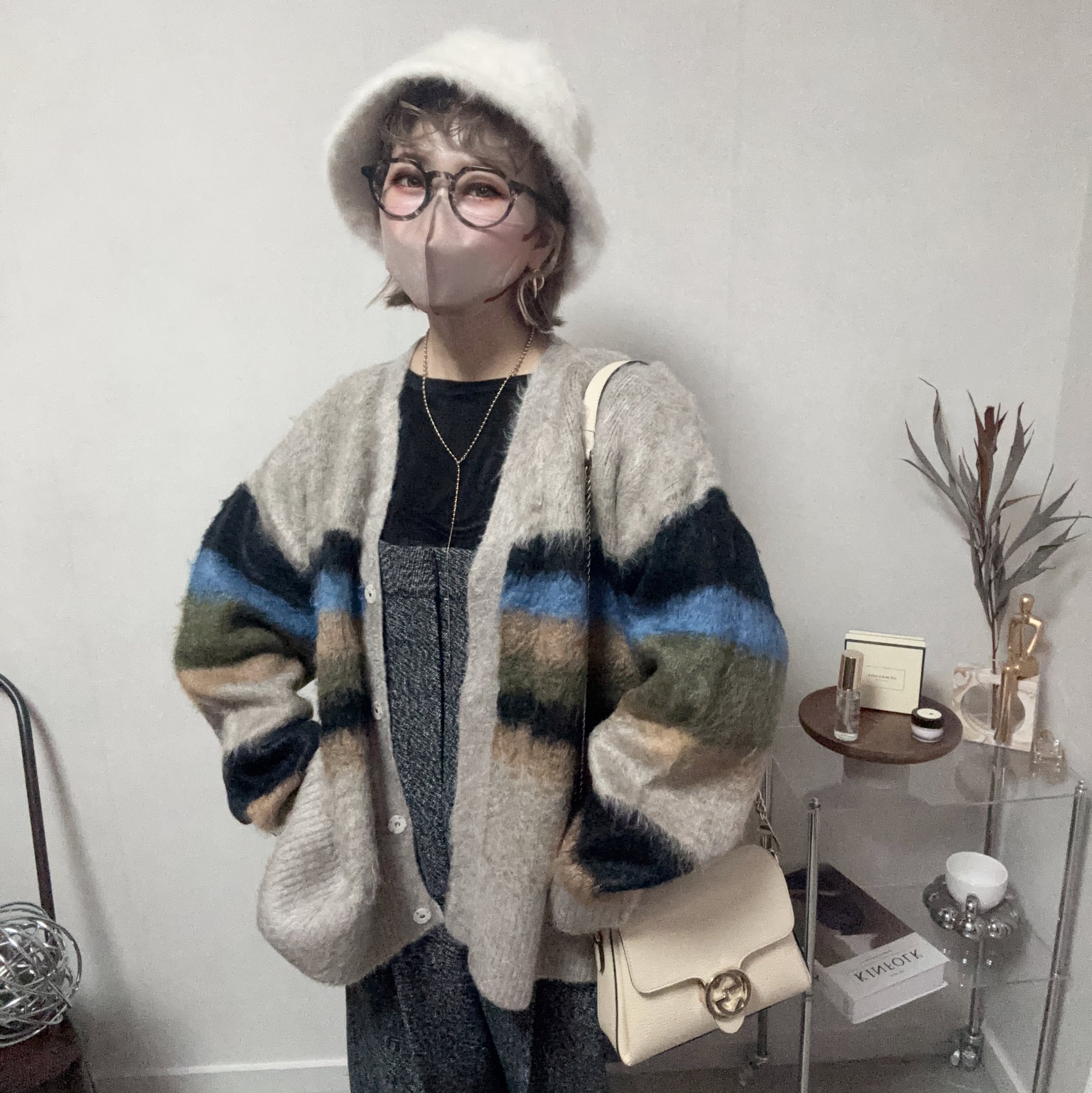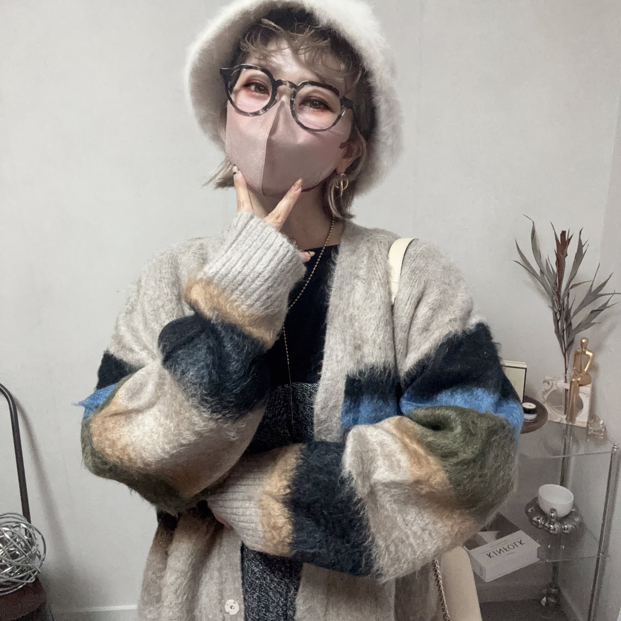 暖かみのある可愛い配色のシャギーニットカーディガン◎