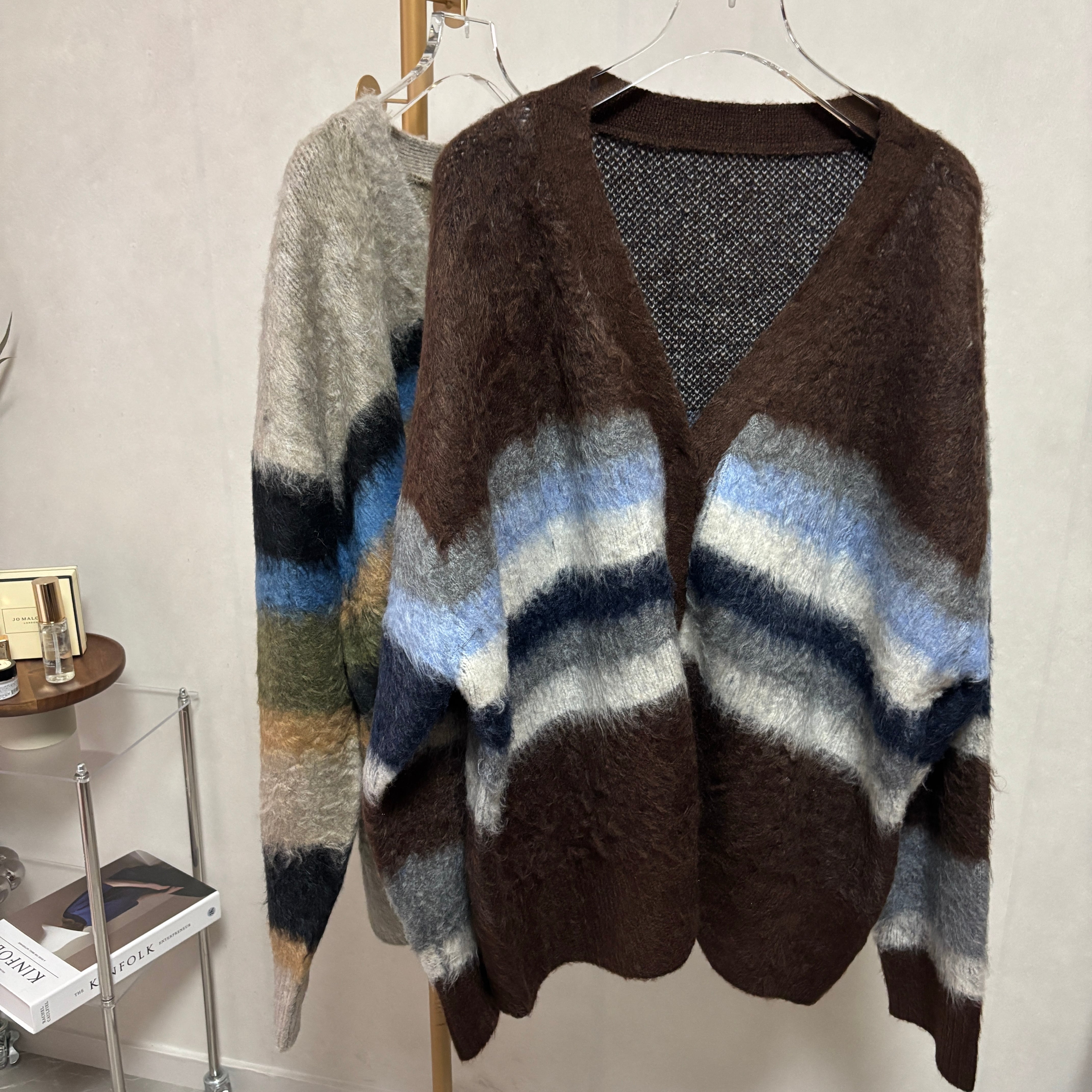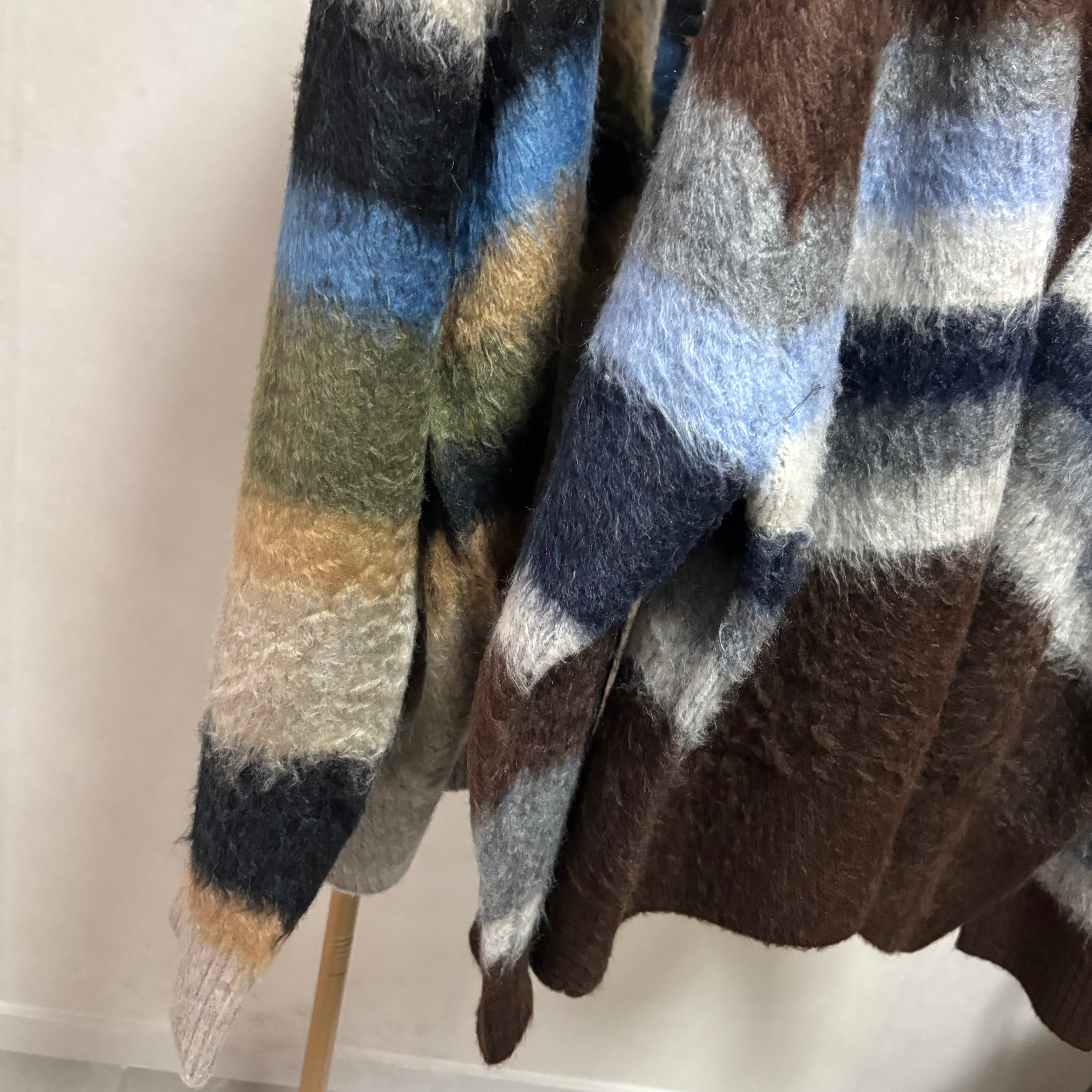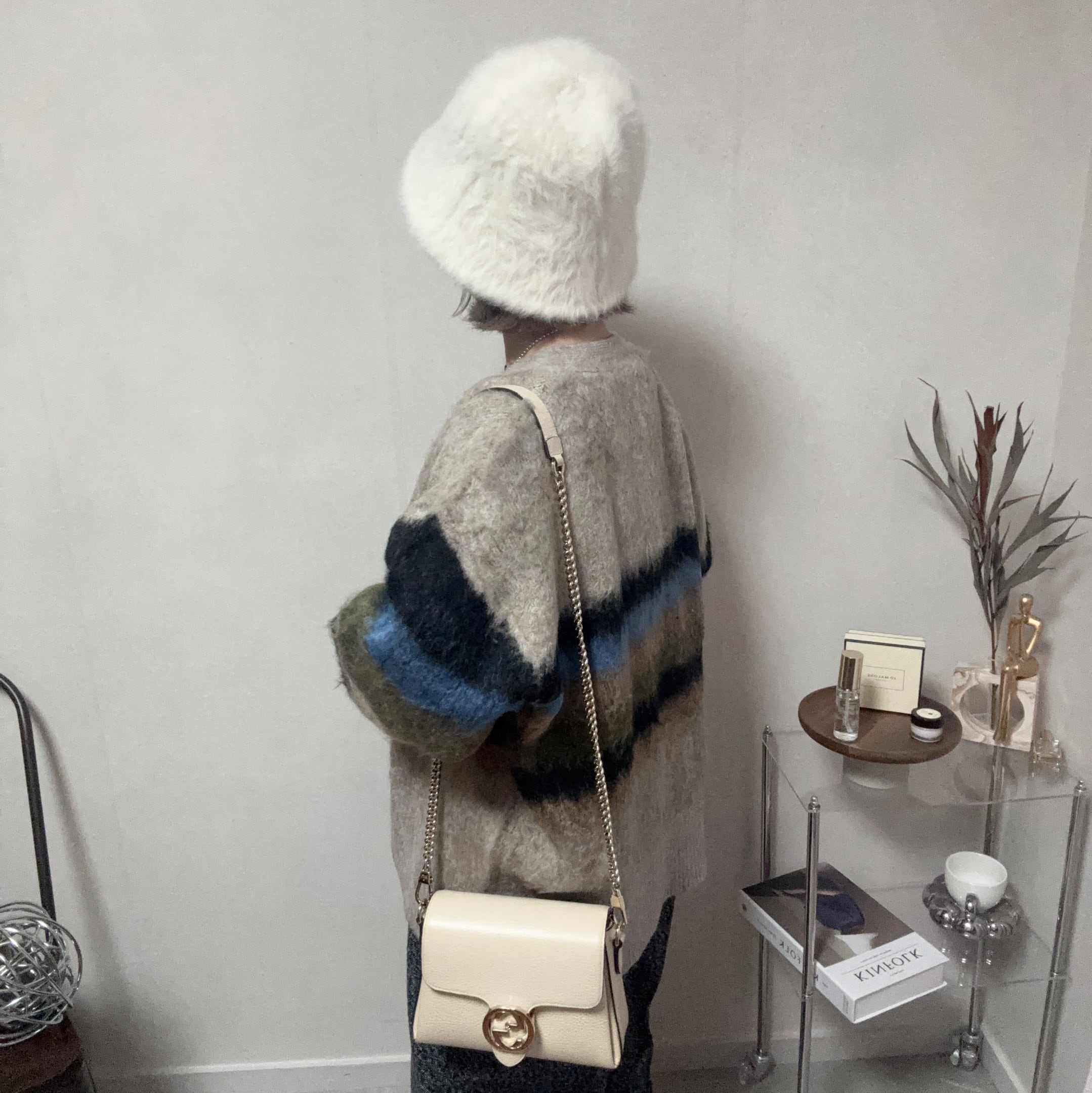 暖かみのある可愛い配色のシャギーニットカーディガン◎