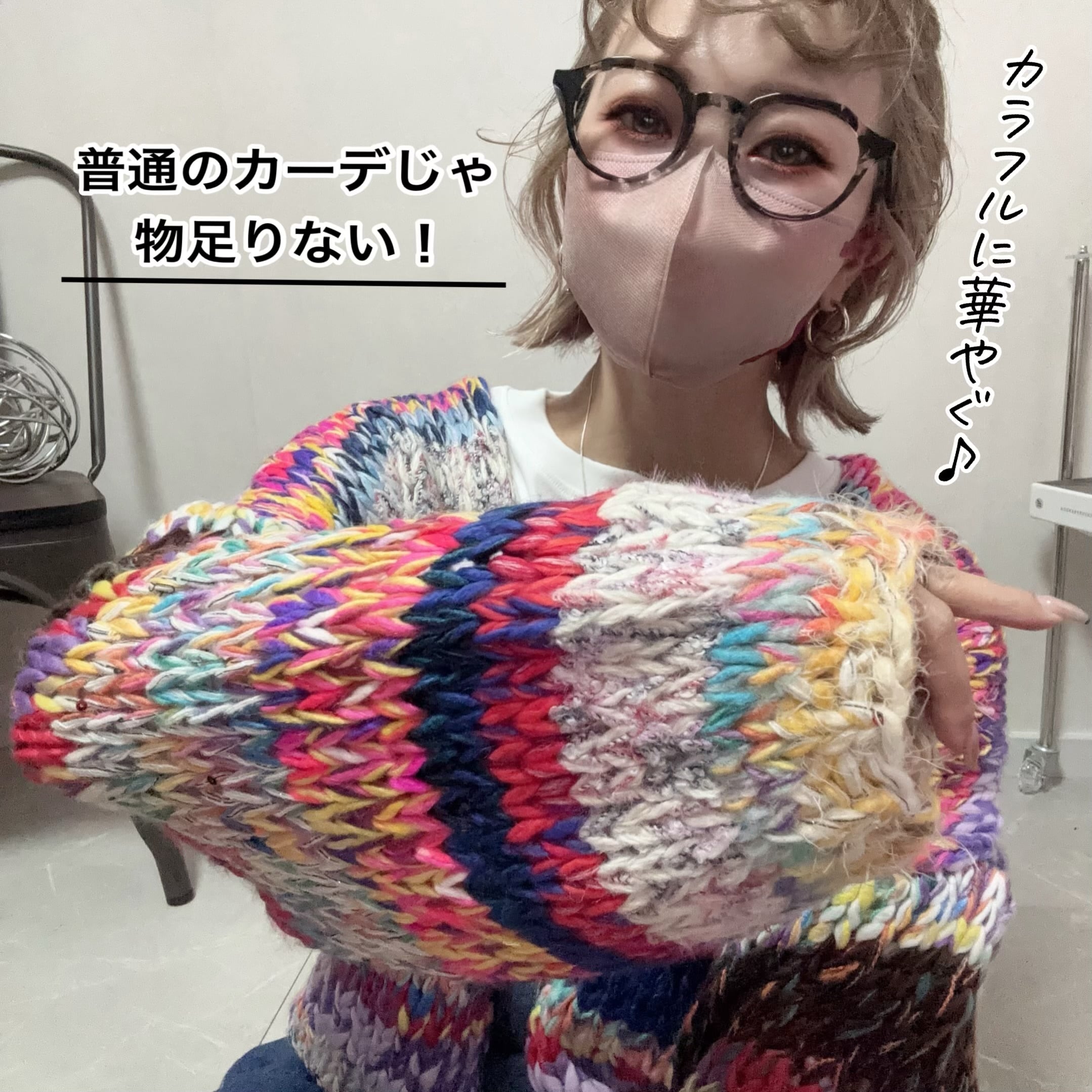 色とりどりの糸を使用することで、奥行きのある表情が生まれ、暗くなりがちな冬コーデも一点投入で一目置かれる存在感。