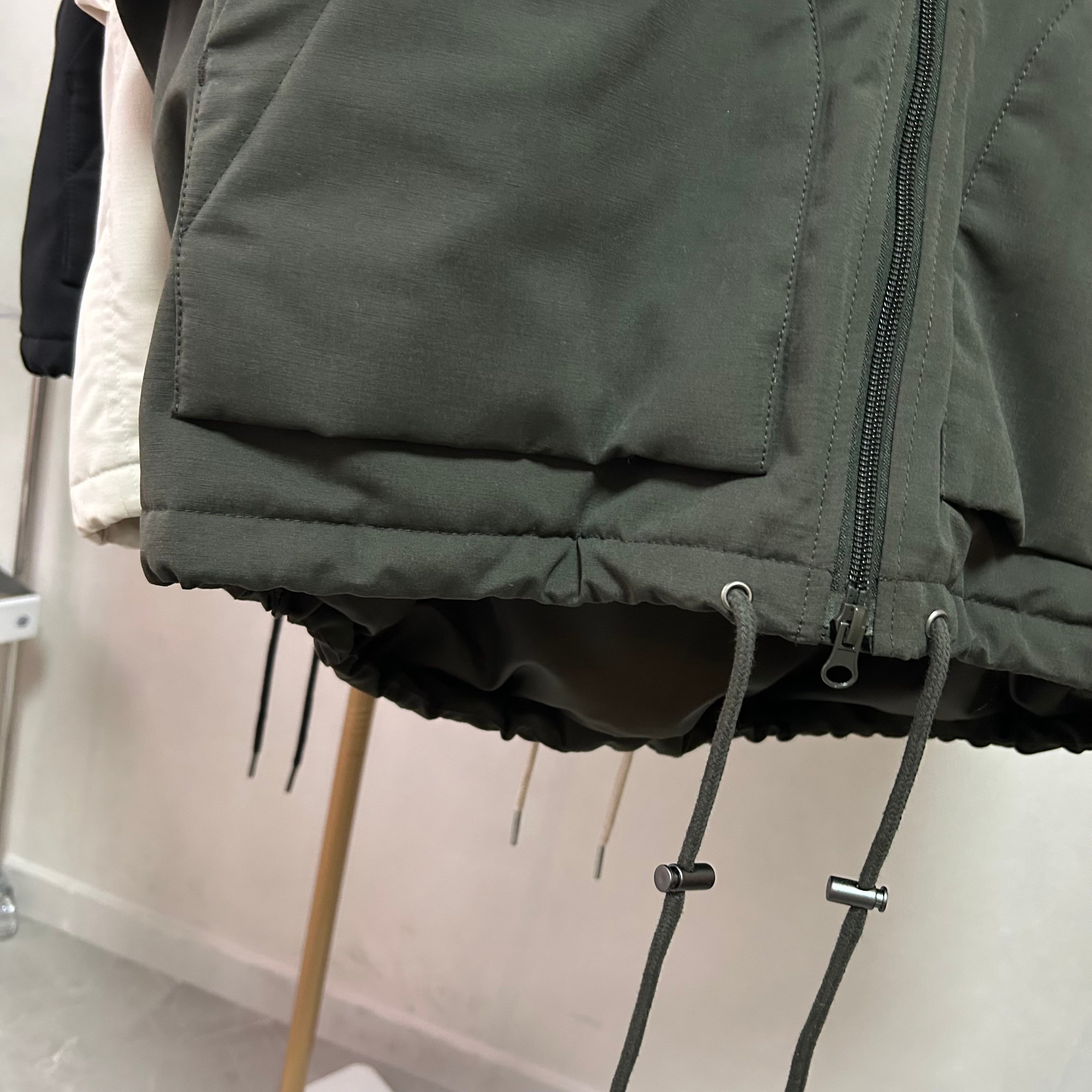サーバーサイズで程よい厚み仕様なので、、インナーにスウェットフーディーやニットセーターをインしてもごわつかず寒い季節にぴったりの暖かさを提供します◎