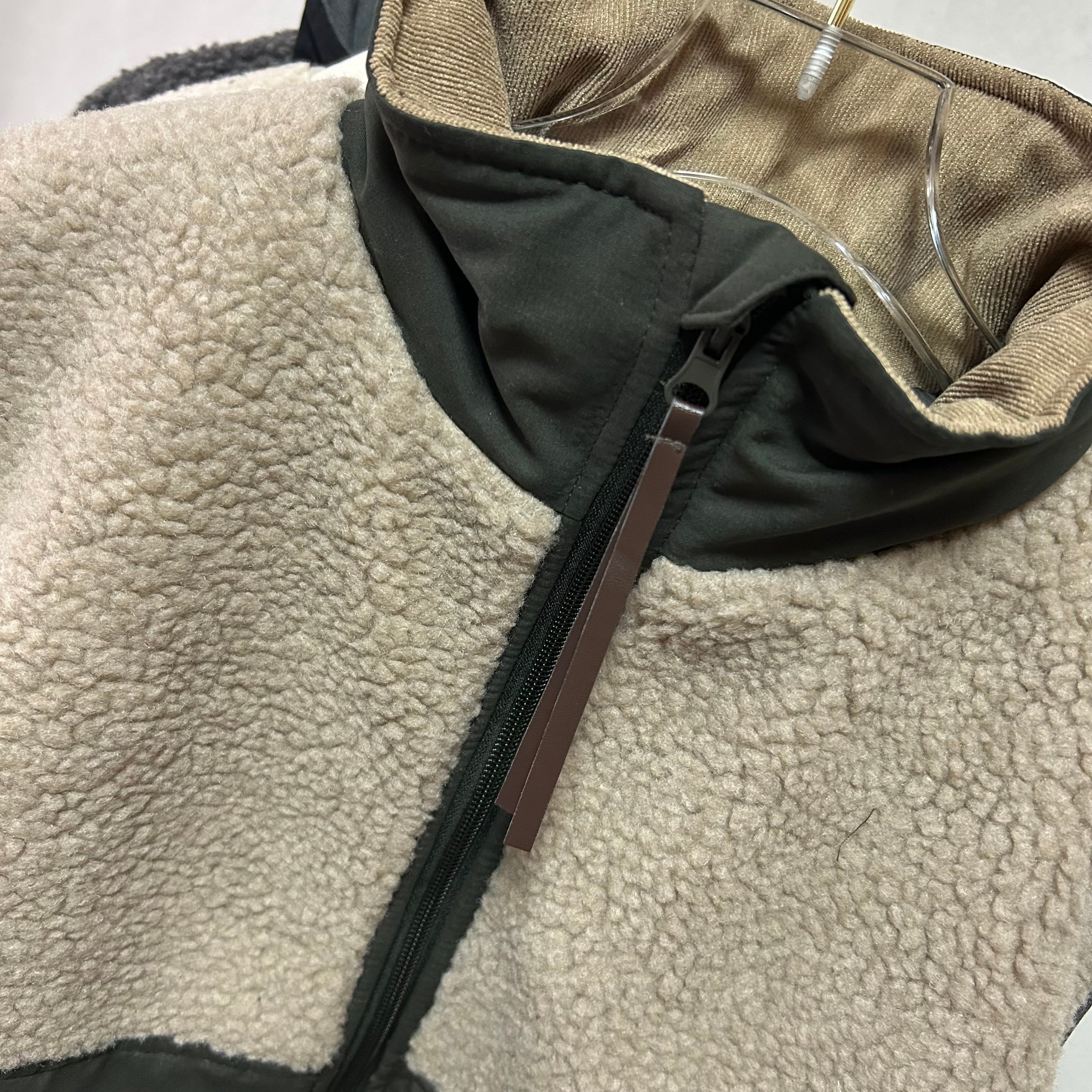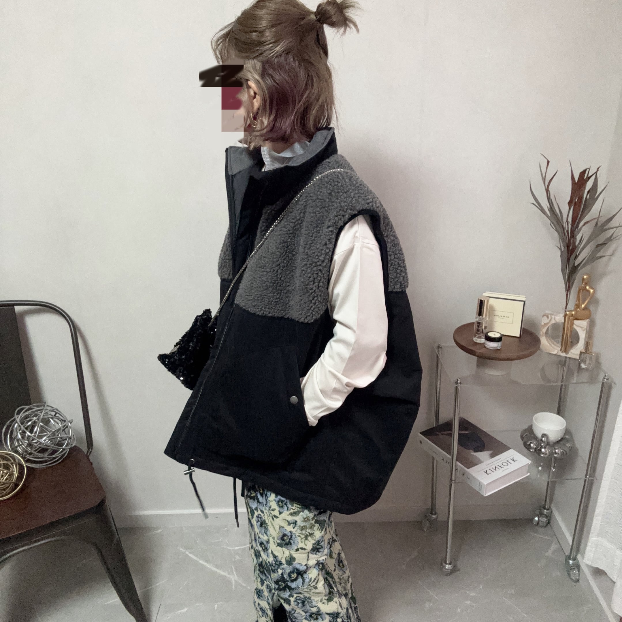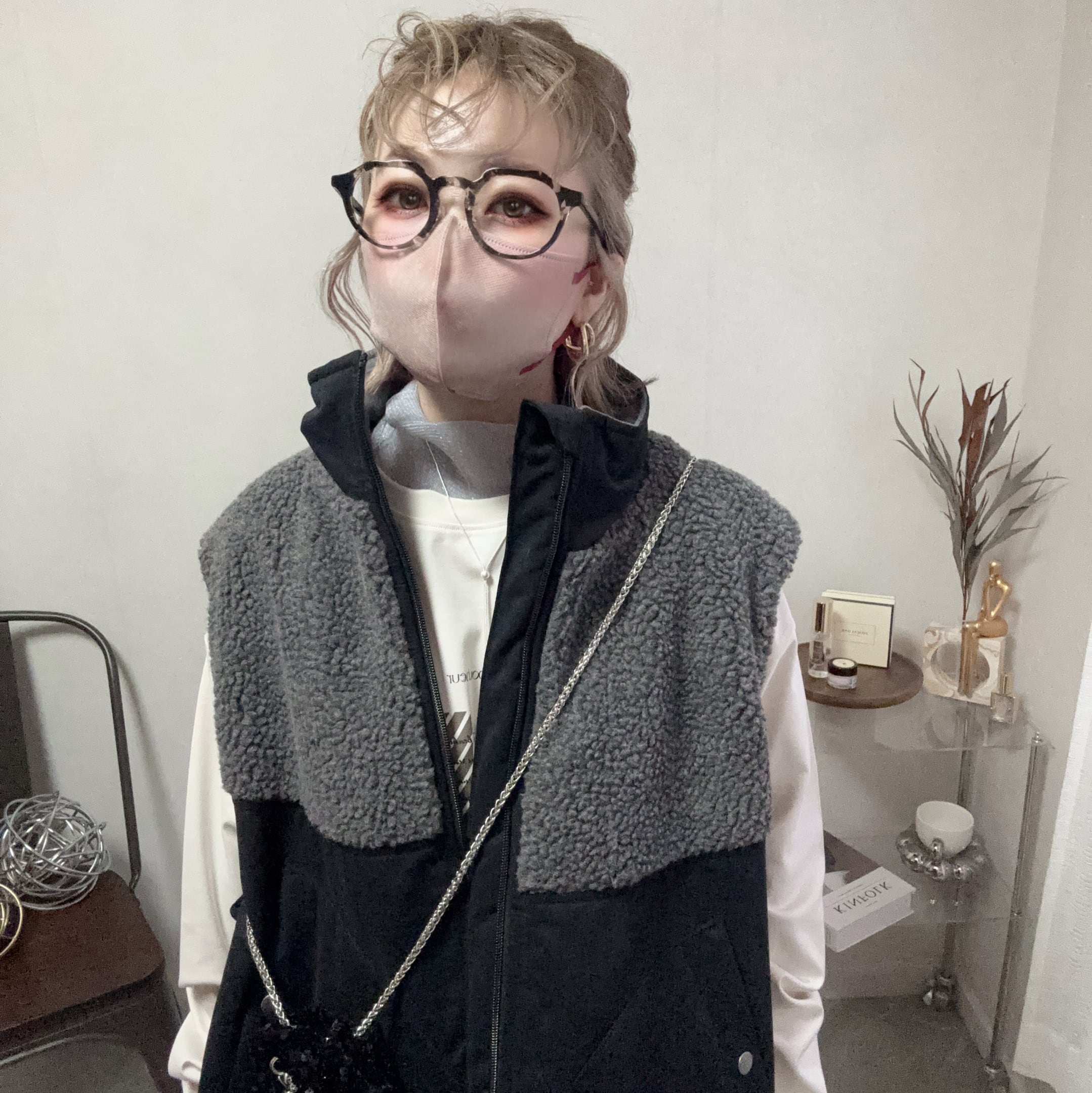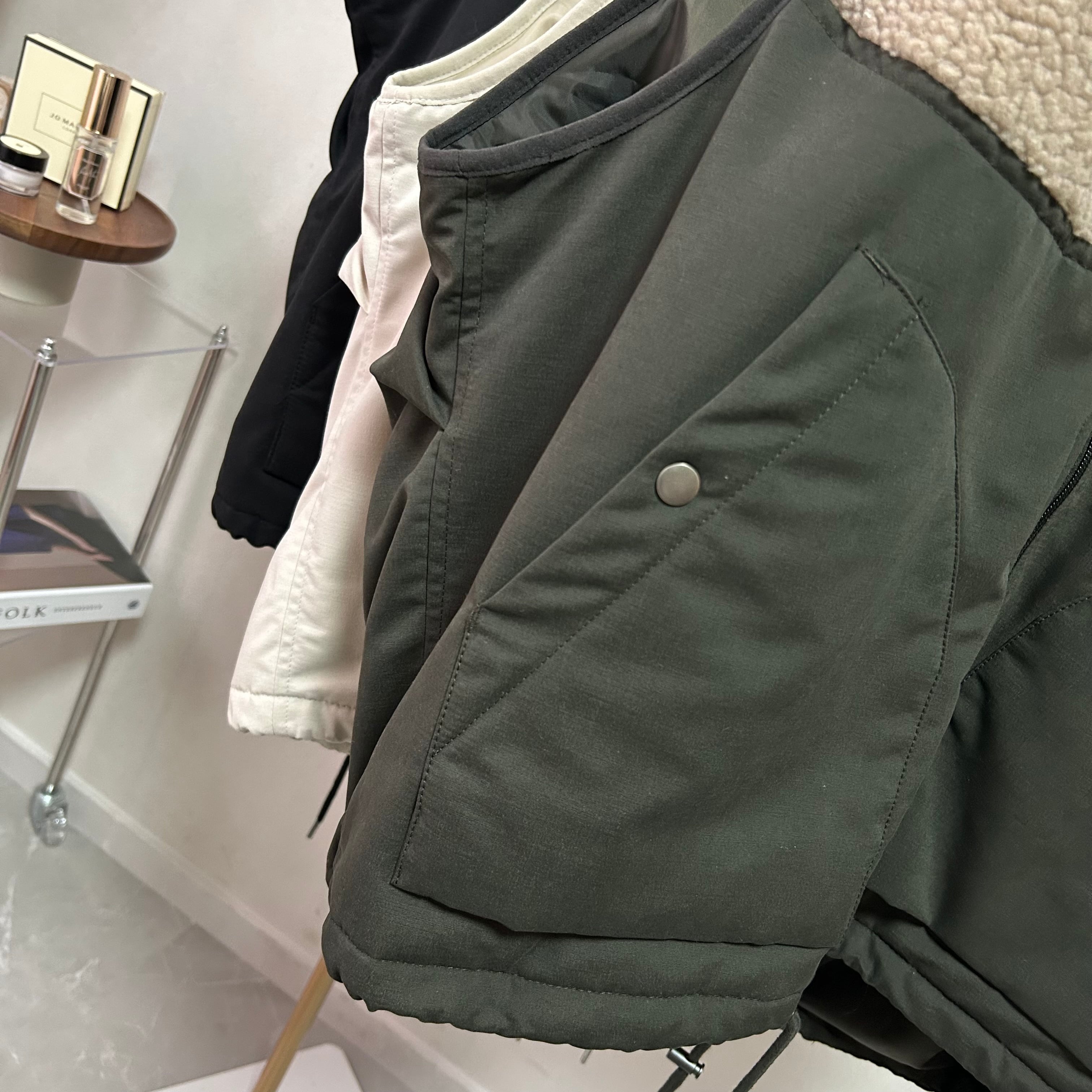 高見えでおしゃれなボア切り替えが特徴の中綿ベスト。