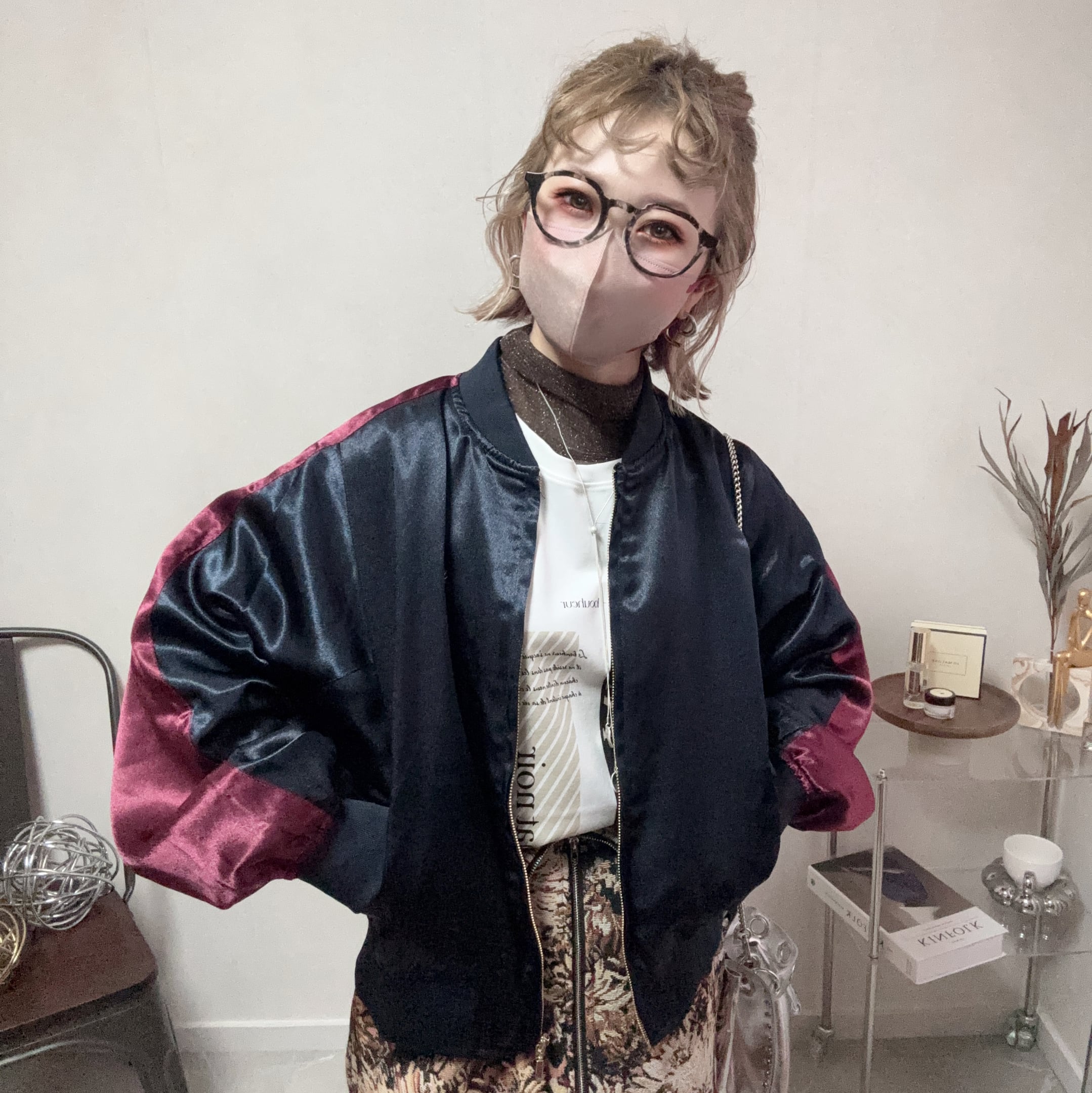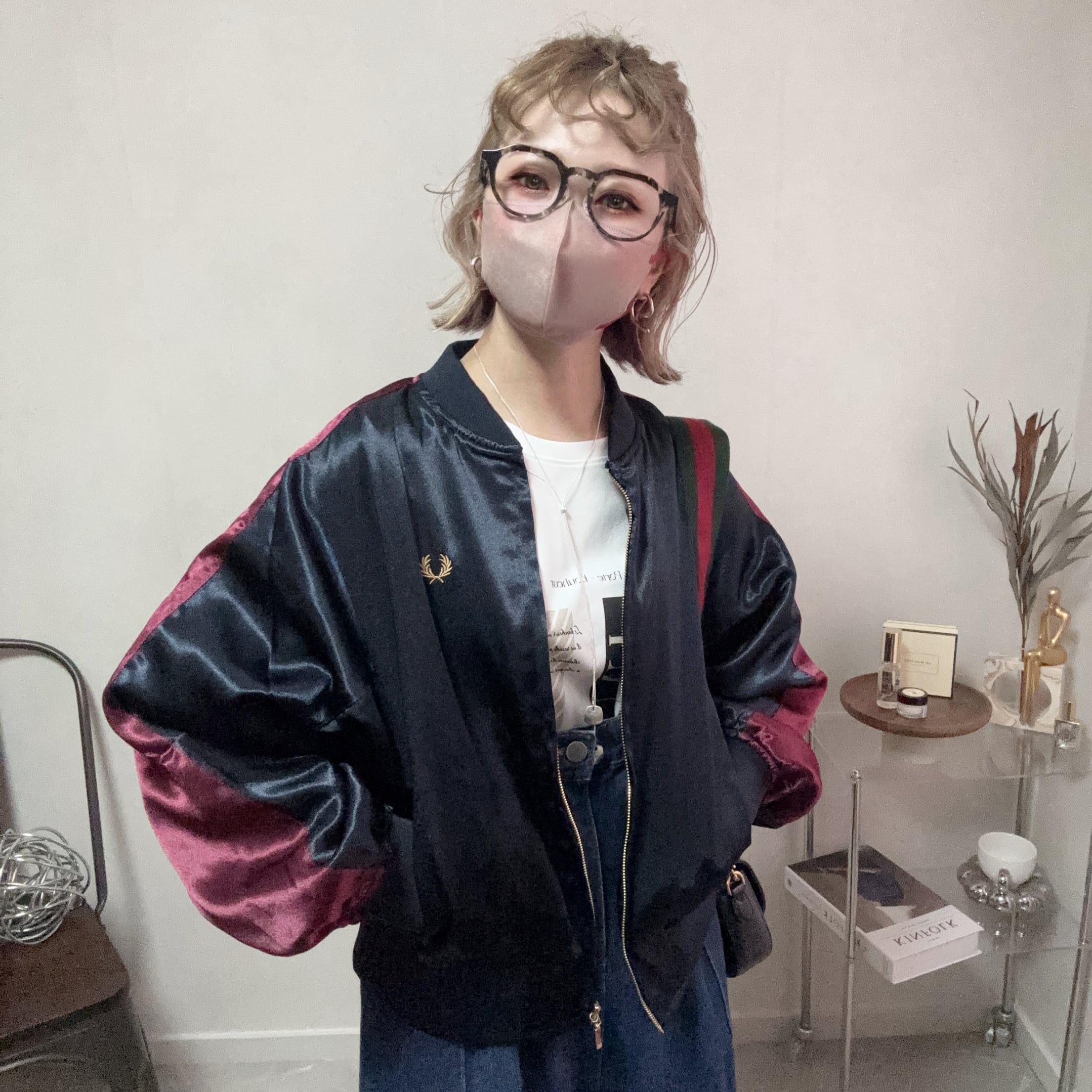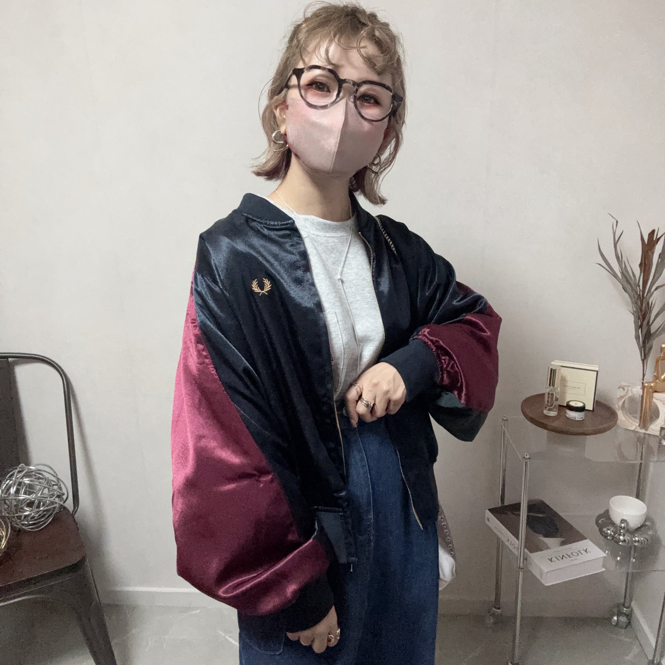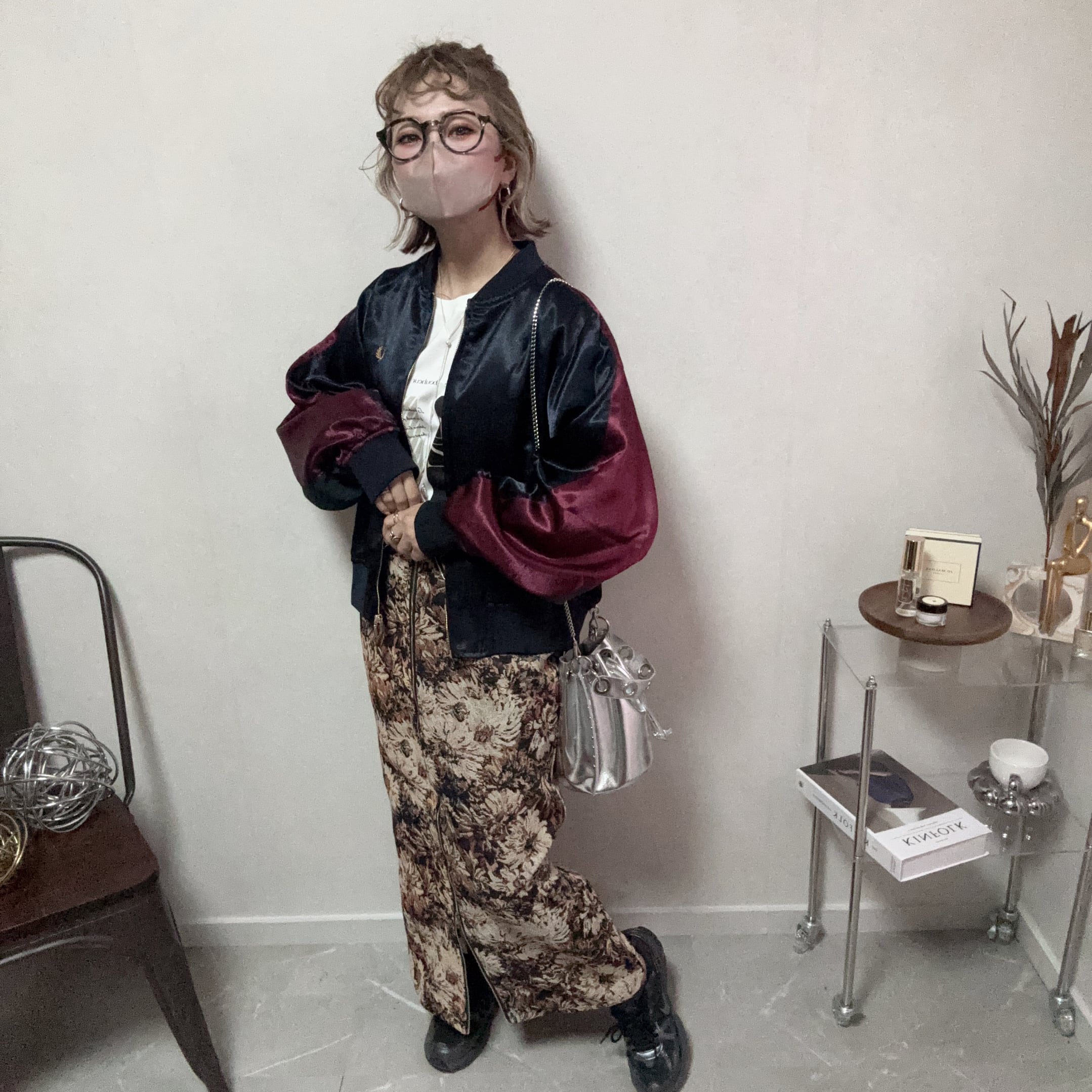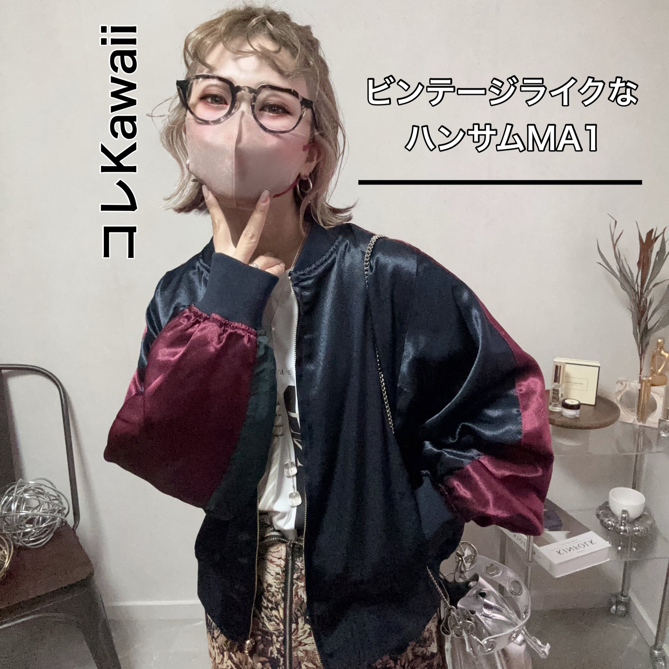 カジュアルすぎず、クールさも感じられるMA1はボトムスを選ばず、デニムやスカートやサロペットと簡単にコーディネートが可能◎