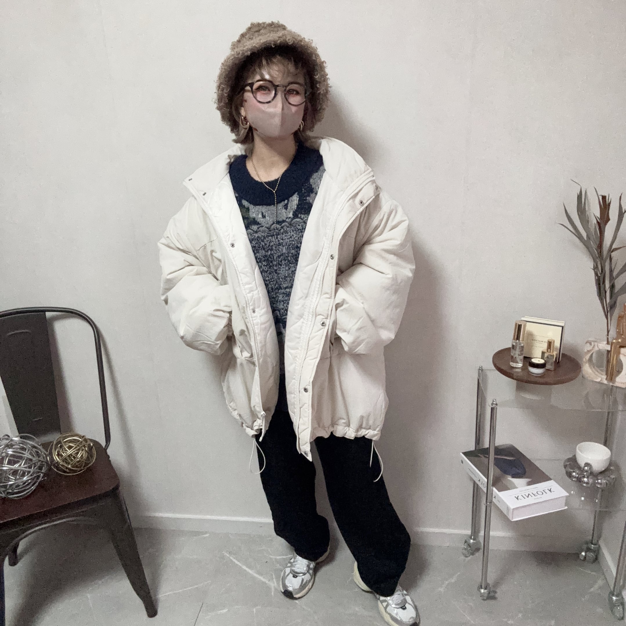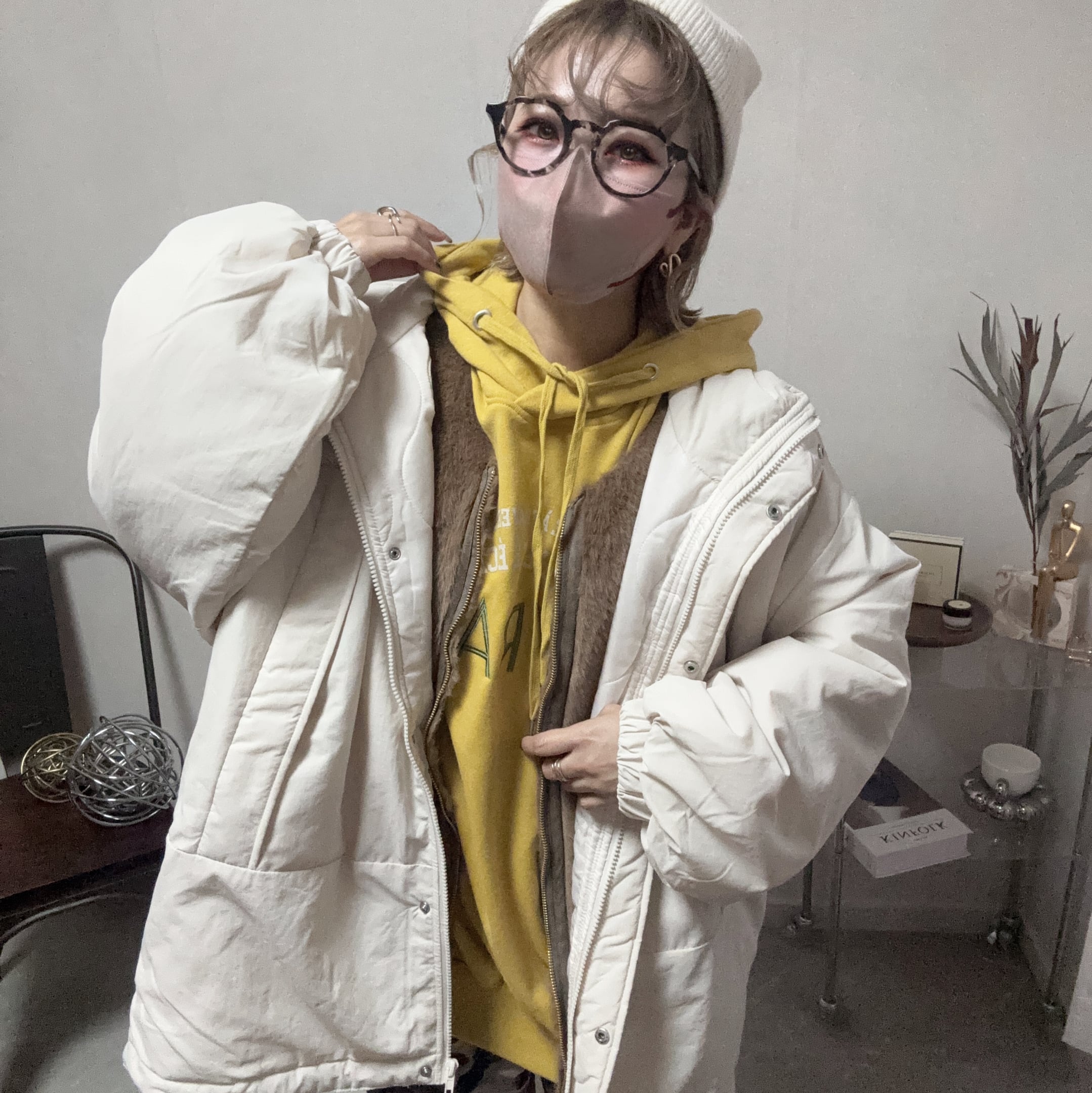 中綿入りでとてもあたたかく、ビックシルエットなのに軽い着心地が魅力♪