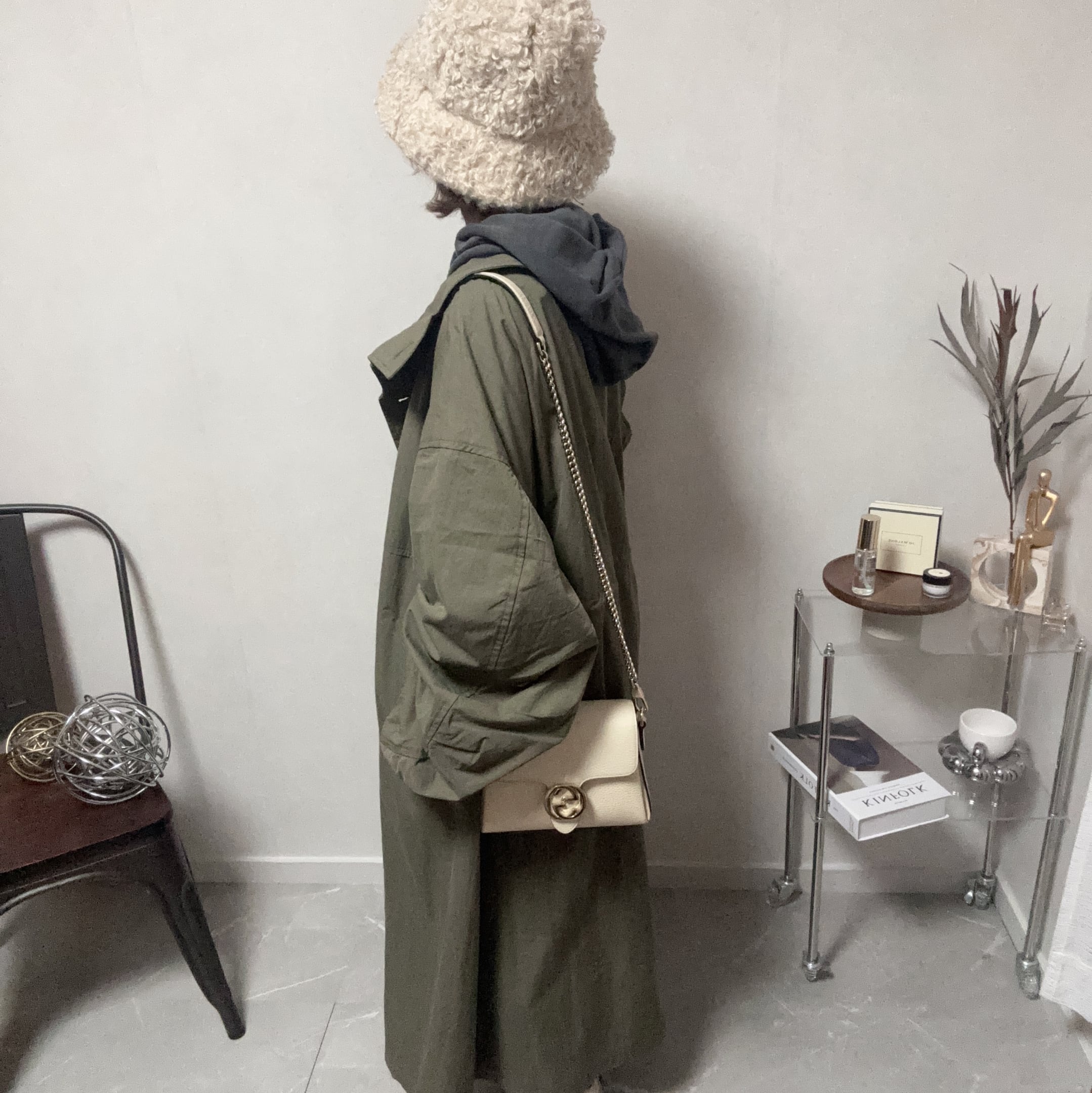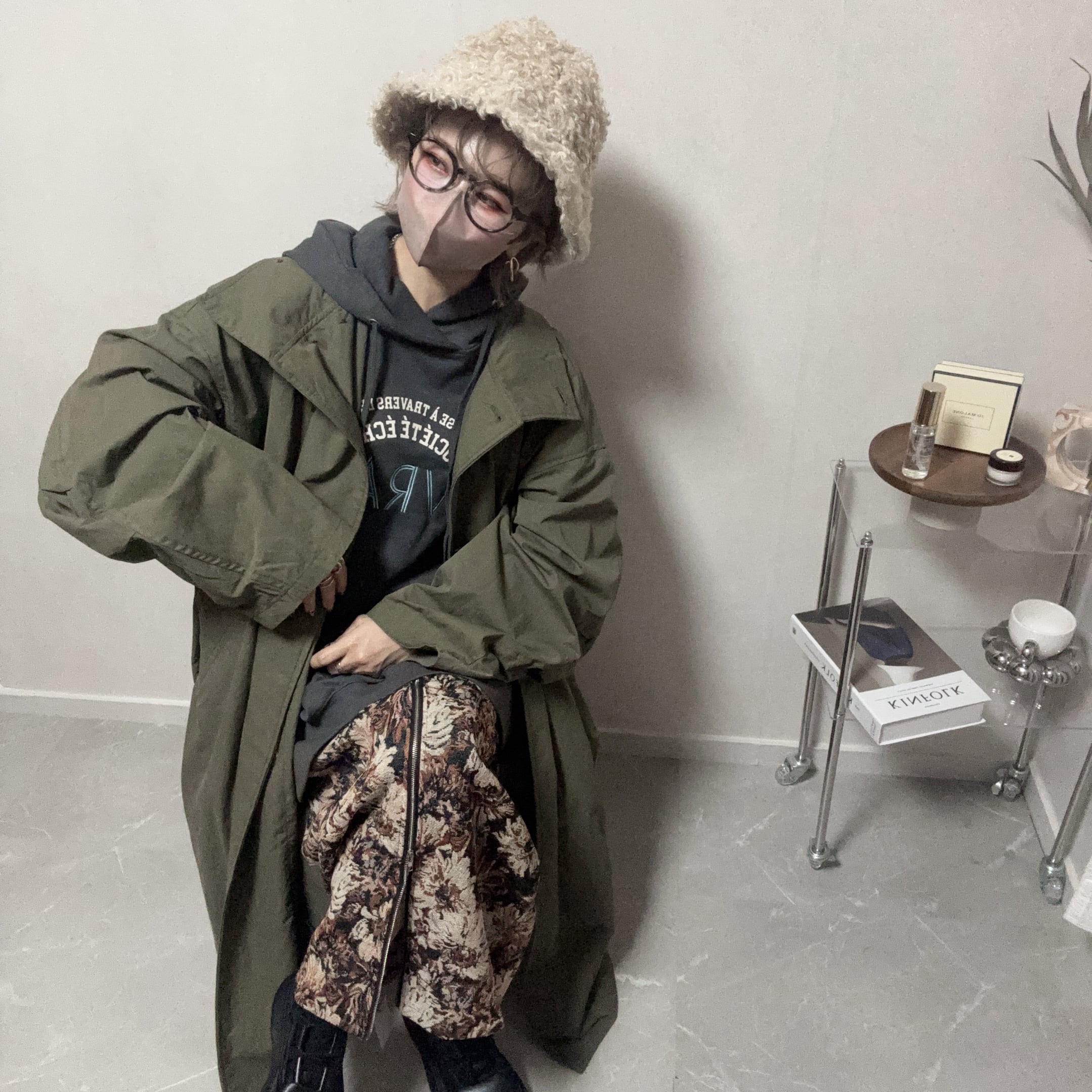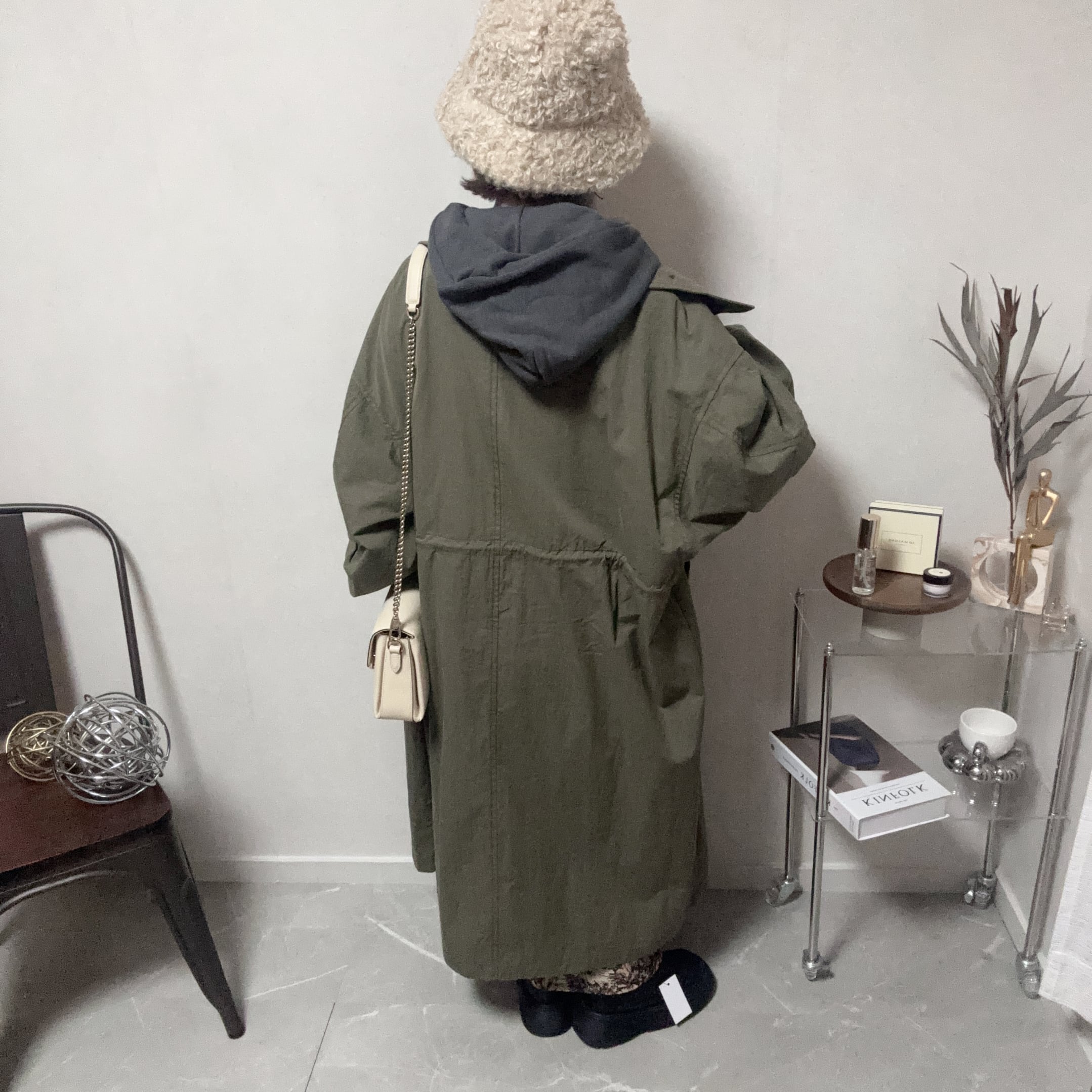 洗練されたミリタリースタイルを新たに提案する大人可愛いロングコート。