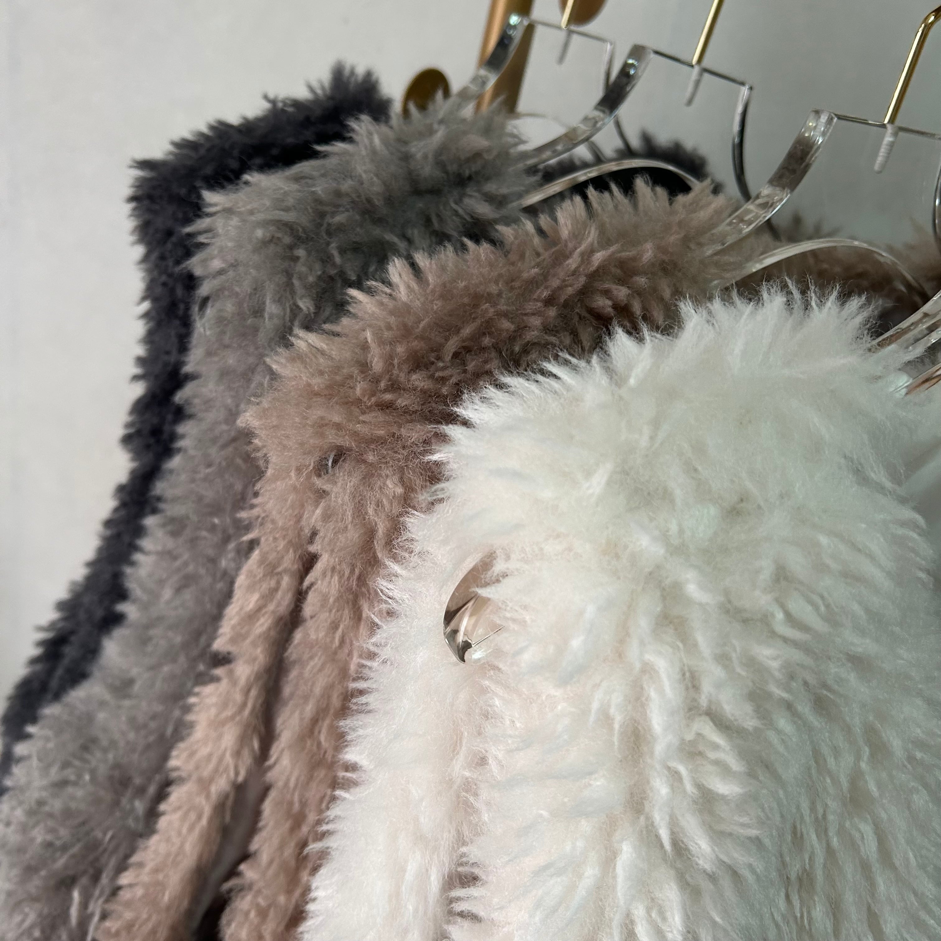 昨シーズン大人気のエコシープファー素材のベストがカラーバリエーション追加で今年も再登場です。