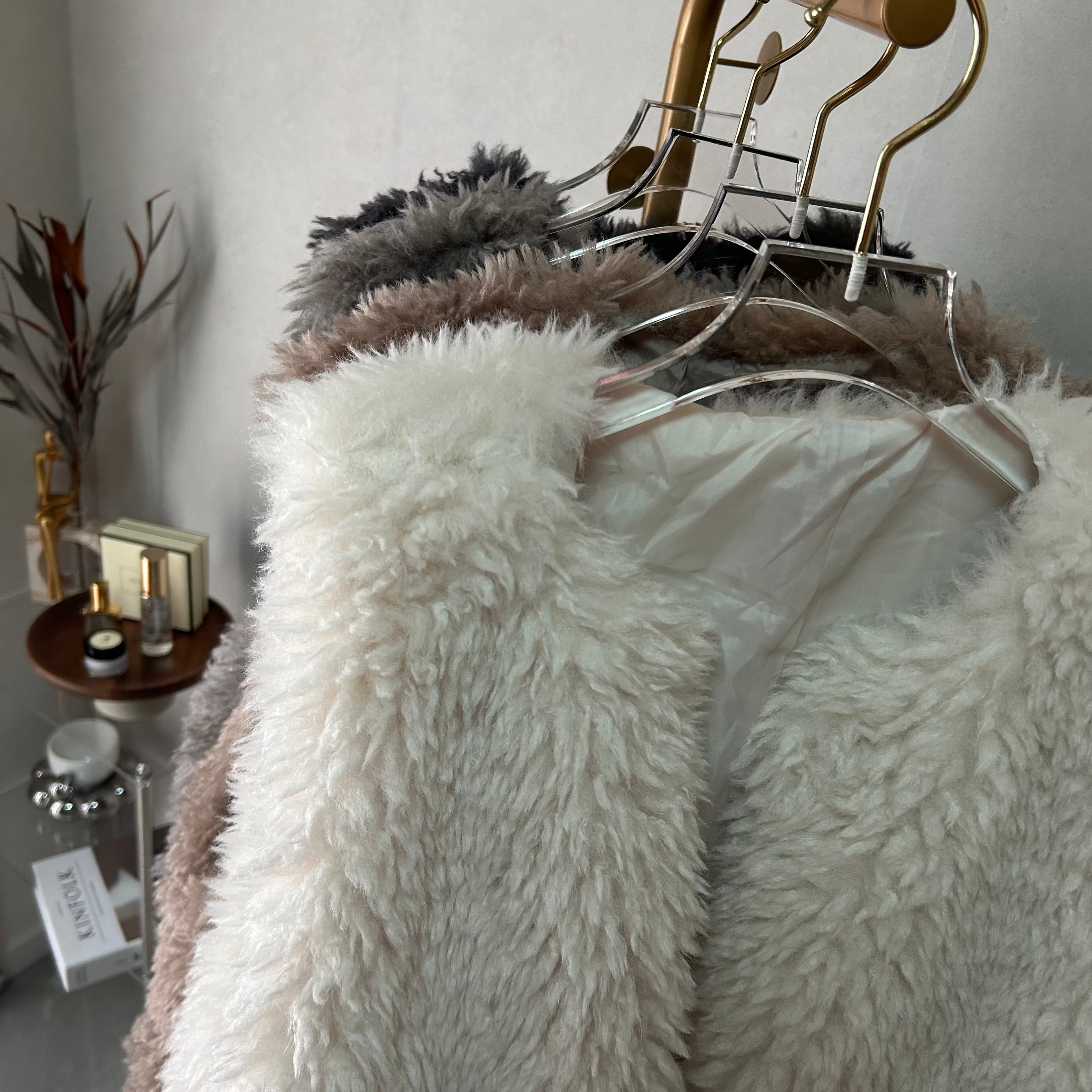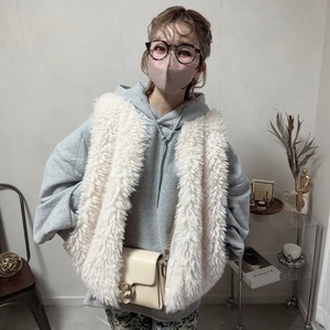 くるくるした長めの毛足が特徴のエコシープファーを使用したファーベスト。