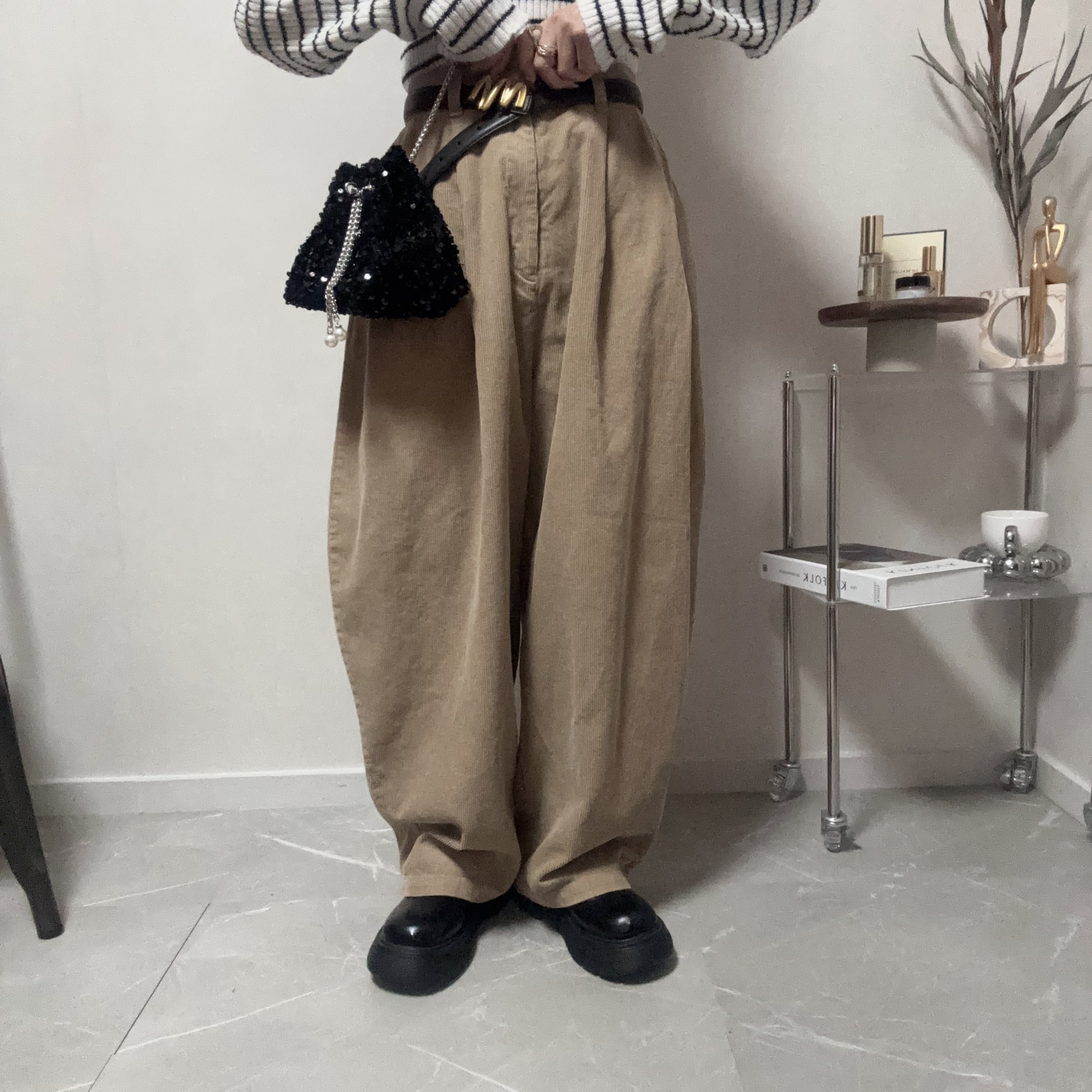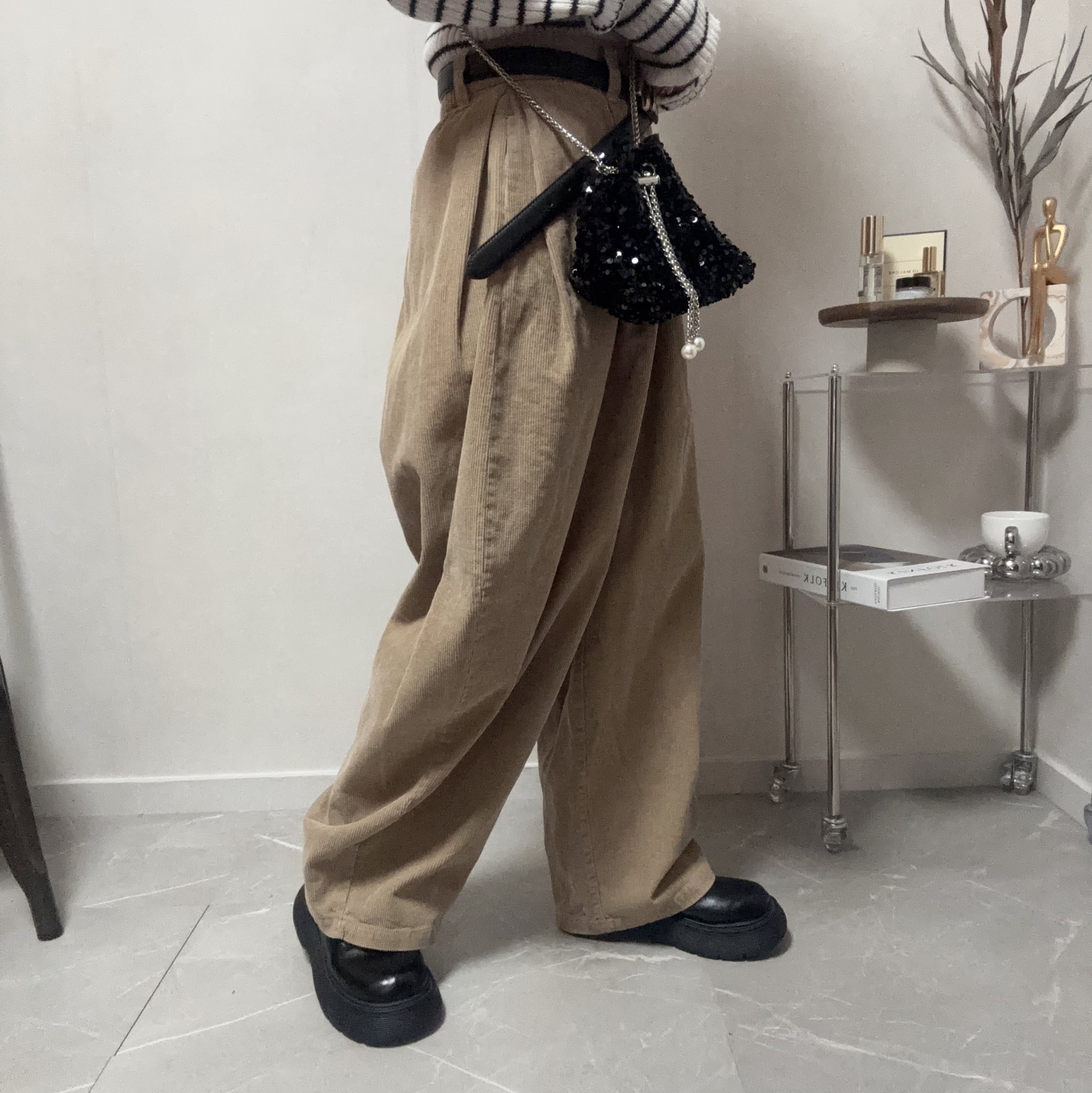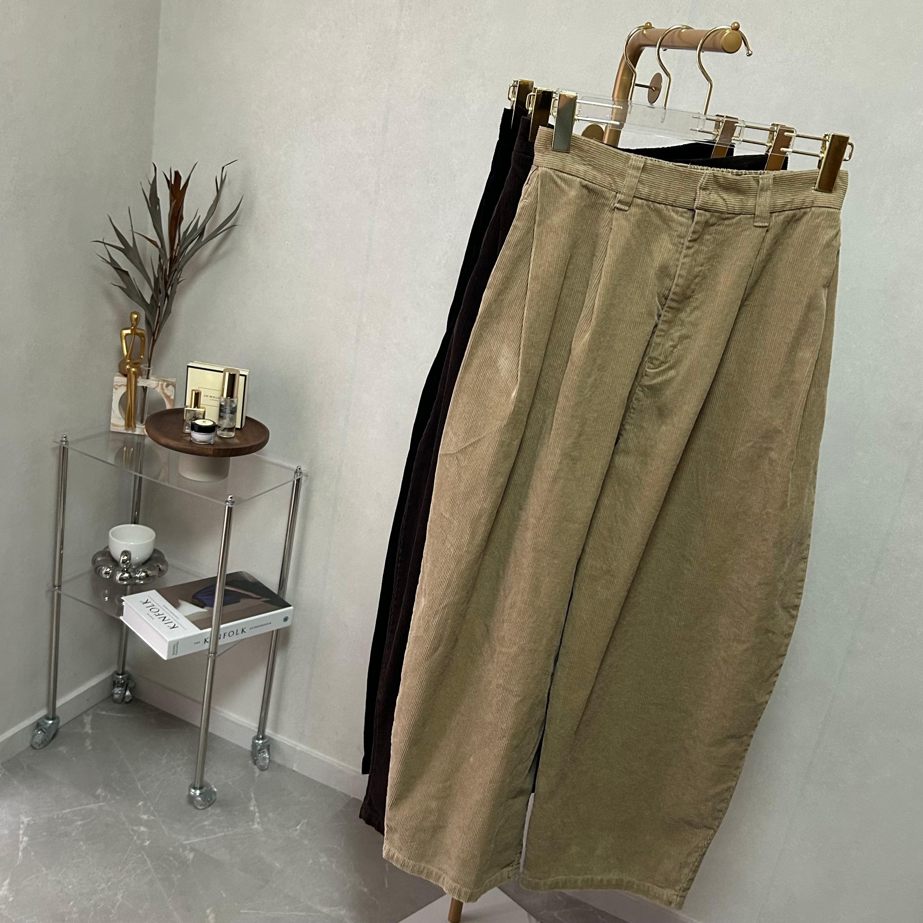 corduroy side tuck cocoon pants【Beige】