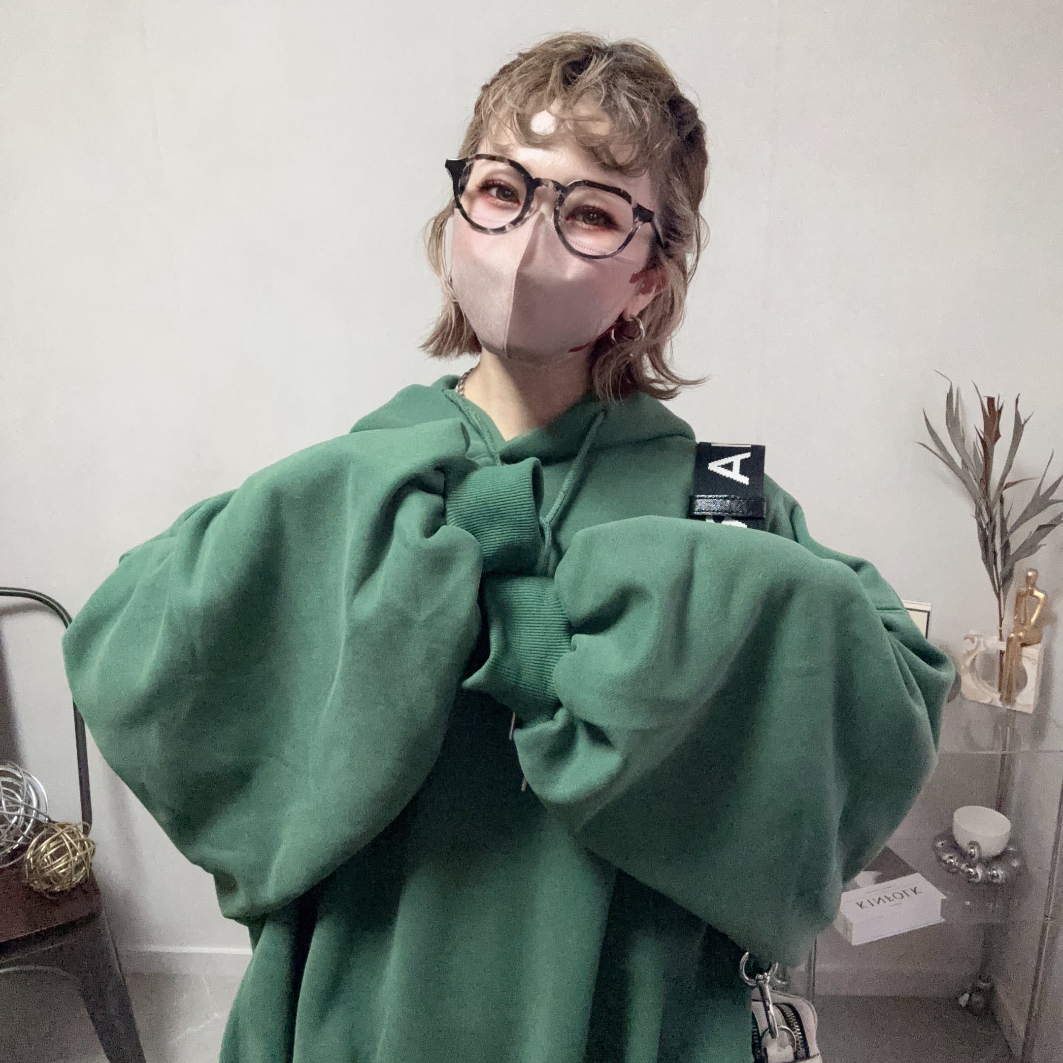 ゆったりとしたオーバーサイズシルエットに、ドロップショルダーとボリュームスリーブがリラクシーな印象を与える一枚。