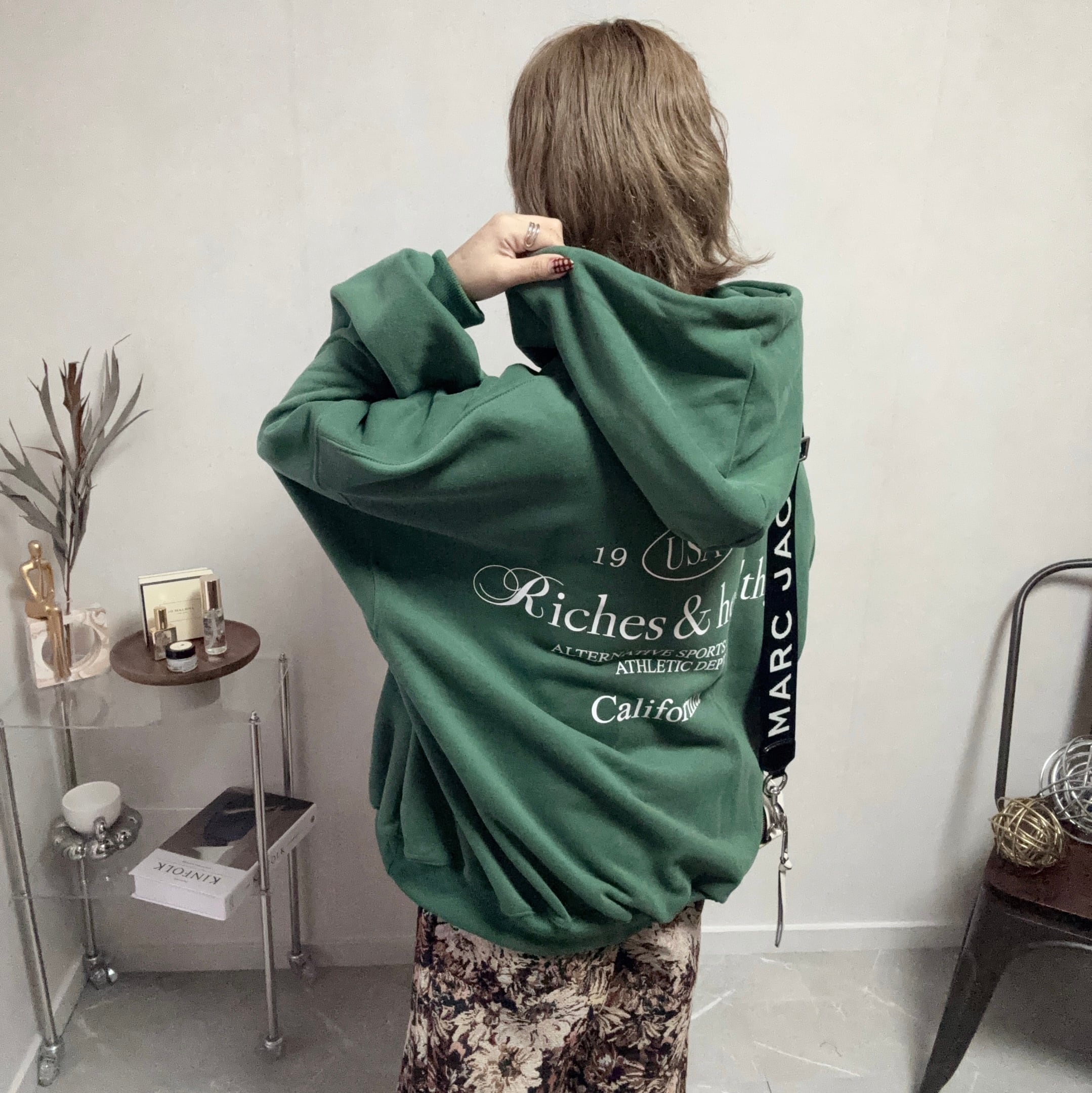 リブ仕様の裾と袖口が、メリハリを持たせつつ、全体のバランスを美しく整えてくれます。カジュアルなスウェットフーディでありながら、ロゴデザインやシルエットのこだわりが、大人の女性にぴったりの上品な抜け感を演出。日常使いはもちろん、旅先やアクティブなシーンでも活躍する一着です。
