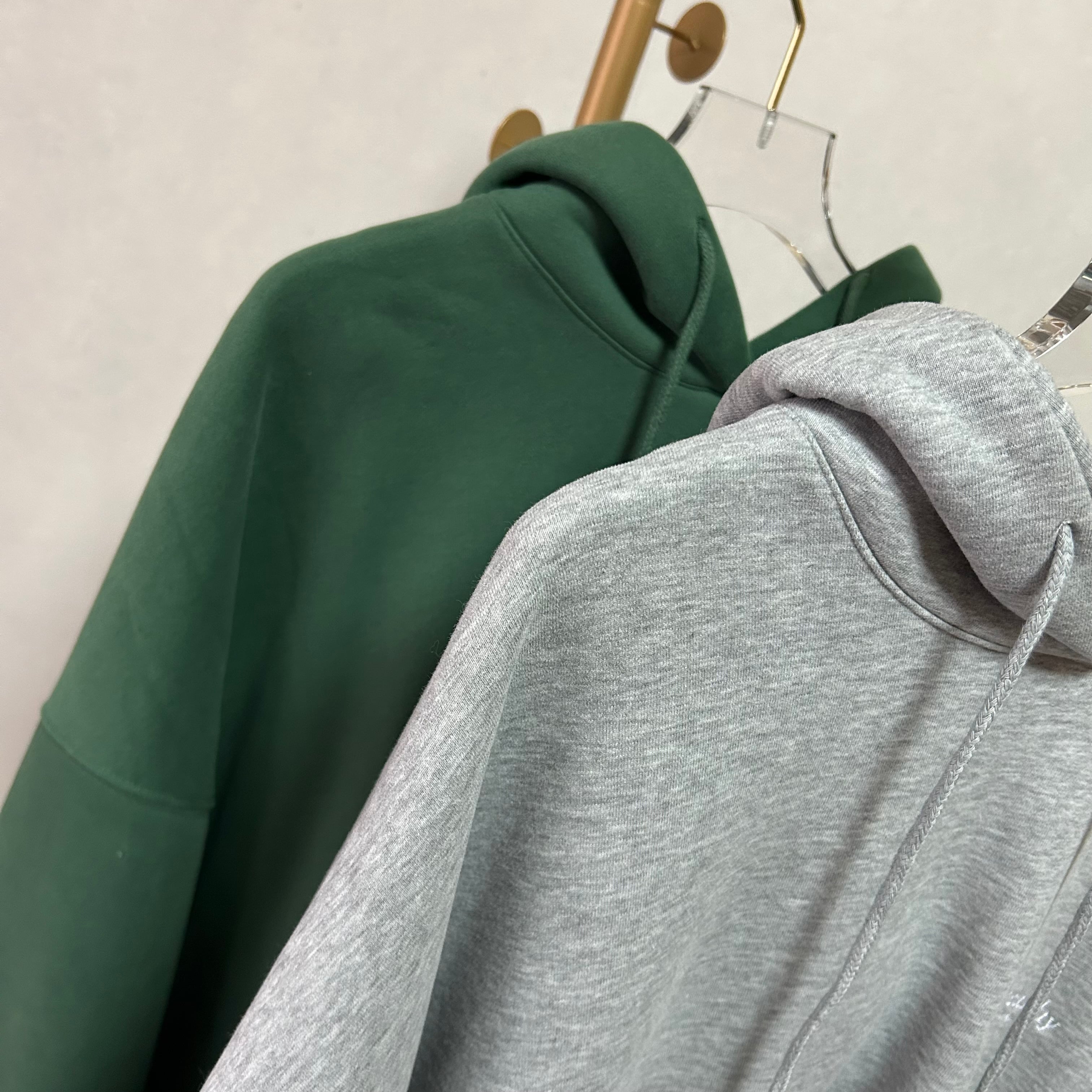 しっかりと目の詰まった厚手の裏起毛素材を使用し、ソフトで滑らかな肌ざわりが魅力です。コットンベースのスウェット生地は吸湿性にも優れ、蒸れにくく快適な着心地を実現。