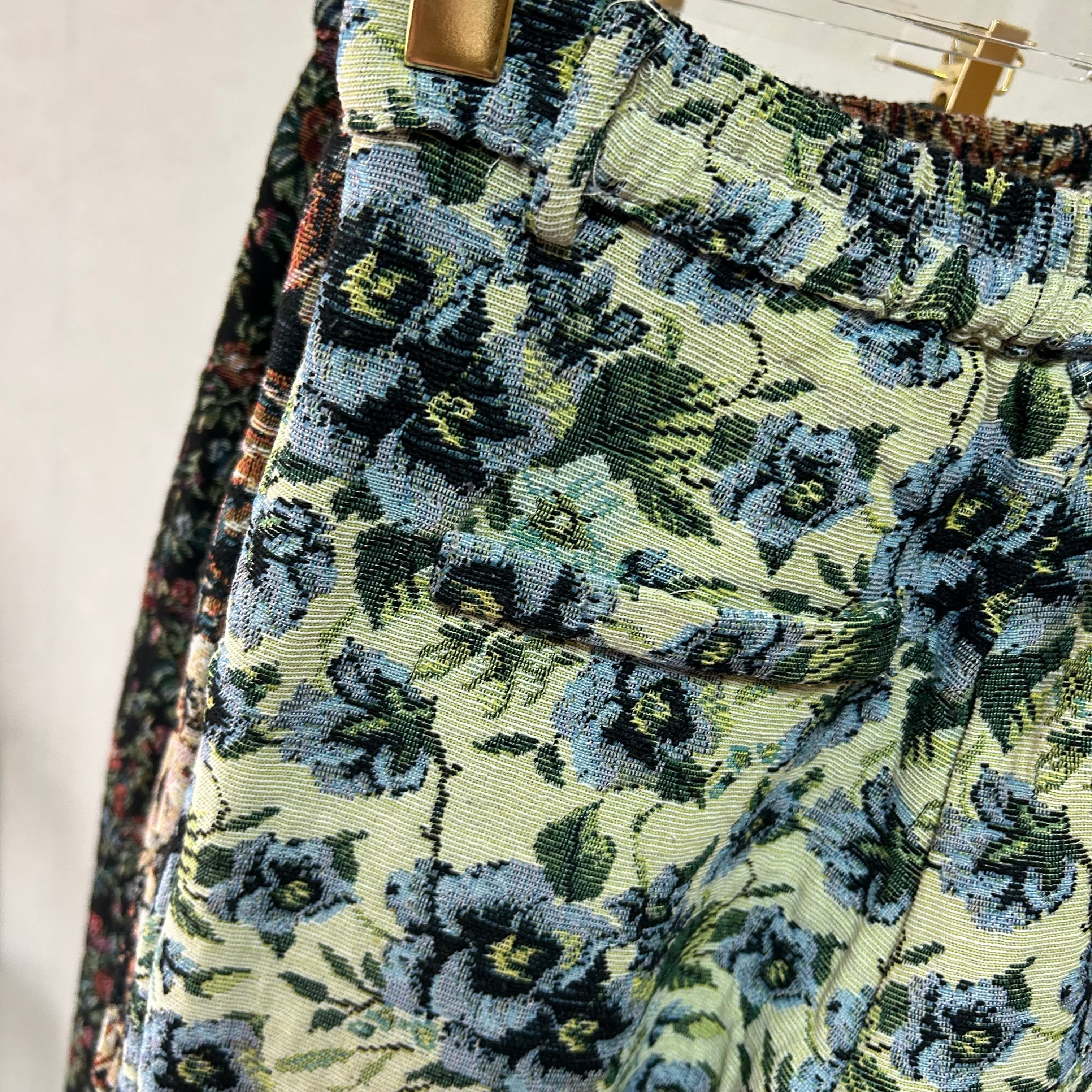 ヴィンテージ感漂う3種類のフラワー柄ゴブランのタックロングパンツ。