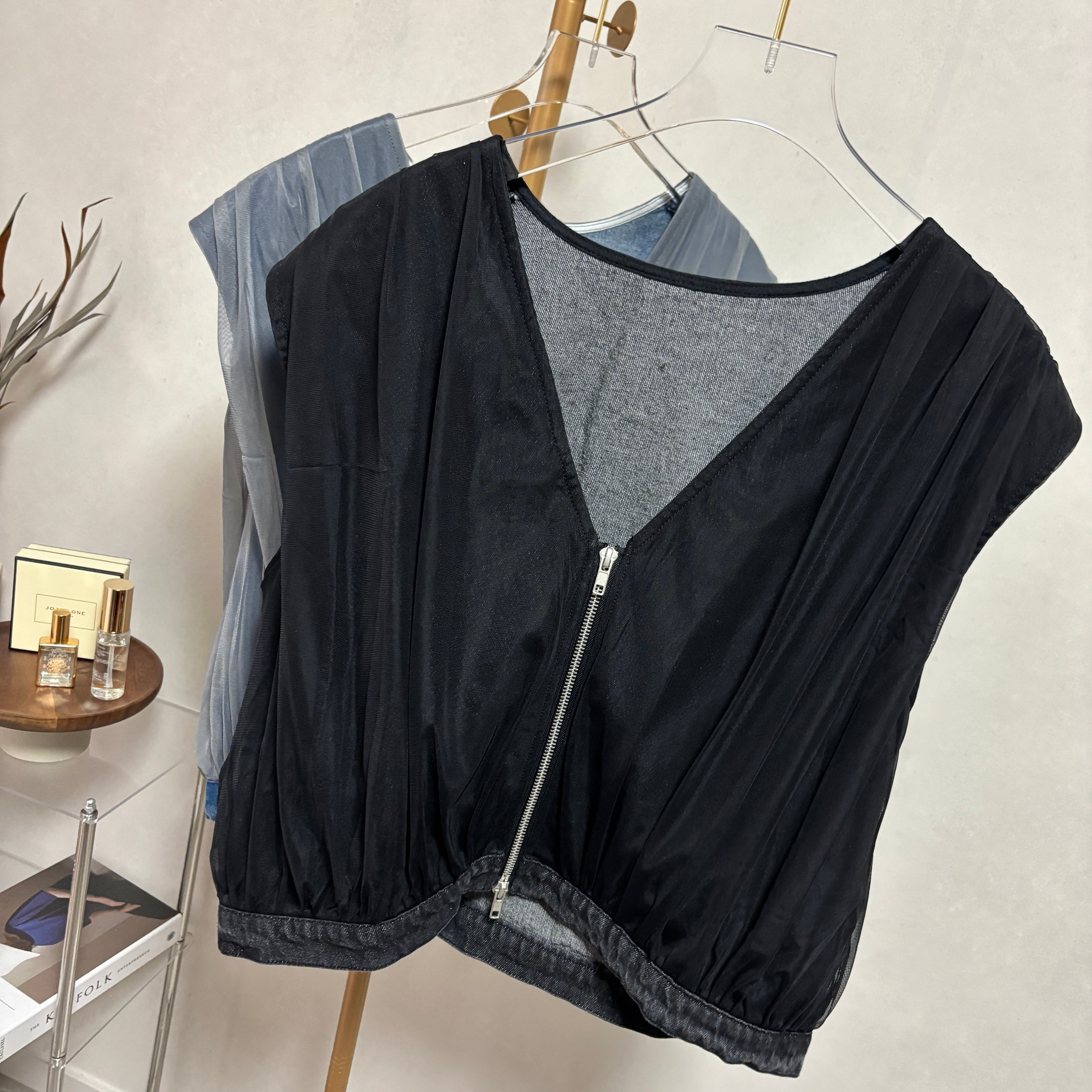 お洒落心をくすぐる10ozデニムxチュールのダブルジップベストが新登場!