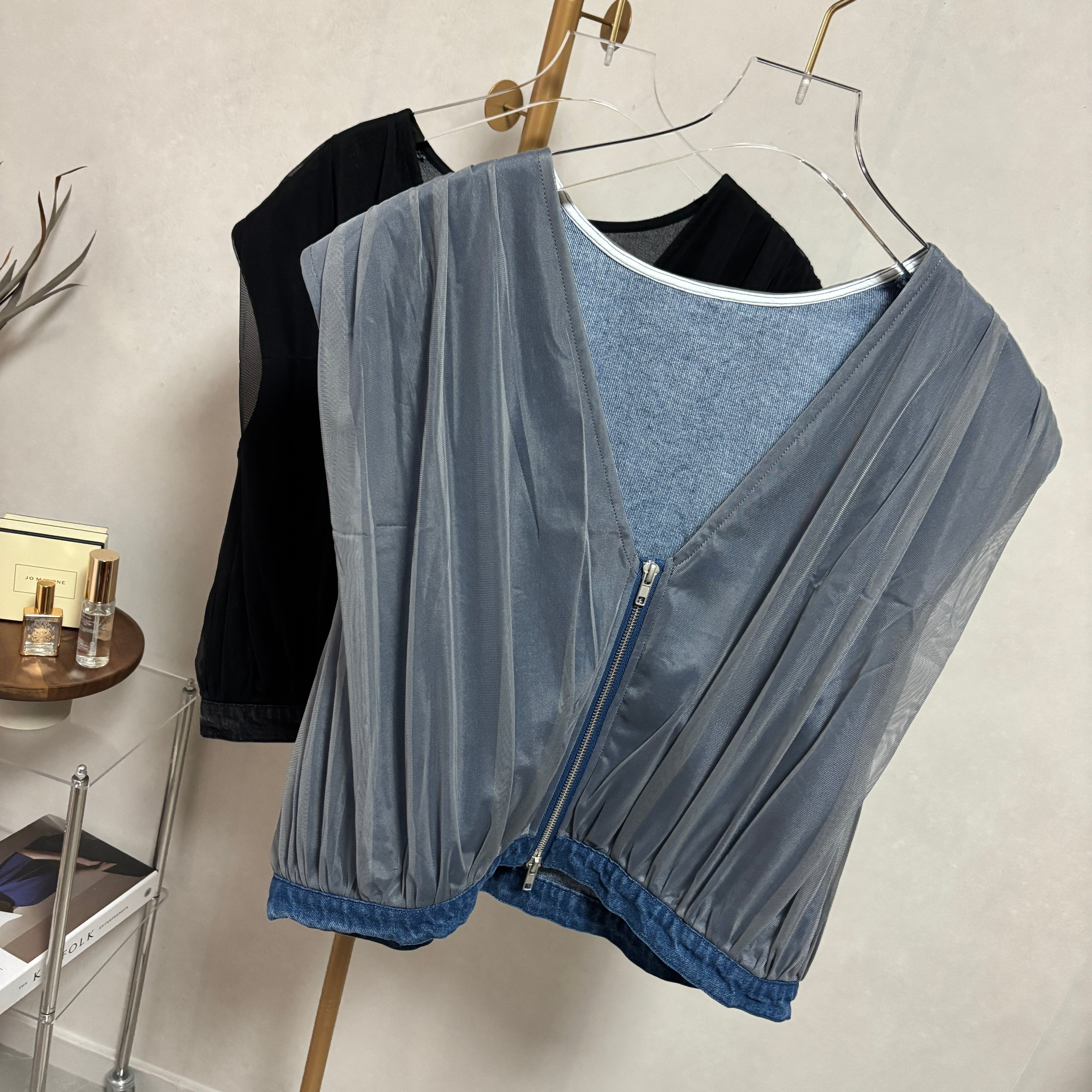 お洒落心をくすぐる10ozデニムxチュールのダブルジップベストが新登場!