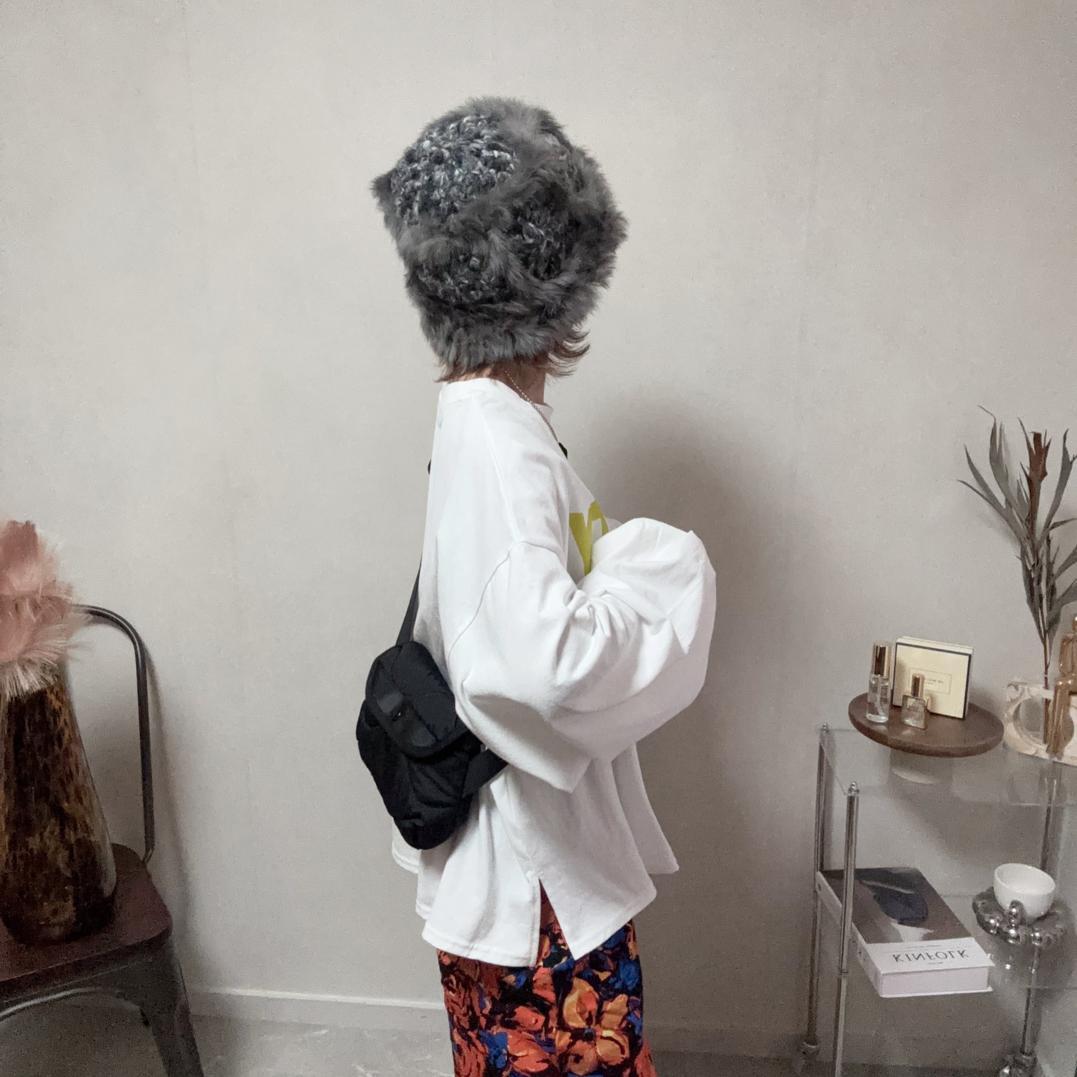 ゆったりとしたシルエットでありながらも、立体ロゴとのバランスで、ラフすぎない印象に仕上がっています。
