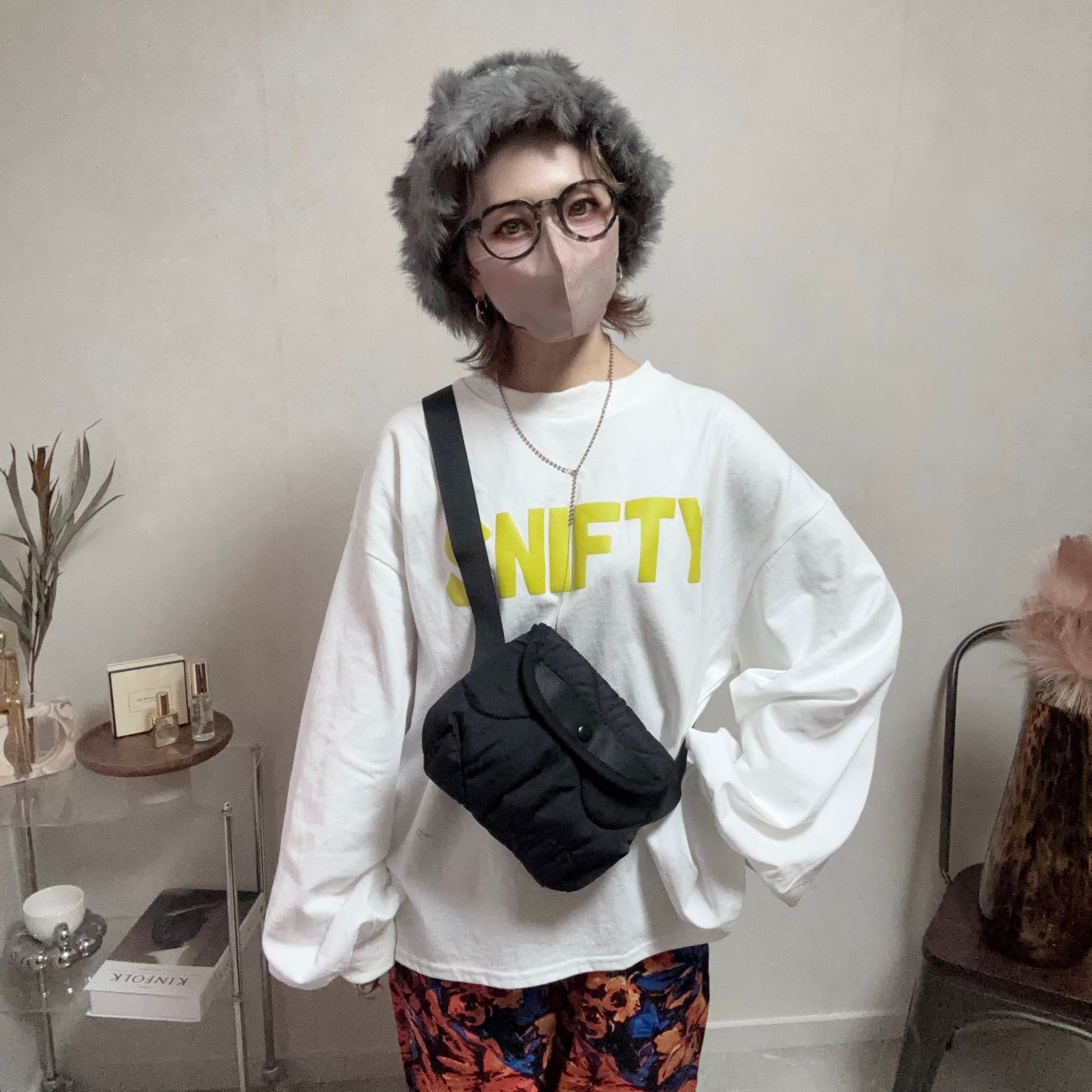 フロントに配された「SNIFTY」のアップリケは立体的で視覚的なインパクトがあり、カジュアルながらも一枚で主役級の存在感を演出します。