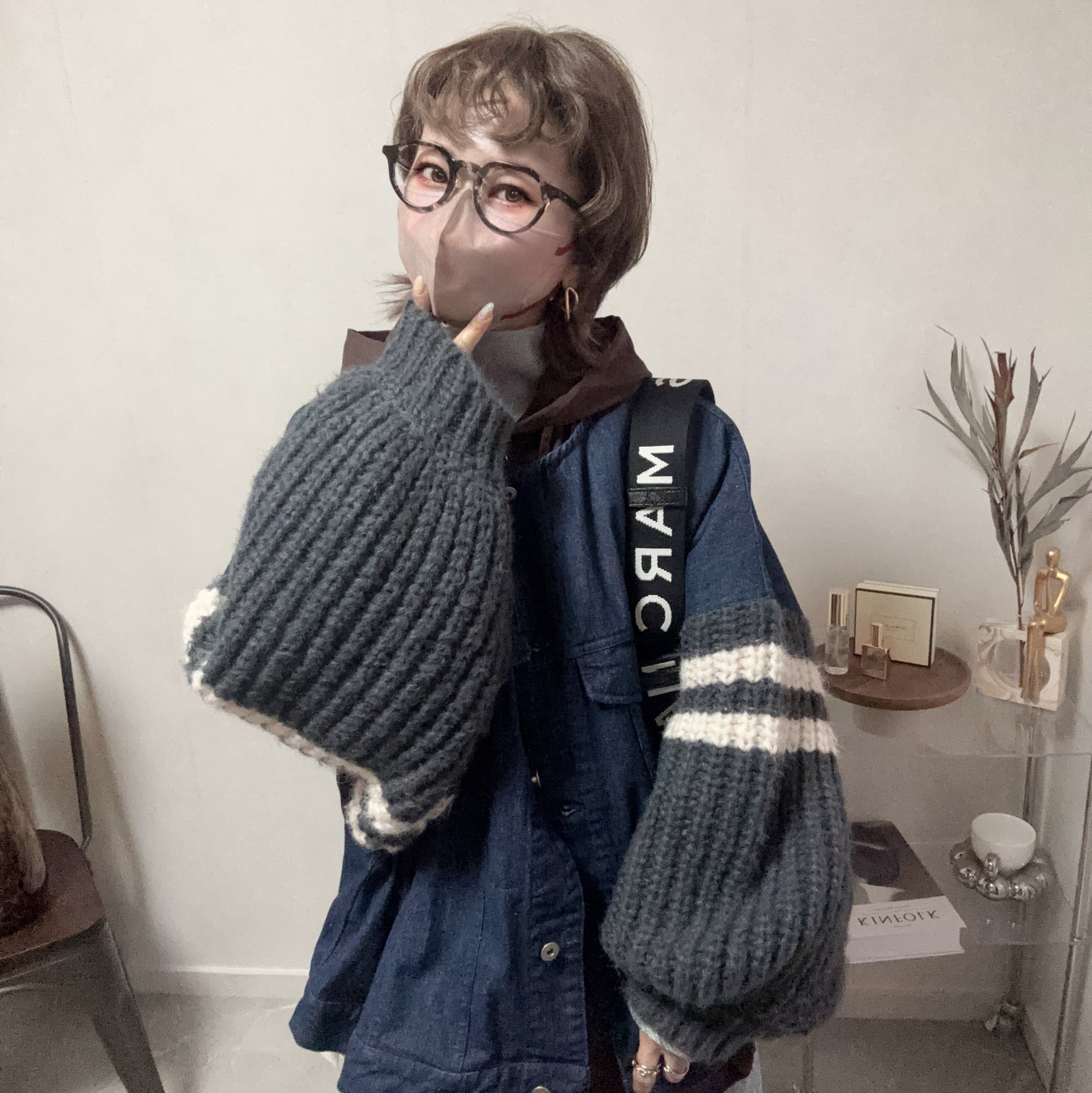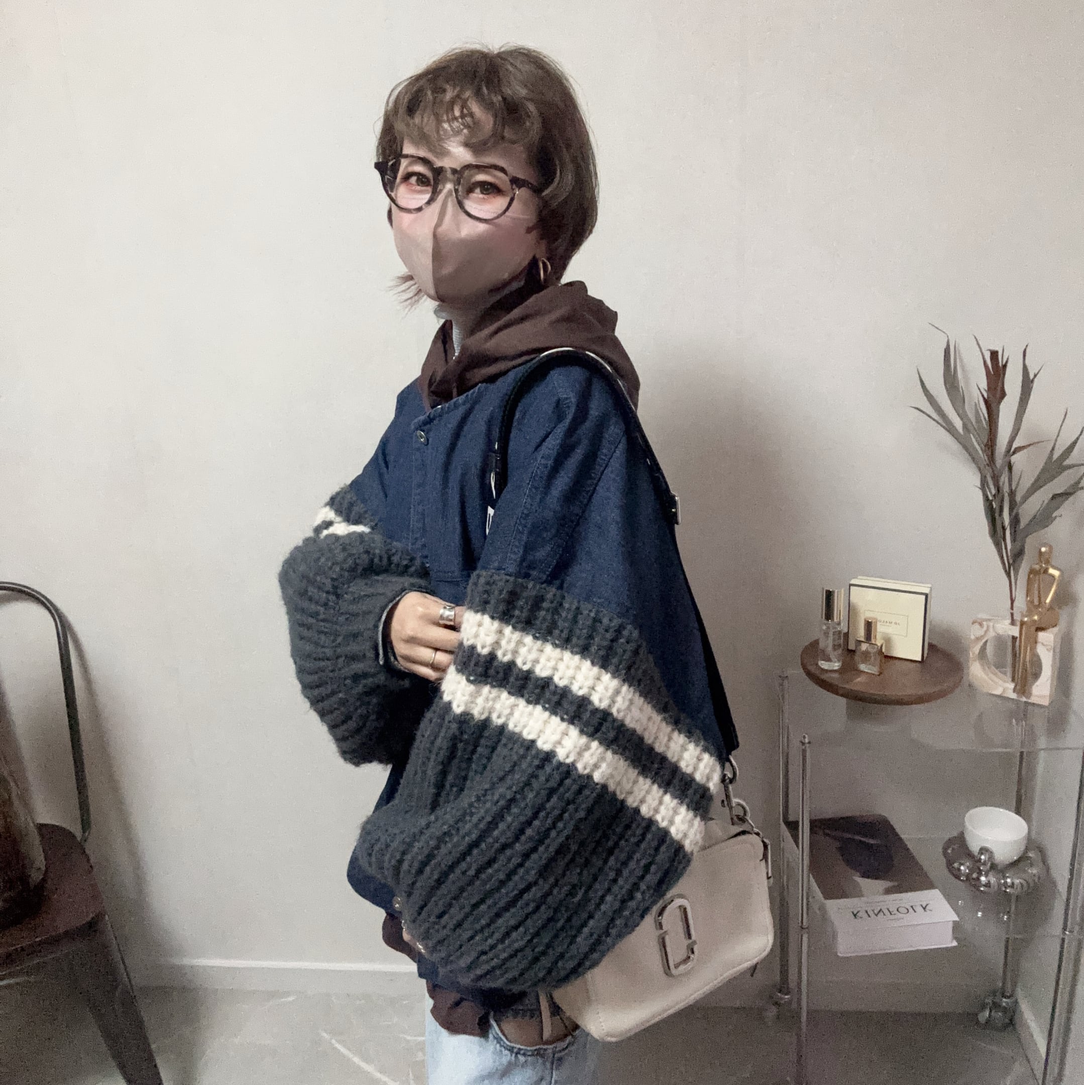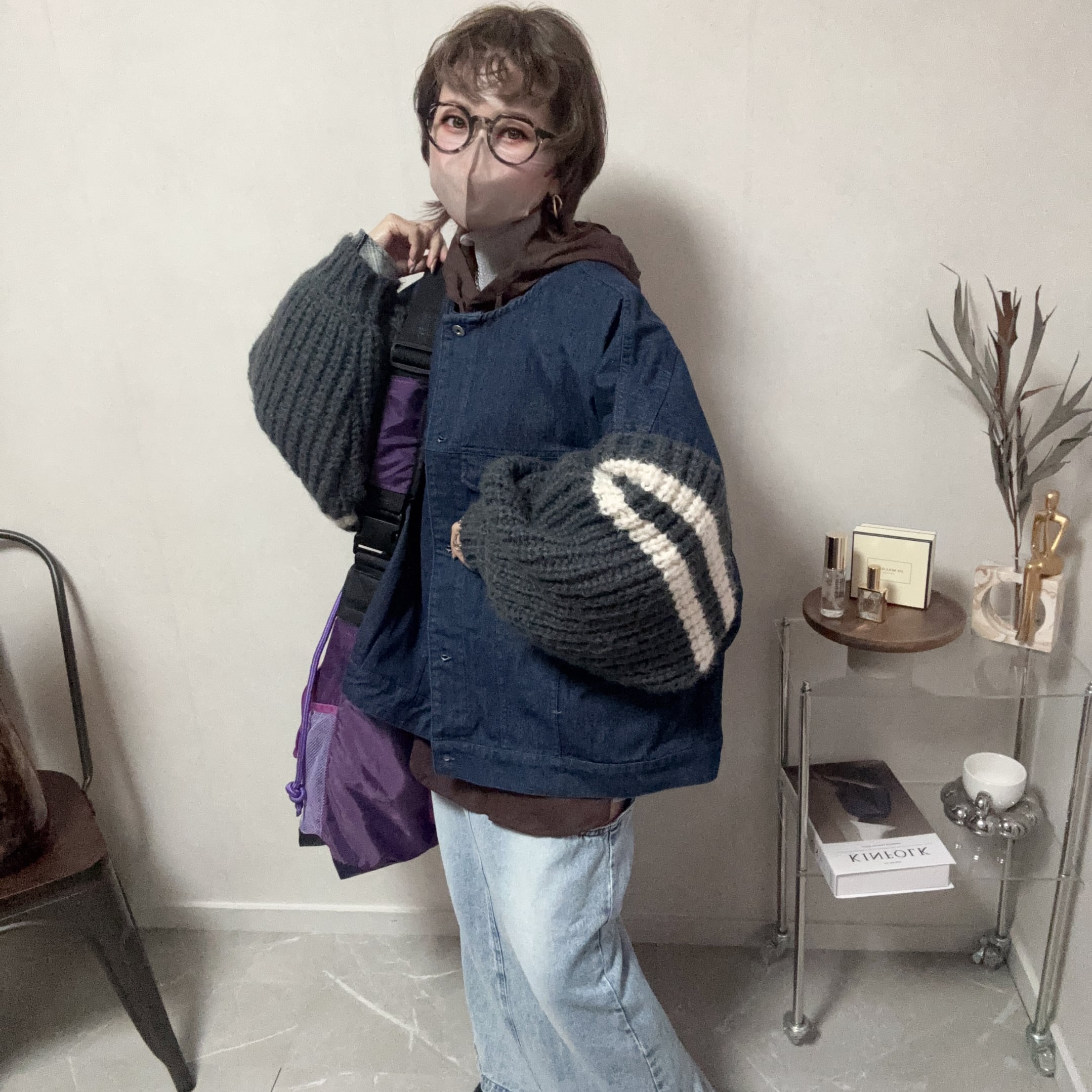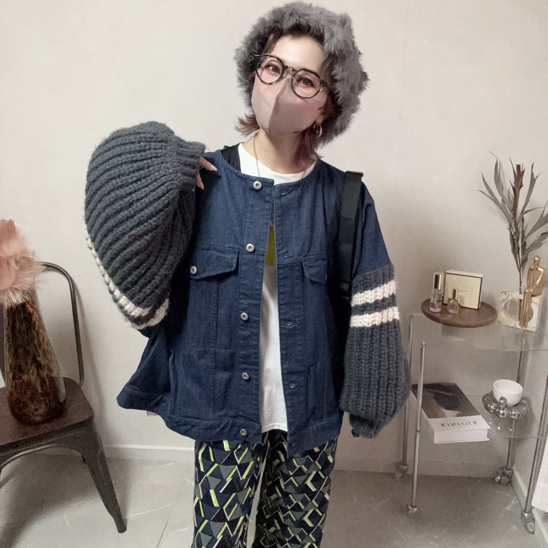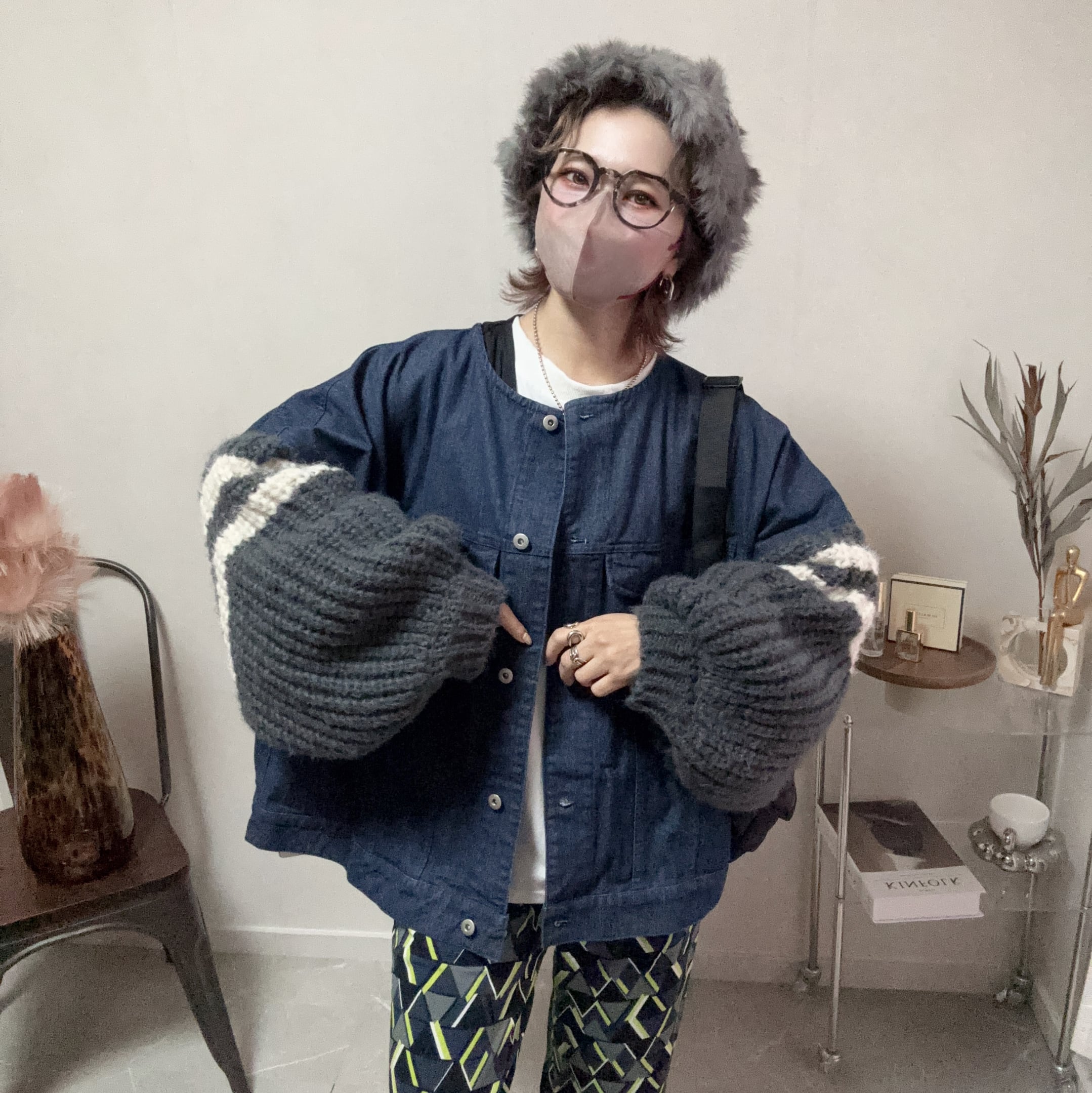 Gジャンにふわモコニット、意外性がハマる♪