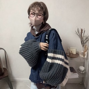 denim×knit volume sleeve jacket【Indigo】