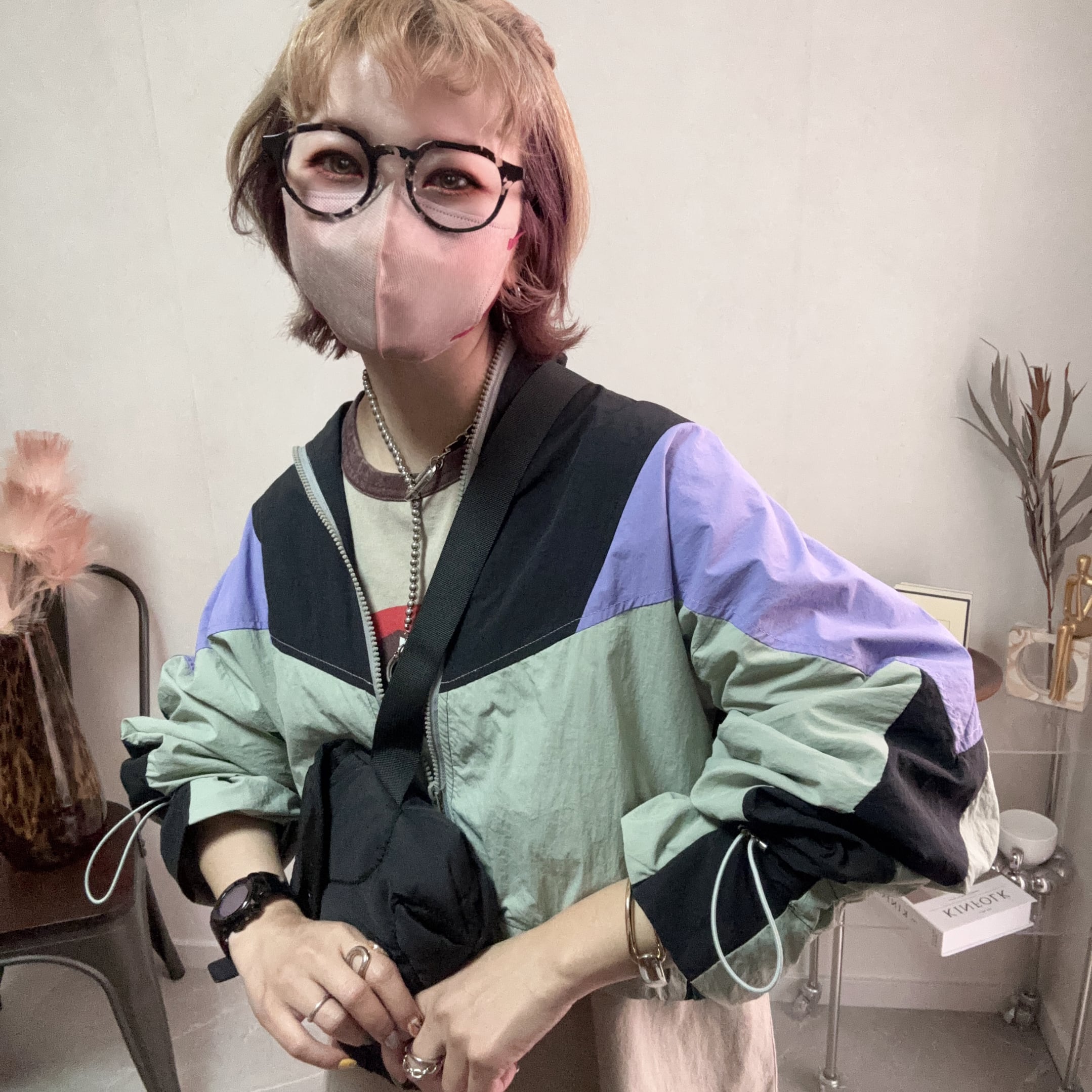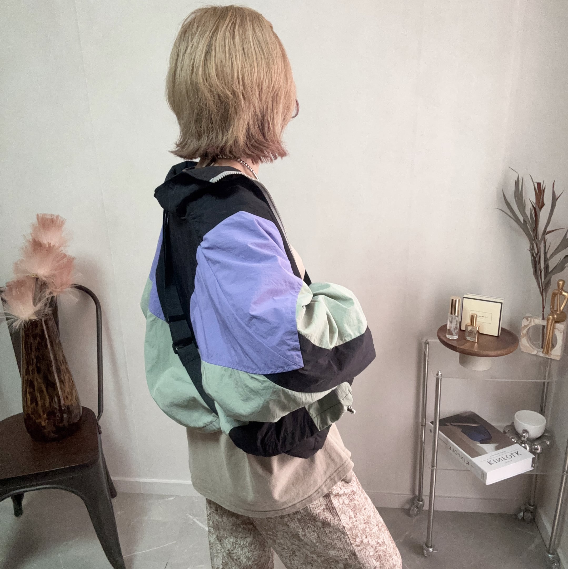 一目でオシャレな配色が目を惹く、魅力たっぷりのマルチカラーショートナイロンジャケット。